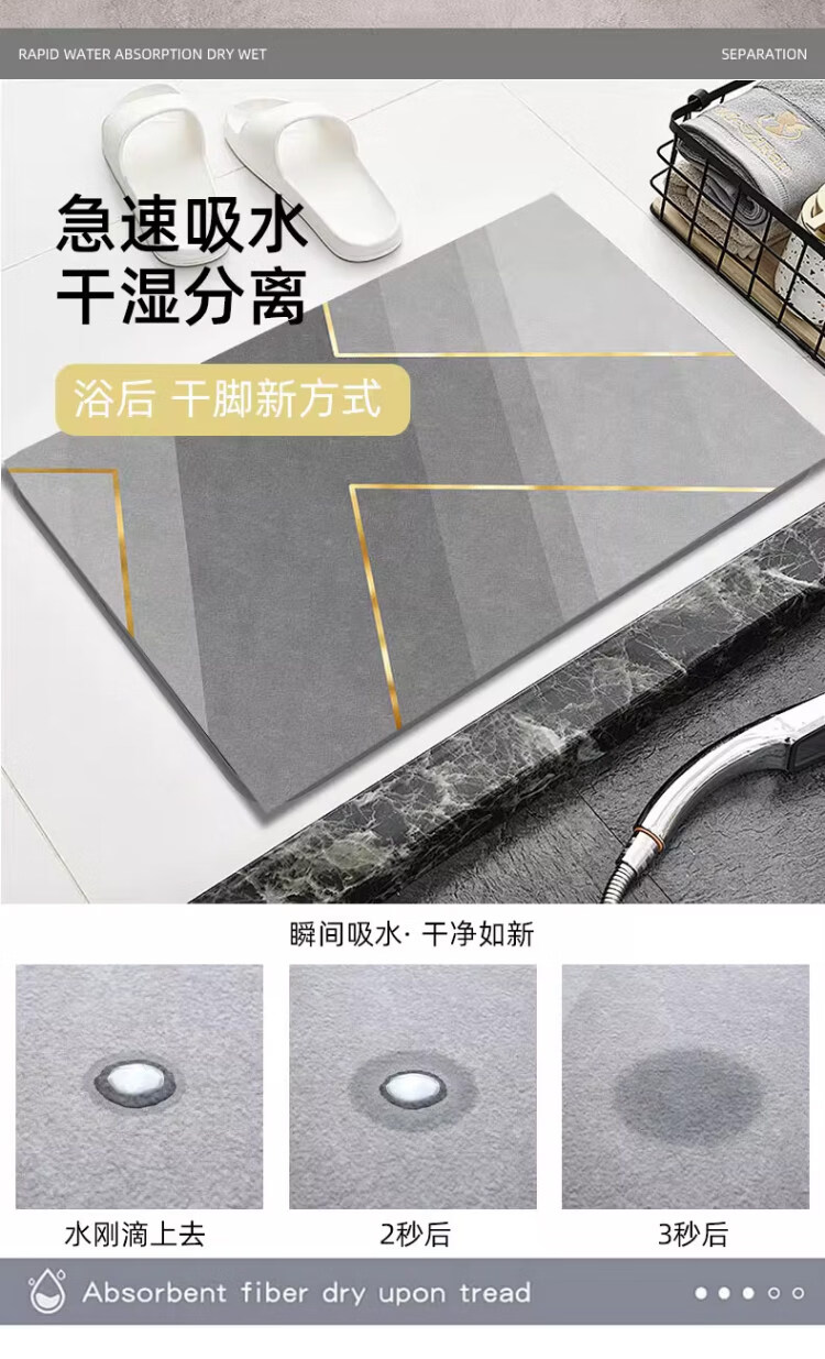 DONOYA 多罗亚浴室硅藻泥卫生间地垫浴室门口吸水地垫卫生间门口吸水防滑垫脚垫 波沿律动-椭圆(硅藻泥吸水) 40cm*60cm 【速干强吸水 浴室】