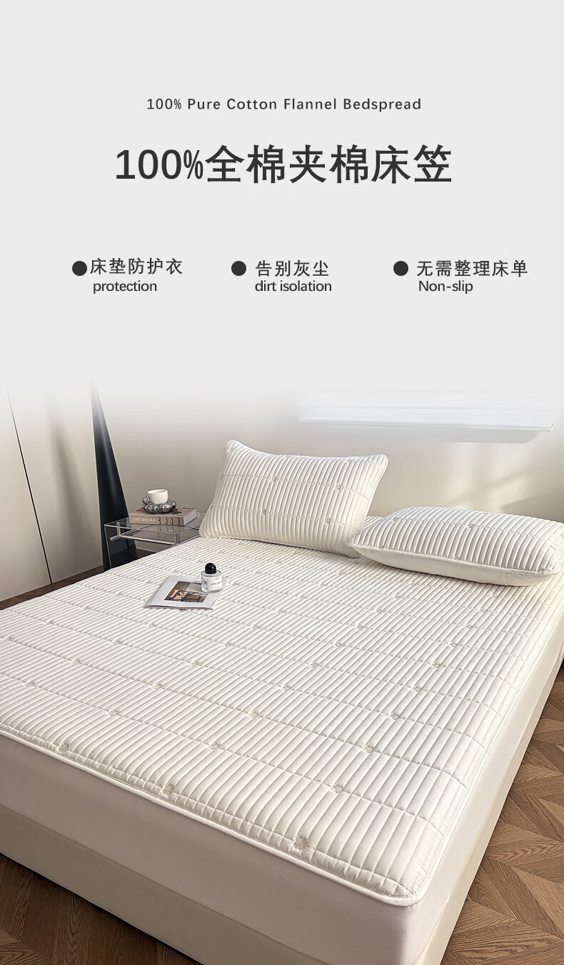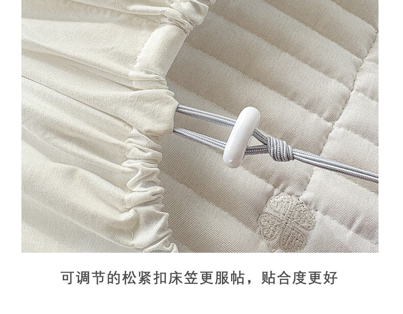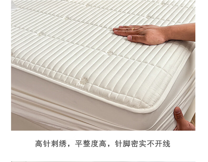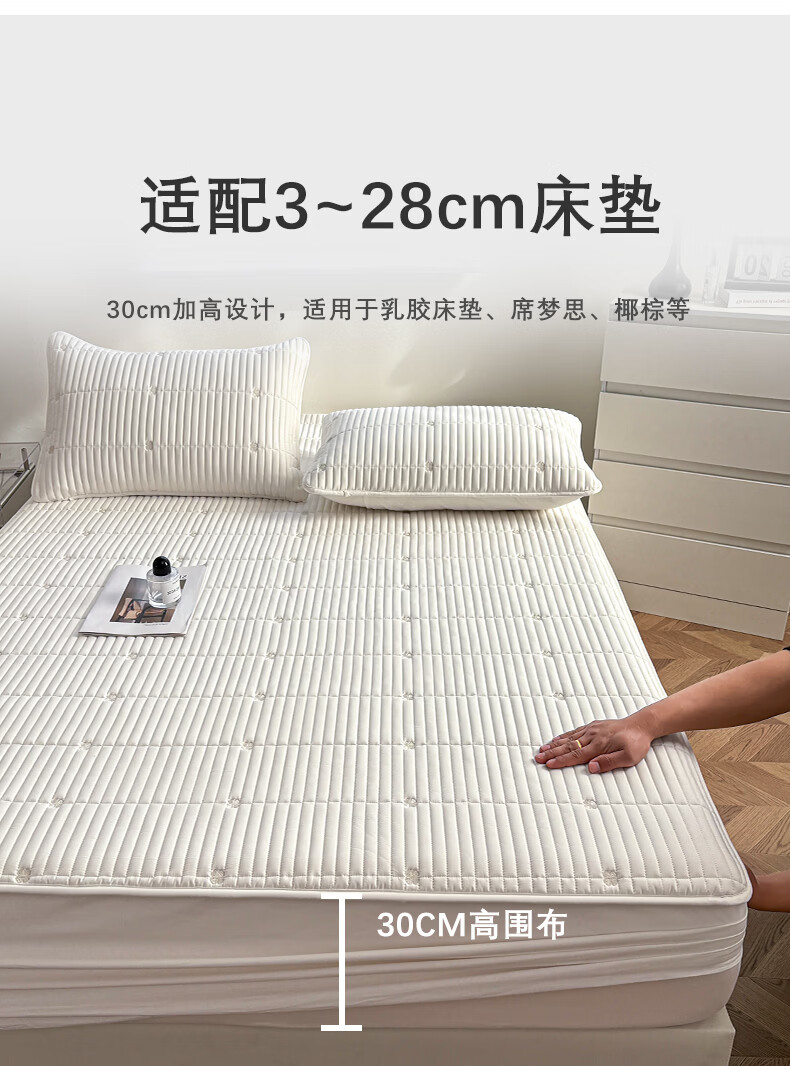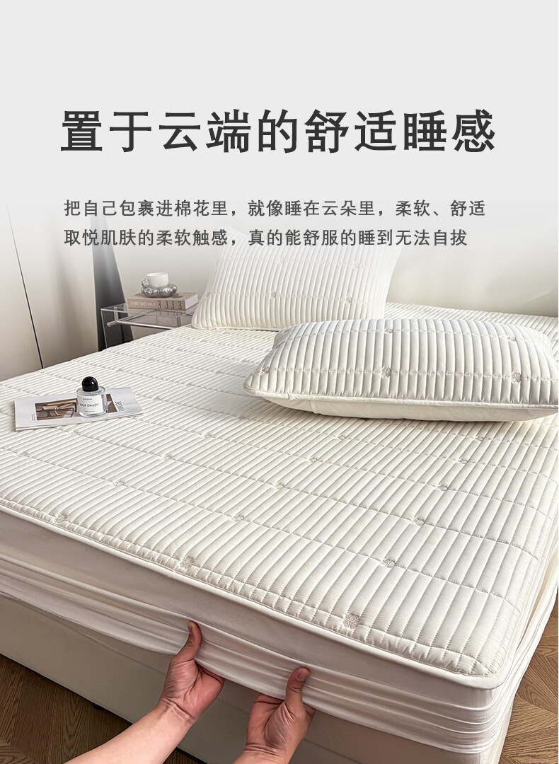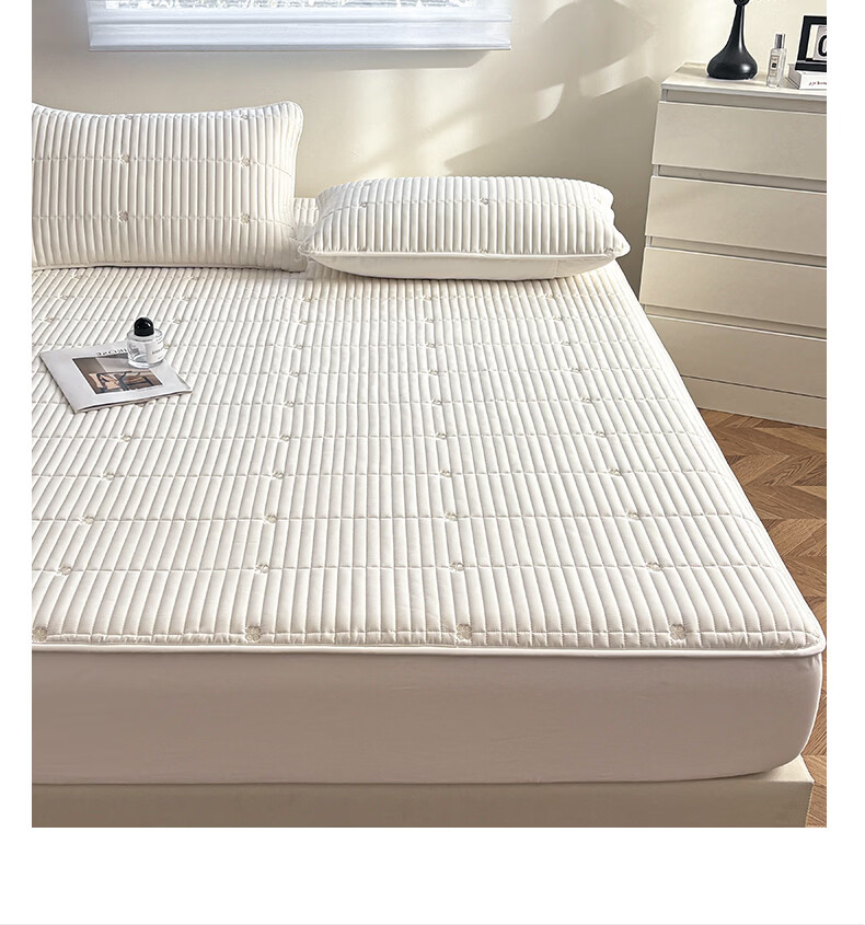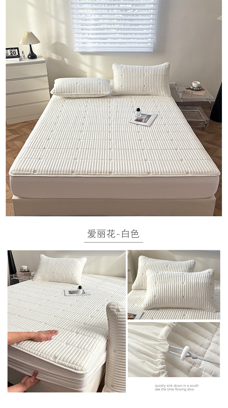 无印良品刺绣全棉夹棉床笠1.8米x2米纯棉床垫保护套席梦思套罩床上三件套 爱丽花-白色【亲肤透气 细腻柔软】 180cm*200cm 单床笠