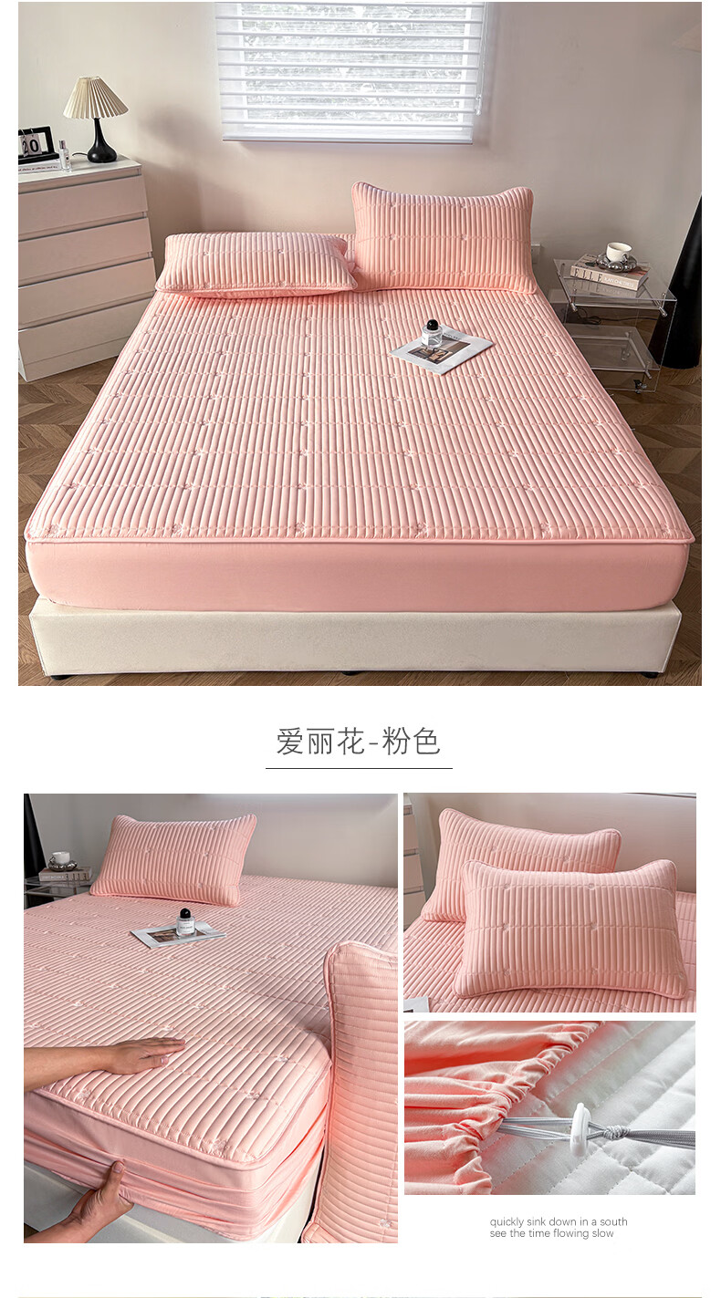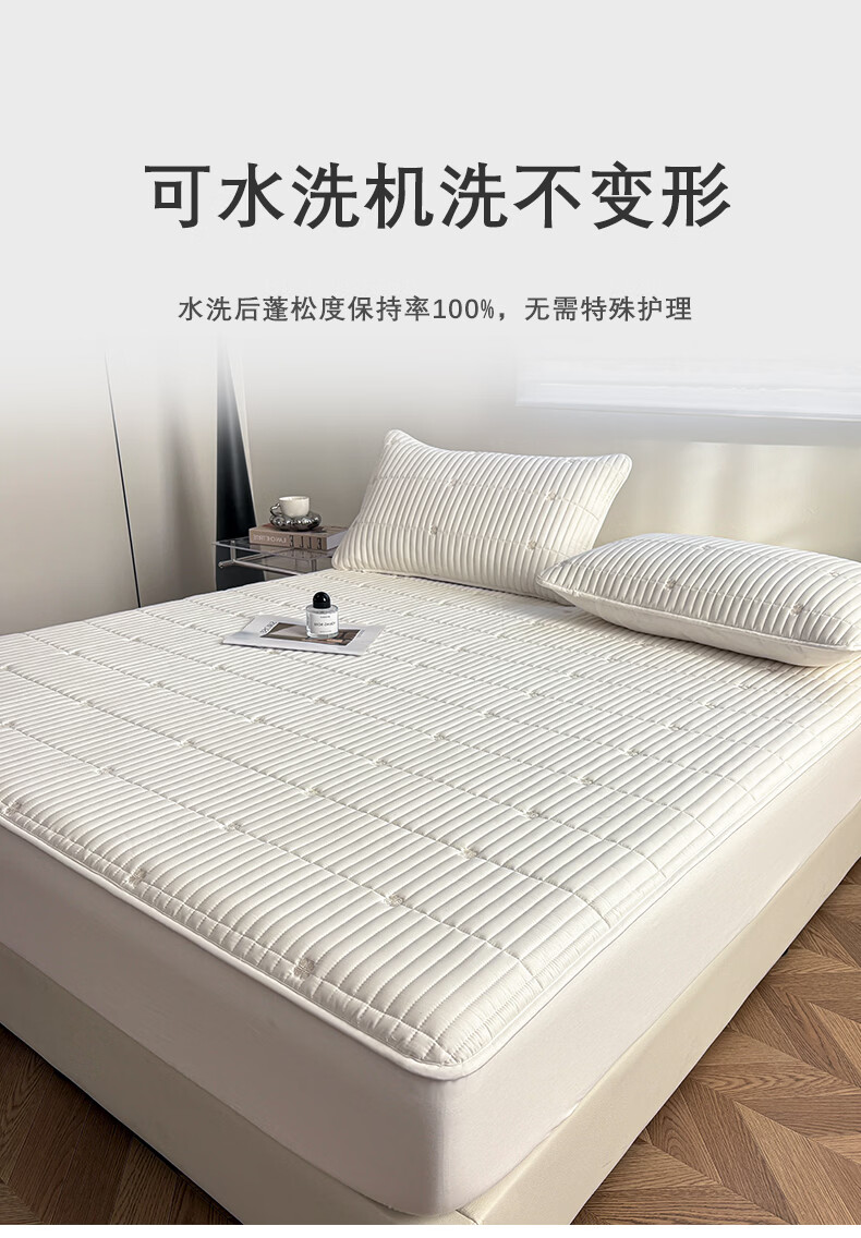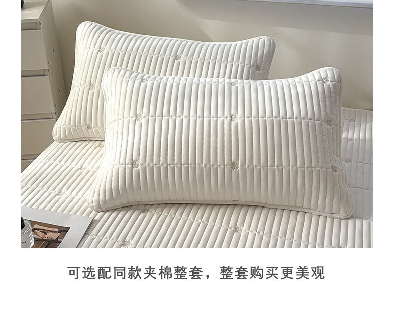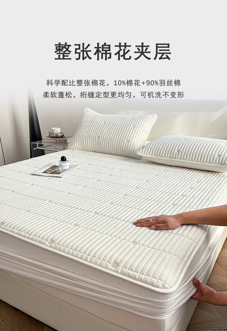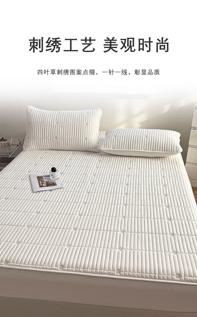 无印良品刺绣全棉夹棉床笠1.8米x2米纯棉床垫保护套席梦思套罩床上三件套 爱丽花-白色【亲肤透气 细腻柔软】 180cm*200cm 单床笠