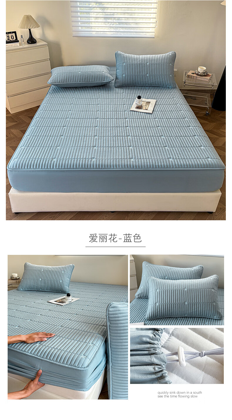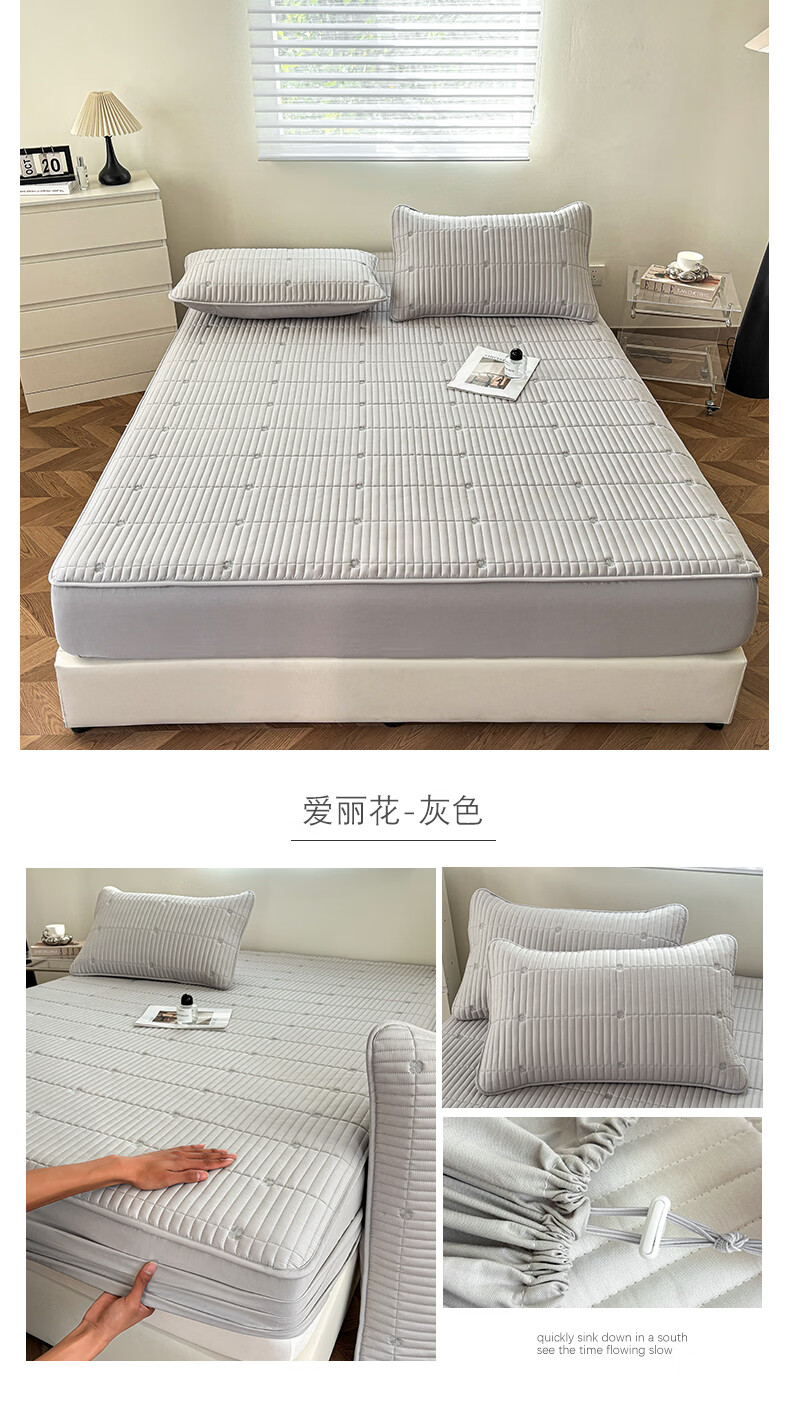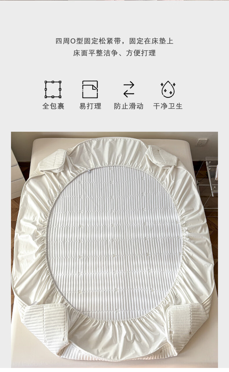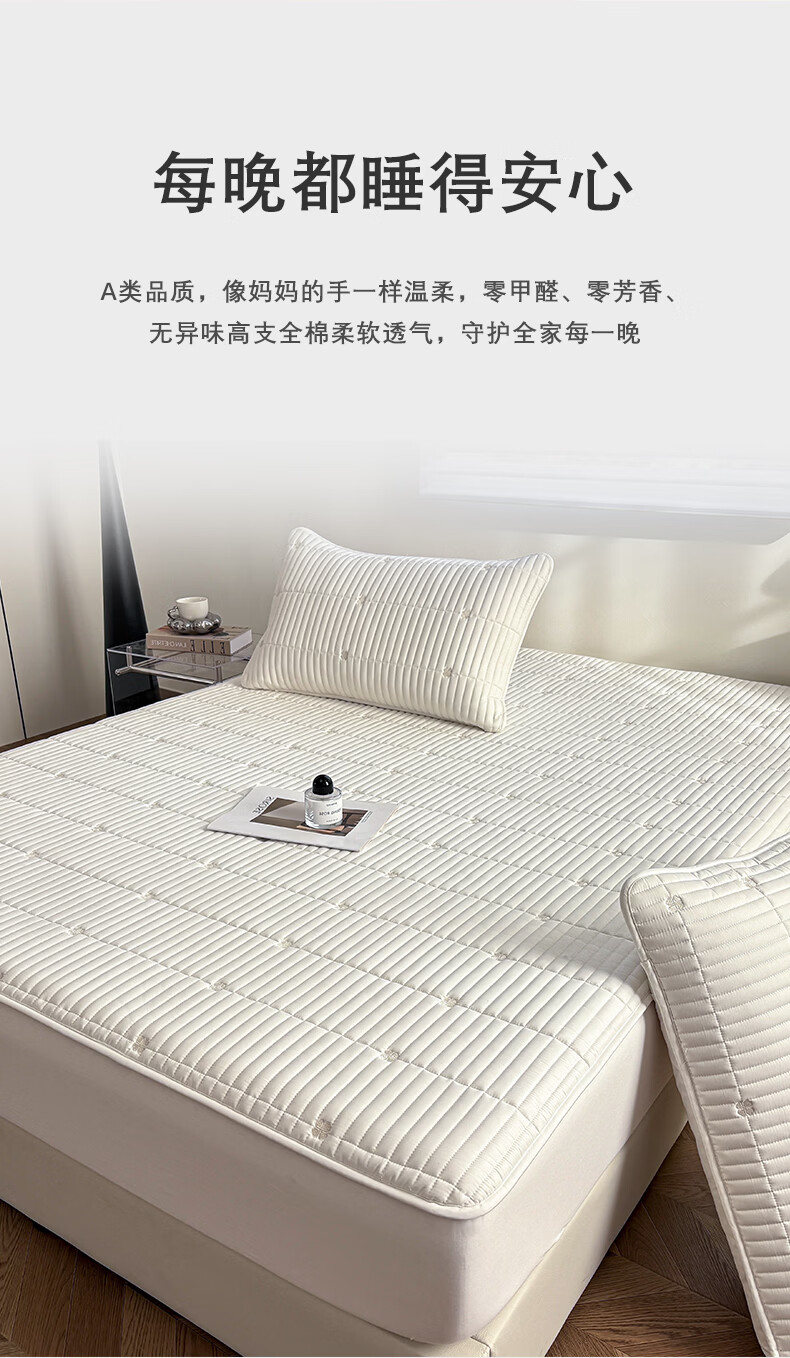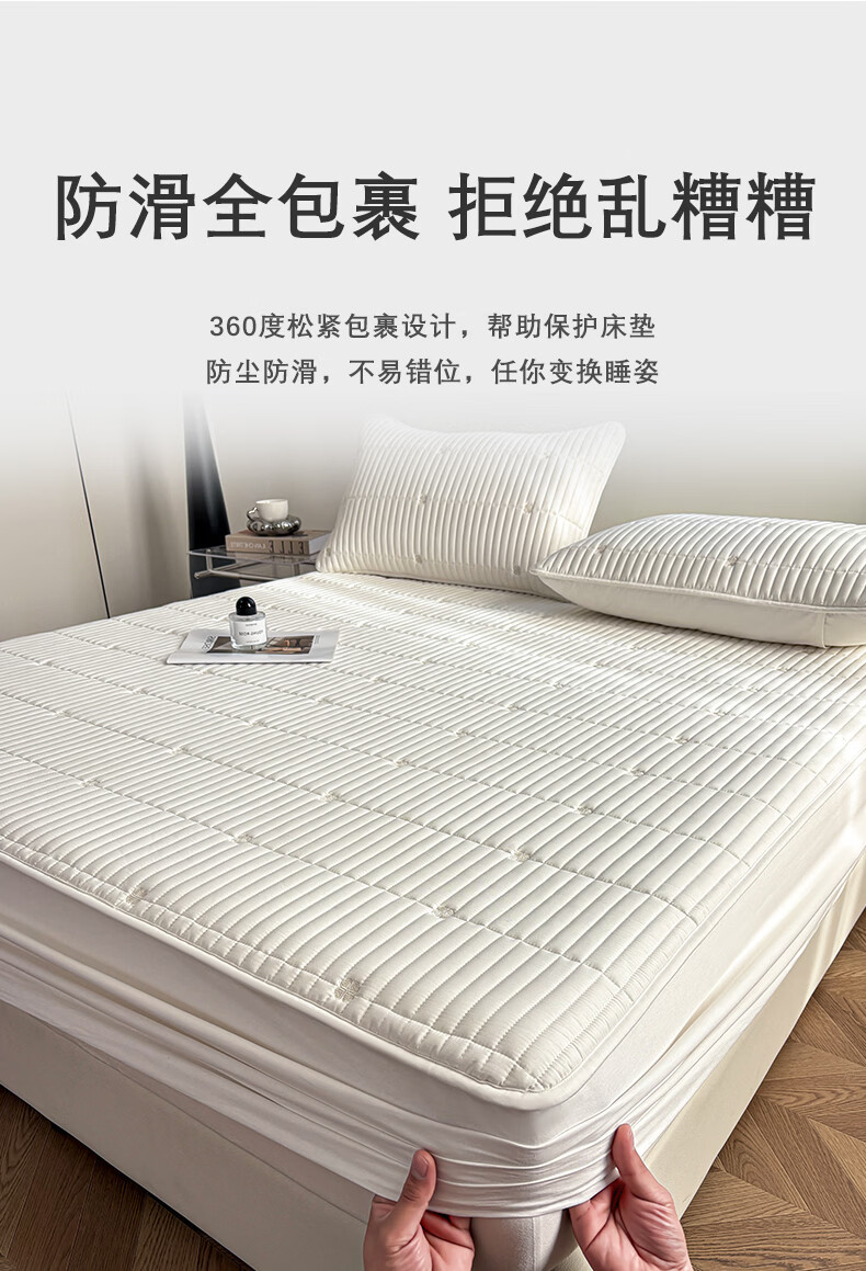 无印良品刺绣全棉夹棉床笠1.8米x2米纯棉床垫保护套席梦思套罩床上三件套 爱丽花-白色【亲肤透气 细腻柔软】 180cm*200cm 单床笠