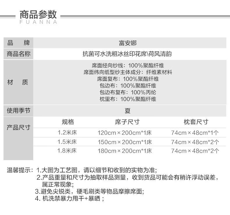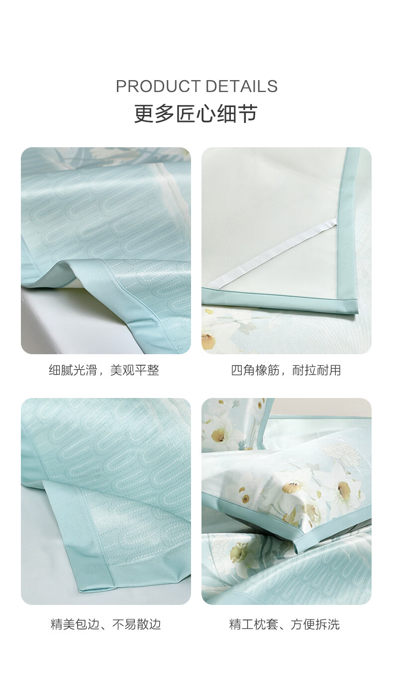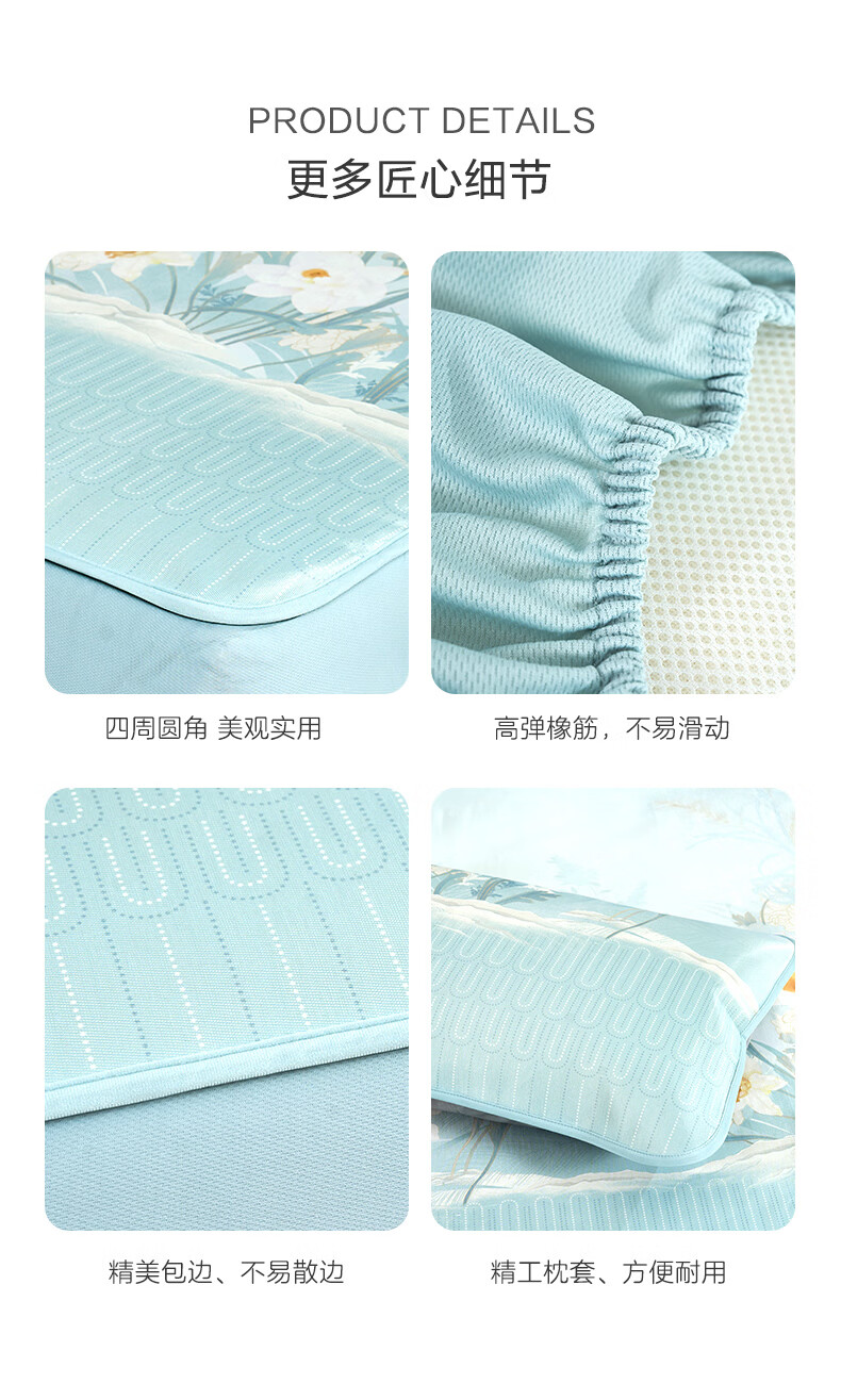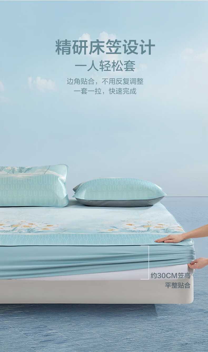 富安娜 凉席冰丝席1000D粗丝加密席子透气国风印花防滑可折叠空调席 【A类1000D粗冰丝印花 橡筋款】山河 1.2米 200cm*120cm 席子*1 枕套*1