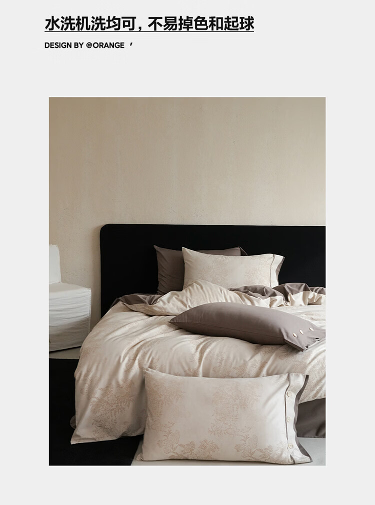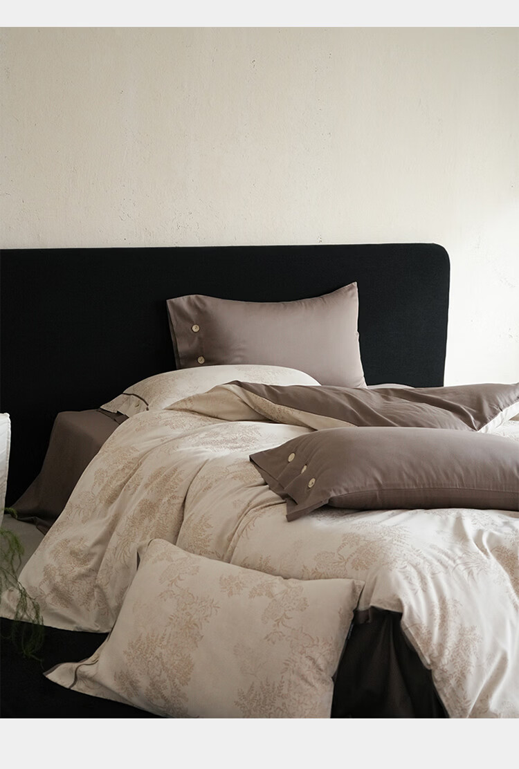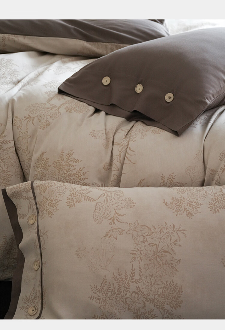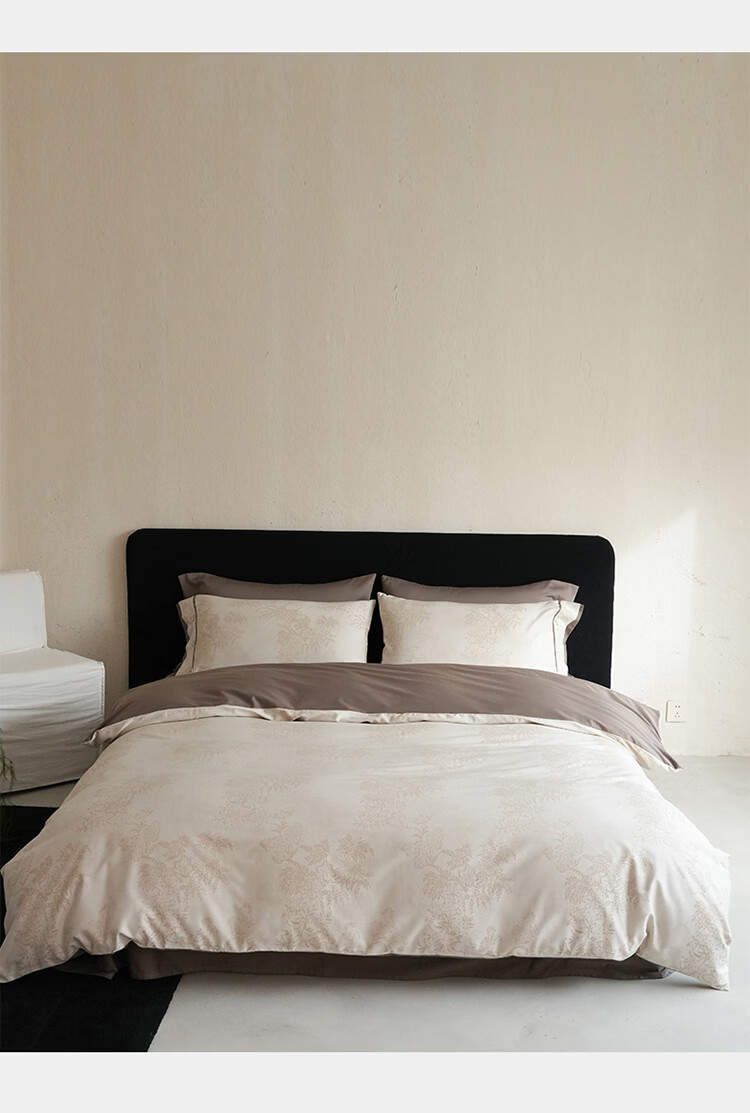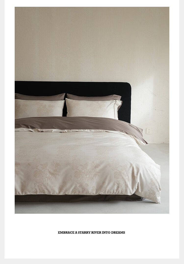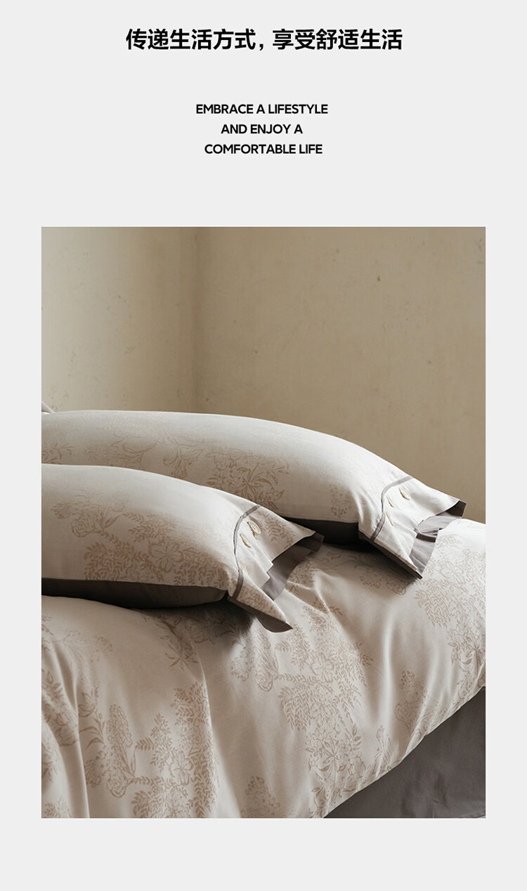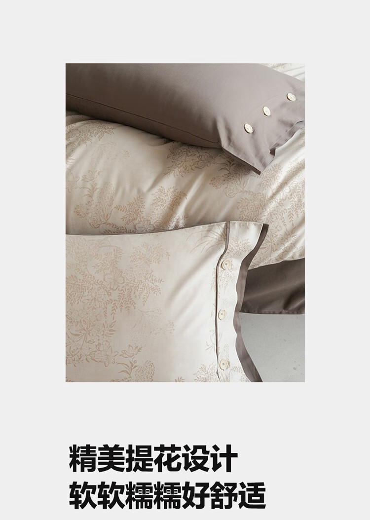 ROLAND LIVE新疆长绒棉色织提花四件套亲肤裸睡全棉高级感被套床单床上用品 YYG 长绒棉四件套-细雨蔷薇浅咖 1.5米床 床笠款 【被套200*230cm】