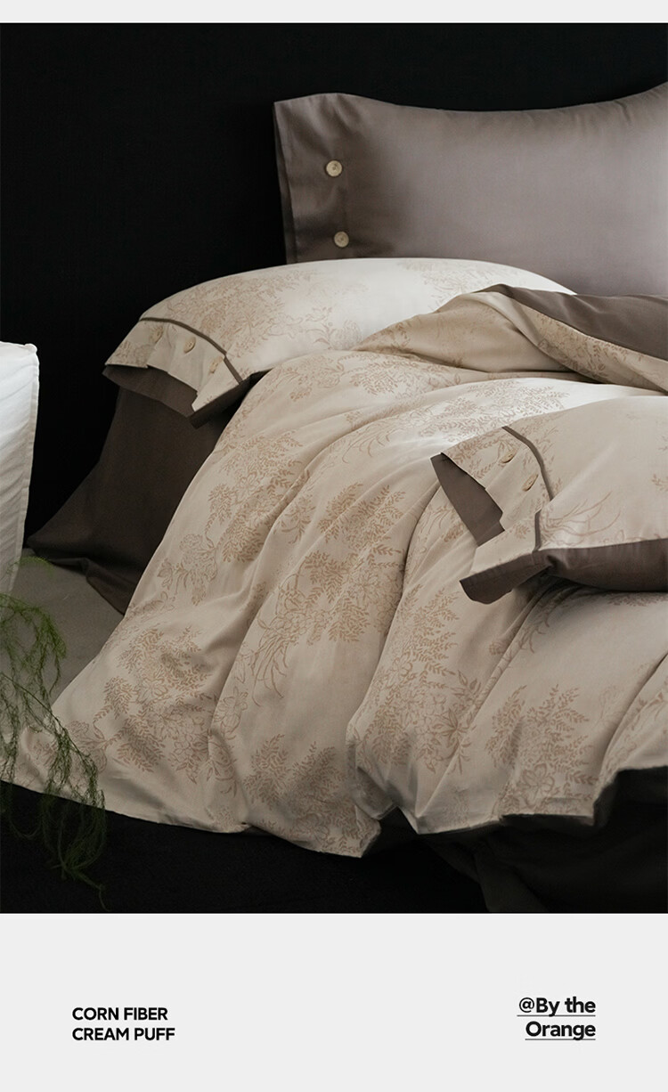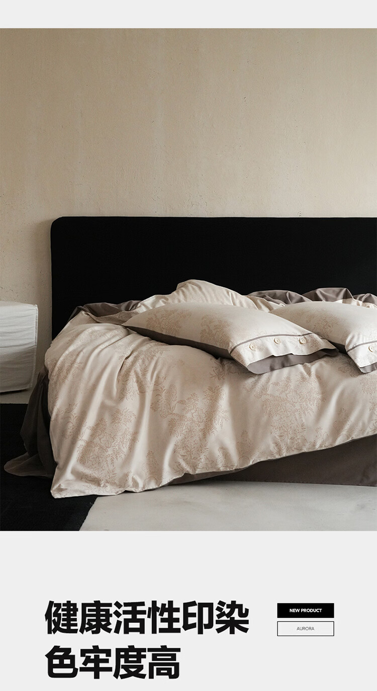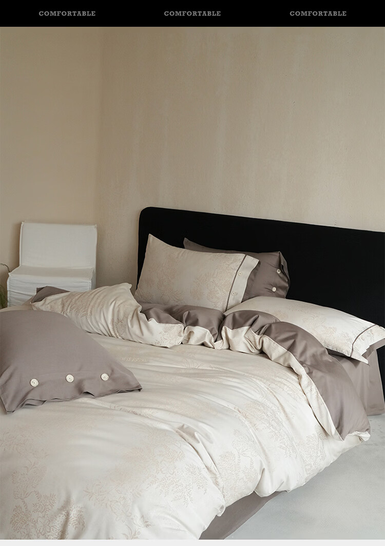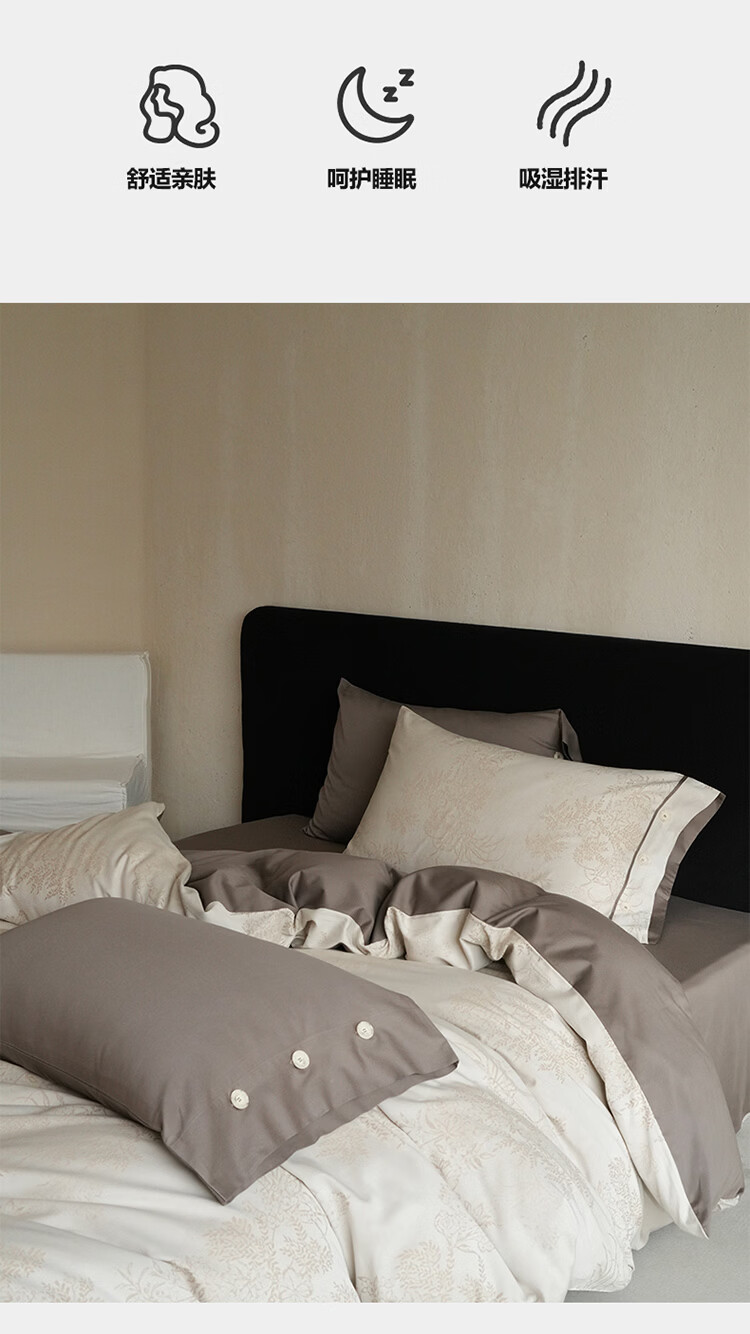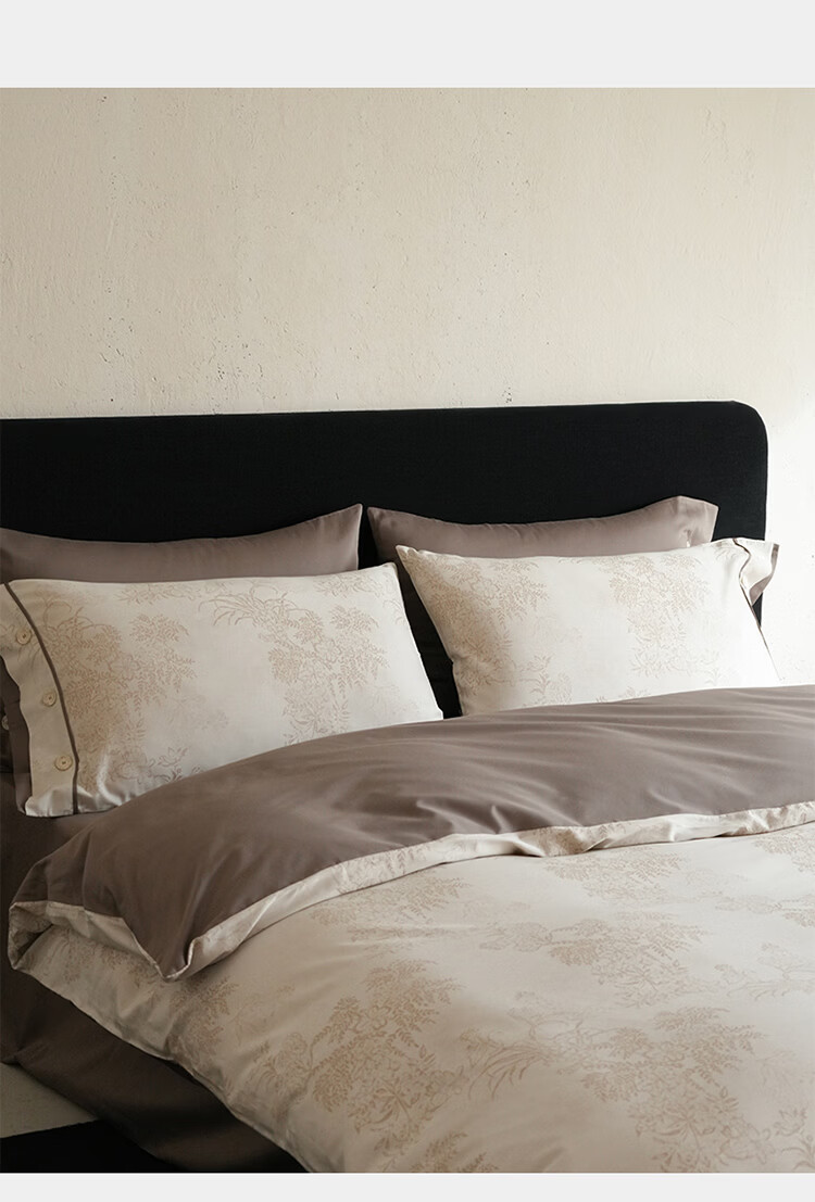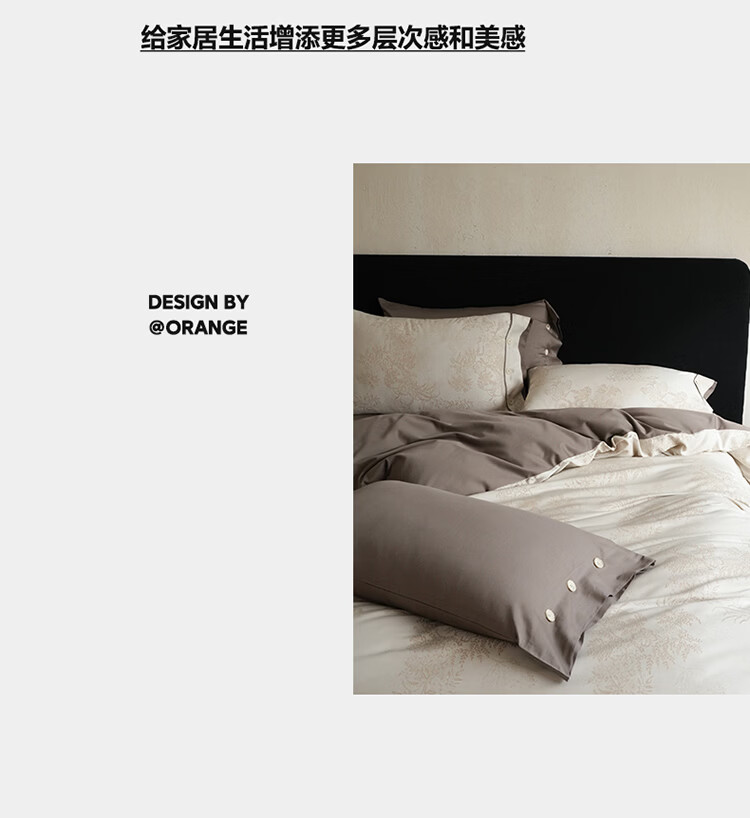 ROLAND LIVE新疆长绒棉色织提花四件套亲肤裸睡全棉高级感被套床单床上用品 YYG 长绒棉四件套-细雨蔷薇浅咖 1.5米床 床笠款 【被套200*230cm】