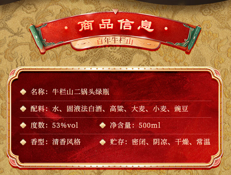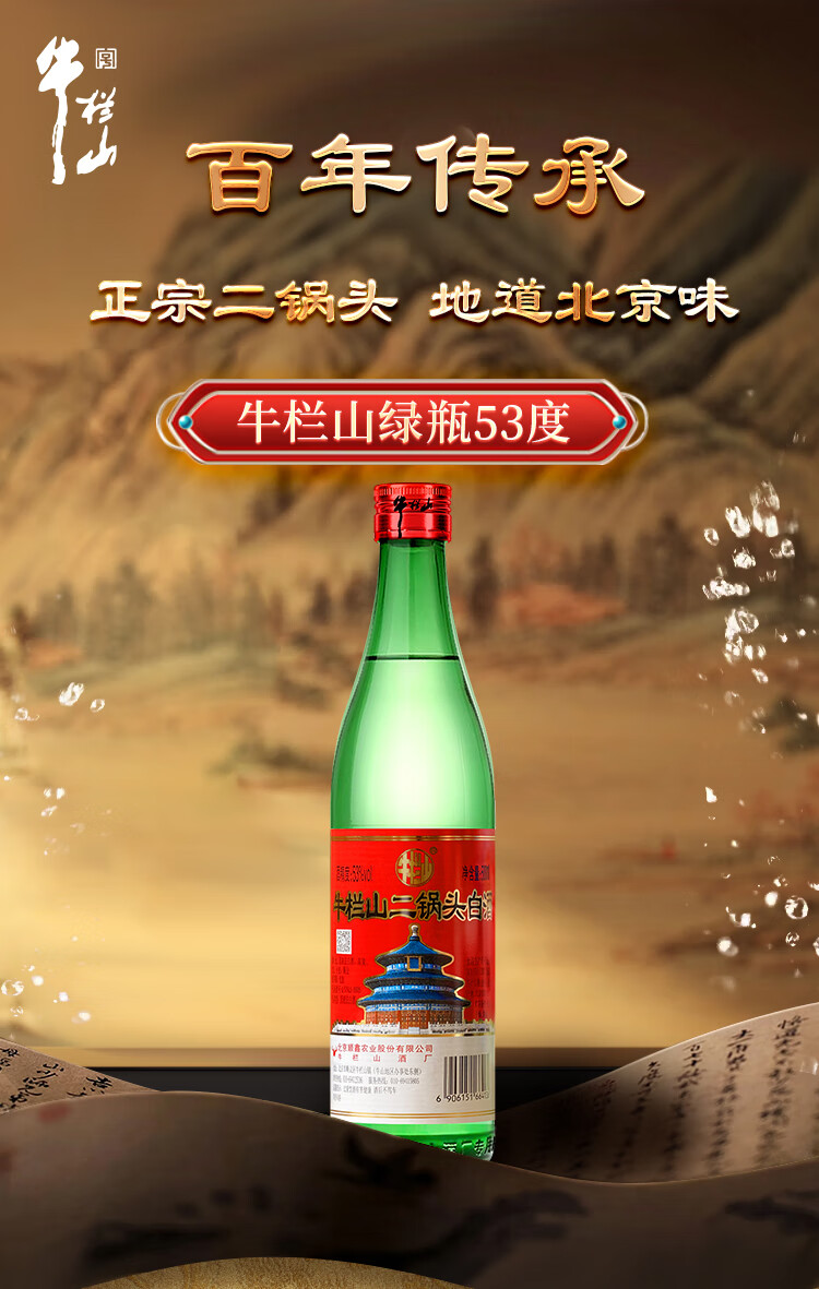 牛栏山二锅头 清香型 53度 白酒500mI*1瓶 单瓶装 口粮酒