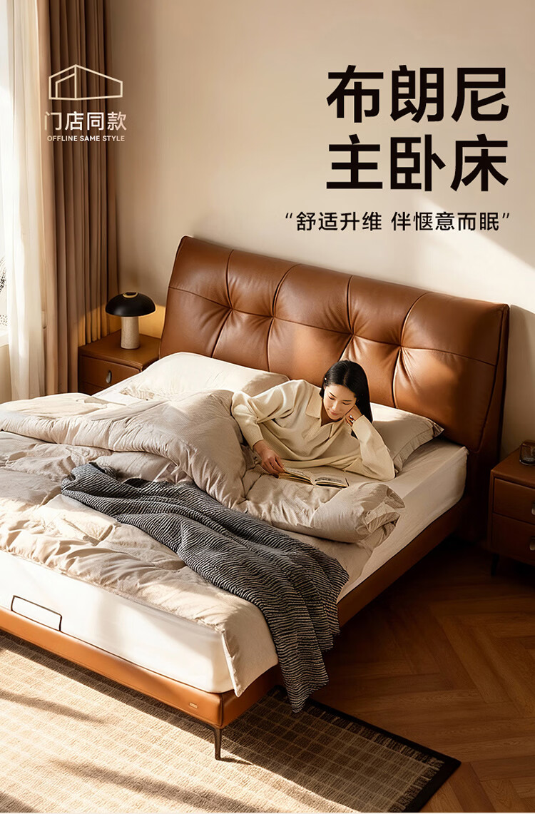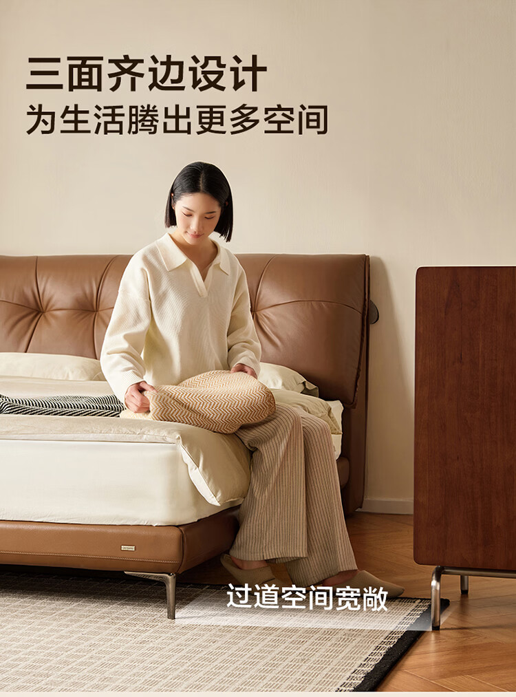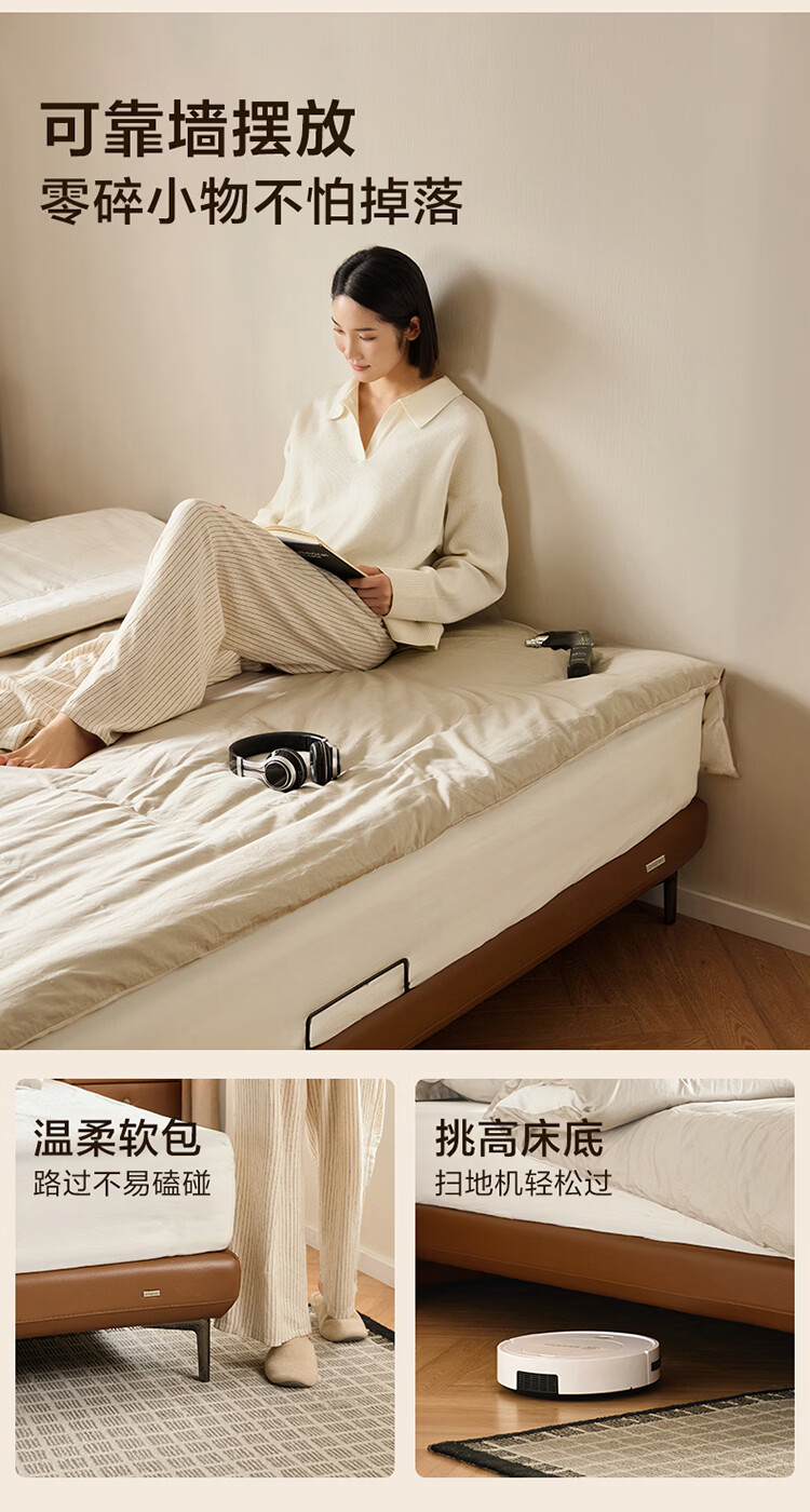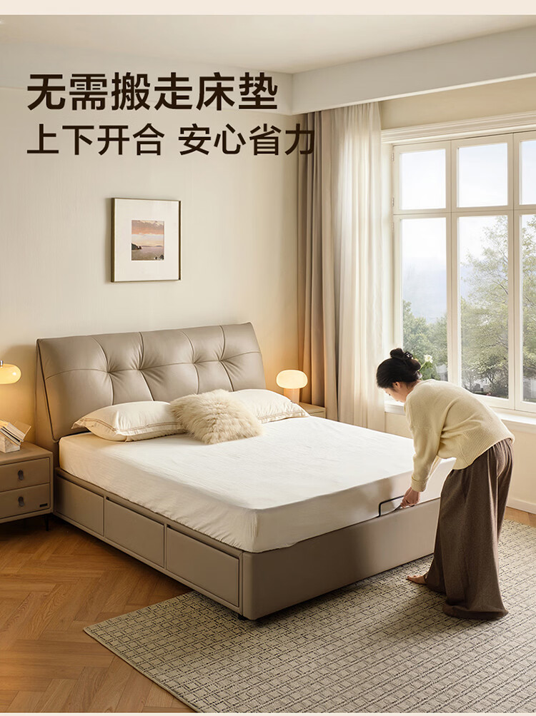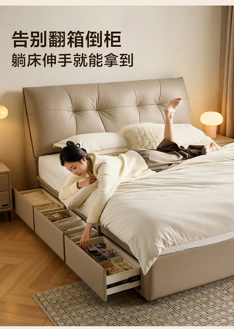 CBD家居现代简约真皮软包床双人主卧大床奶油风婚床头层牛皮甜心悬浮 甜心悬浮-奶油白单床 卷帘排骨架 1500*2000