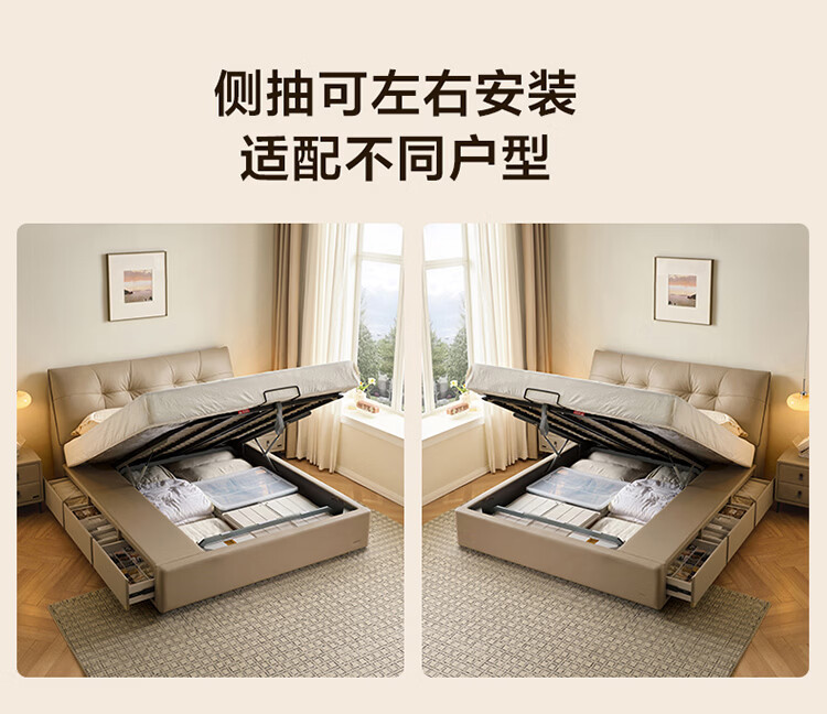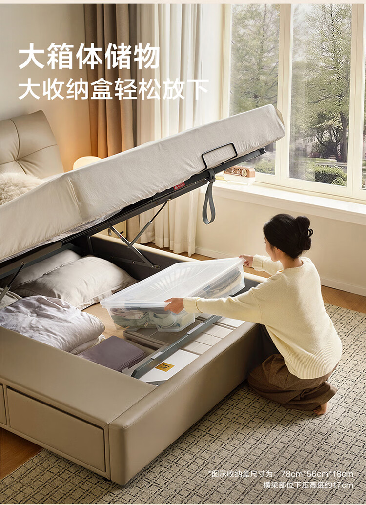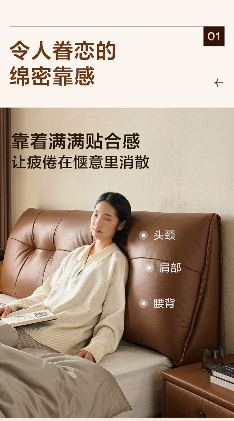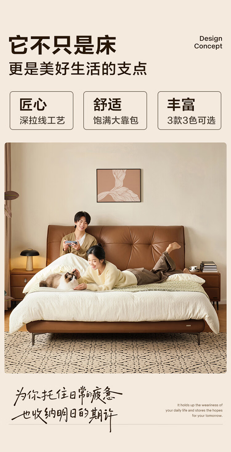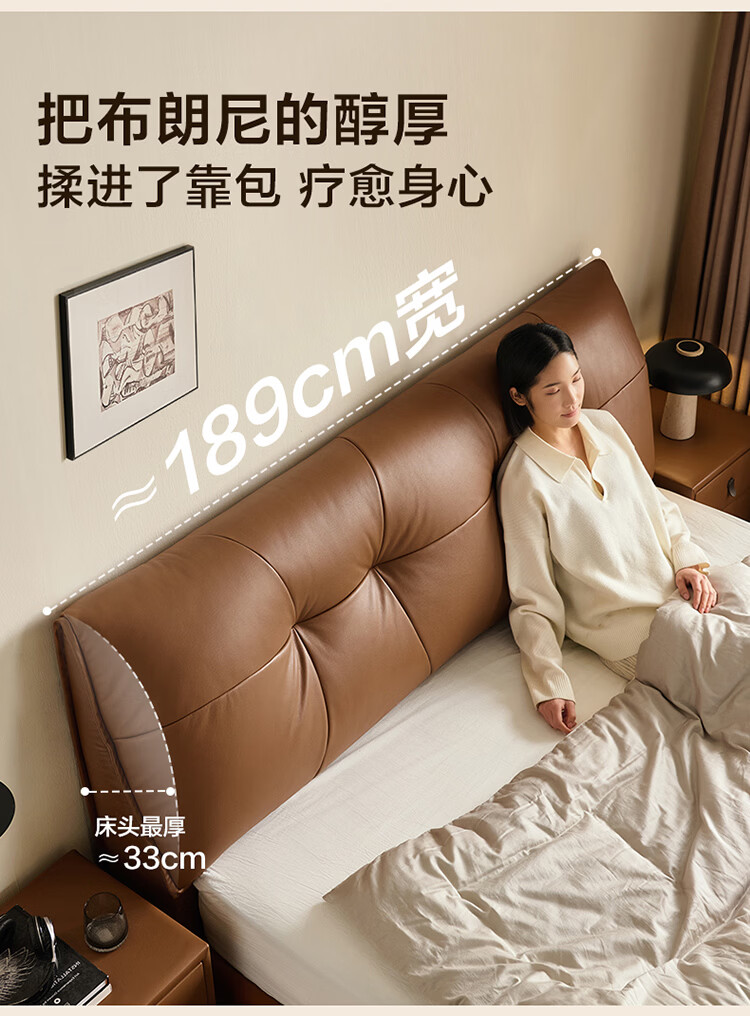 CBD家居现代简约真皮软包床双人主卧大床奶油风婚床头层牛皮甜心悬浮 甜心悬浮-奶油白单床 卷帘排骨架 1500*2000