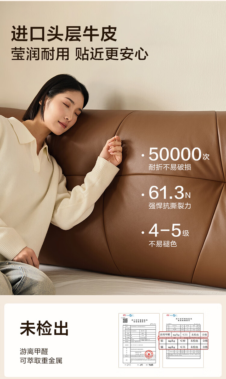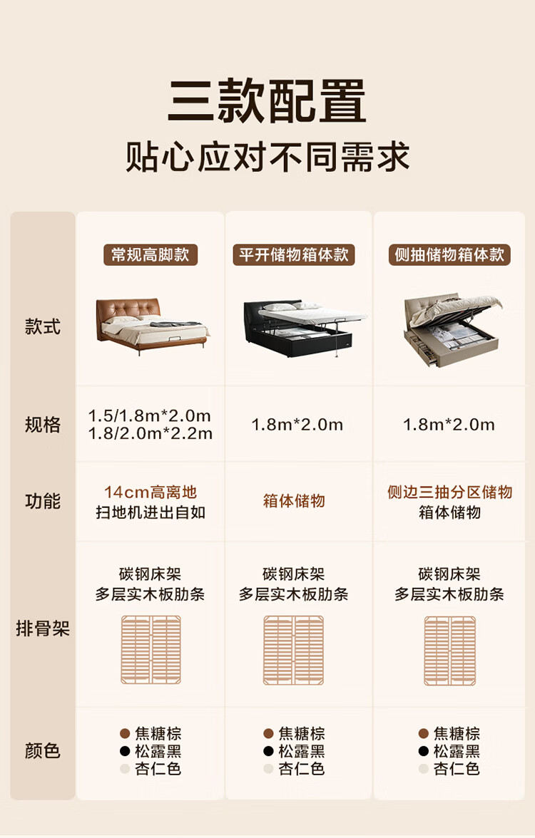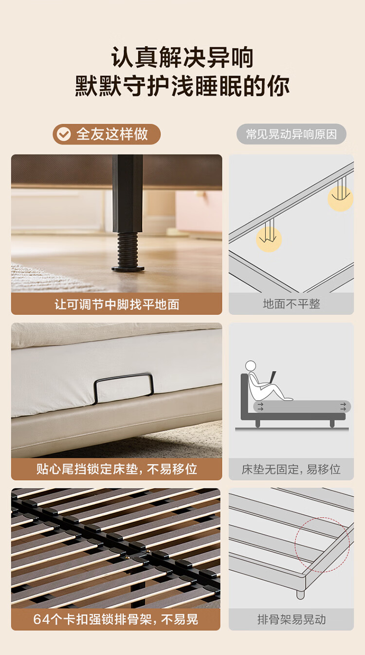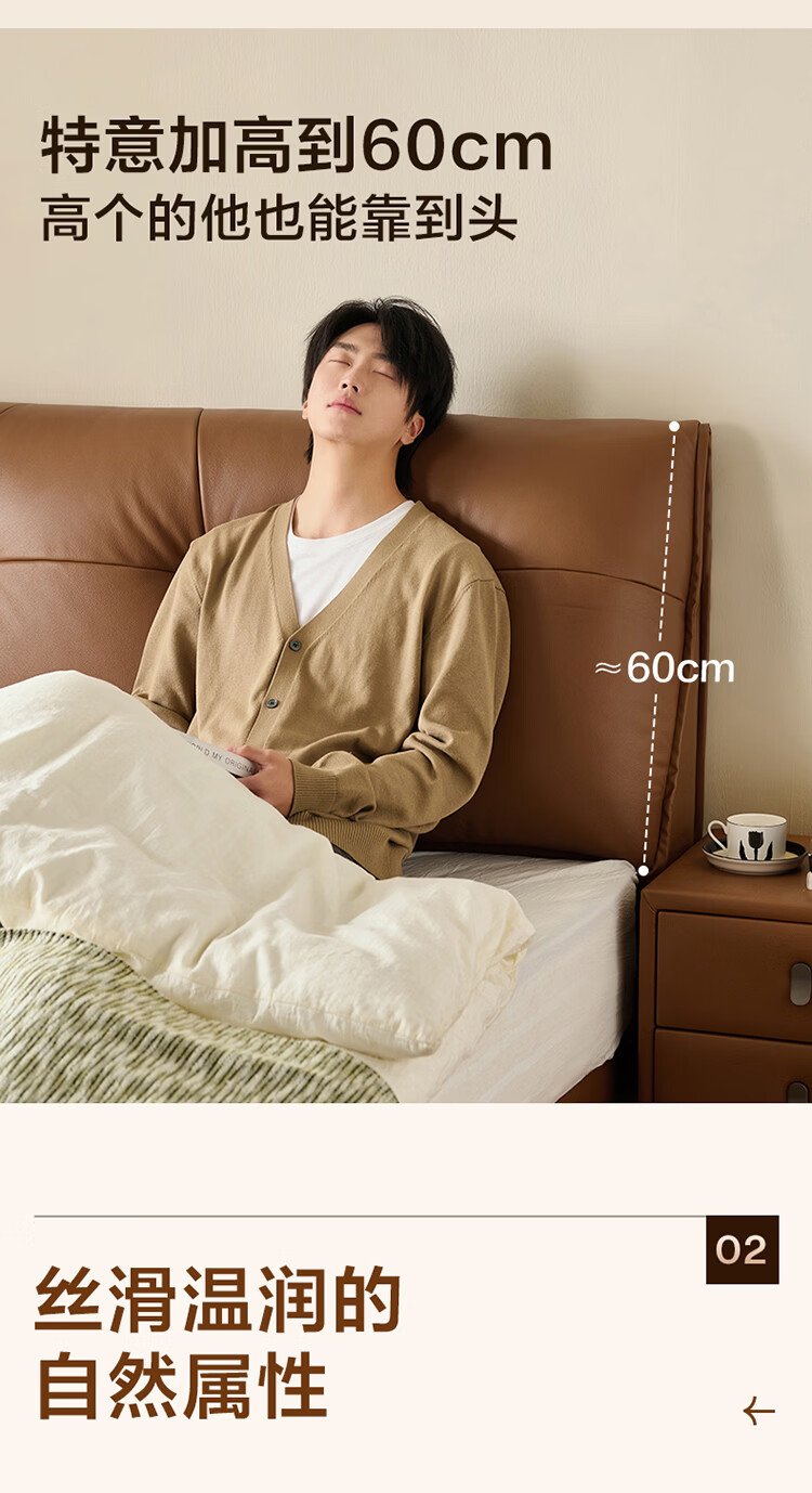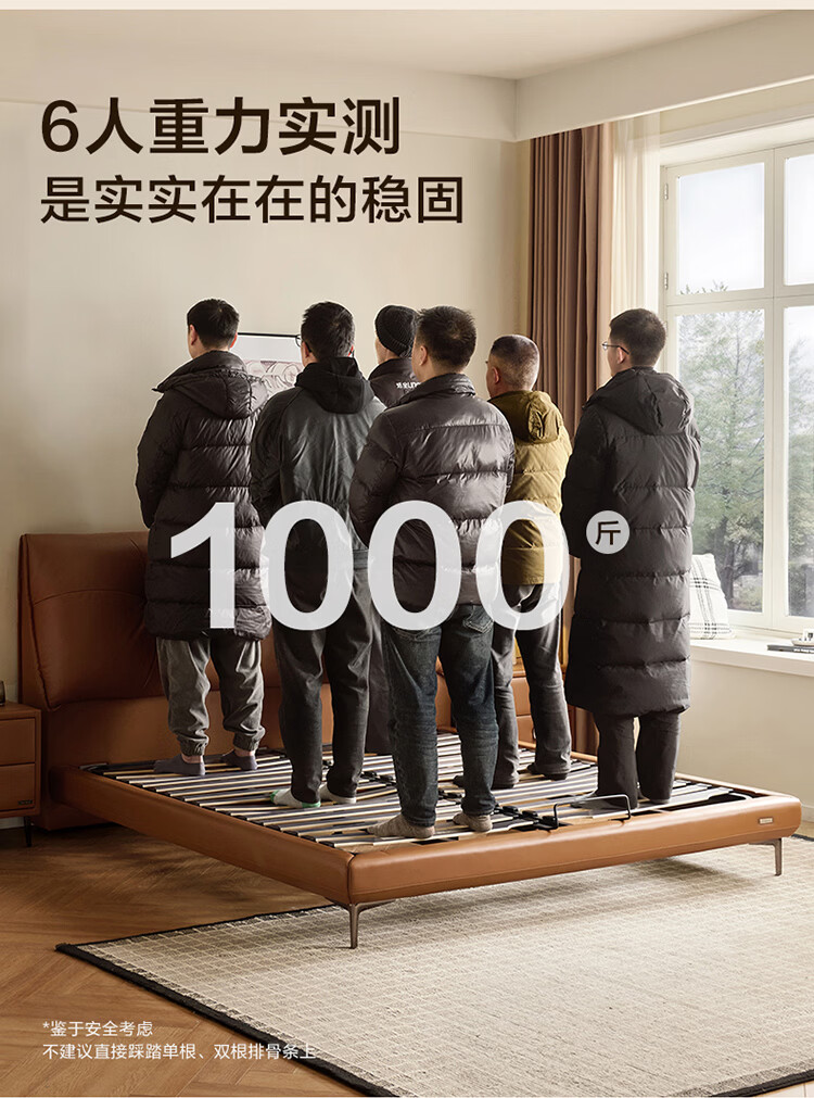 CBD家居现代简约真皮软包床双人主卧大床奶油风婚床头层牛皮甜心悬浮 甜心悬浮-奶油白单床 卷帘排骨架 1500*2000