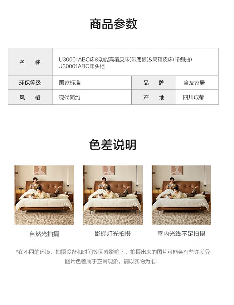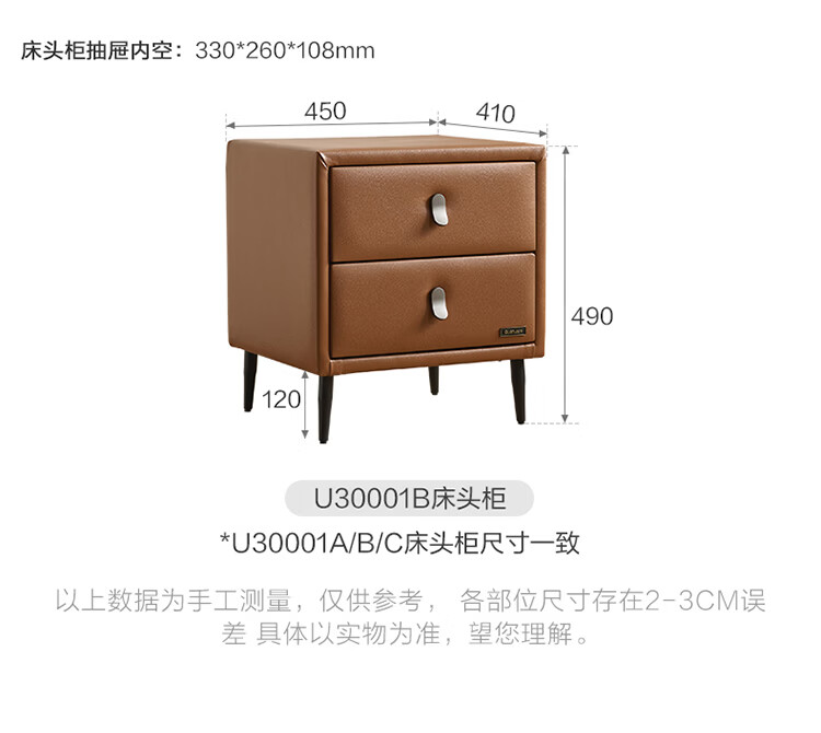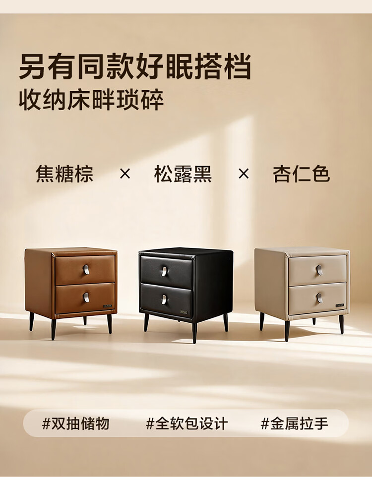 全友家居线门店下同款布朗尼皮艺床软包床头靠背主卧大床床头柜U30001 【松露黑 | 侧抽储物款】 1.8x2米