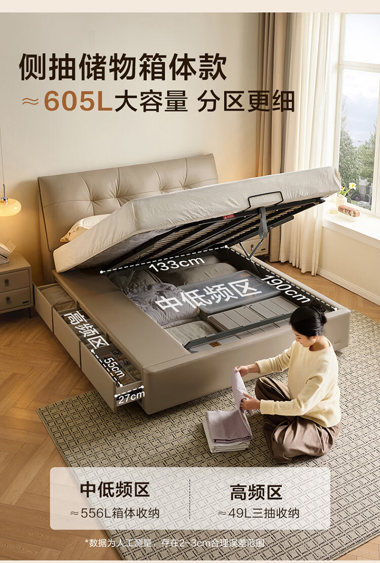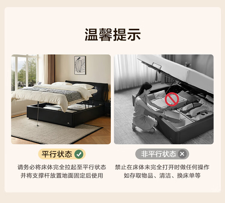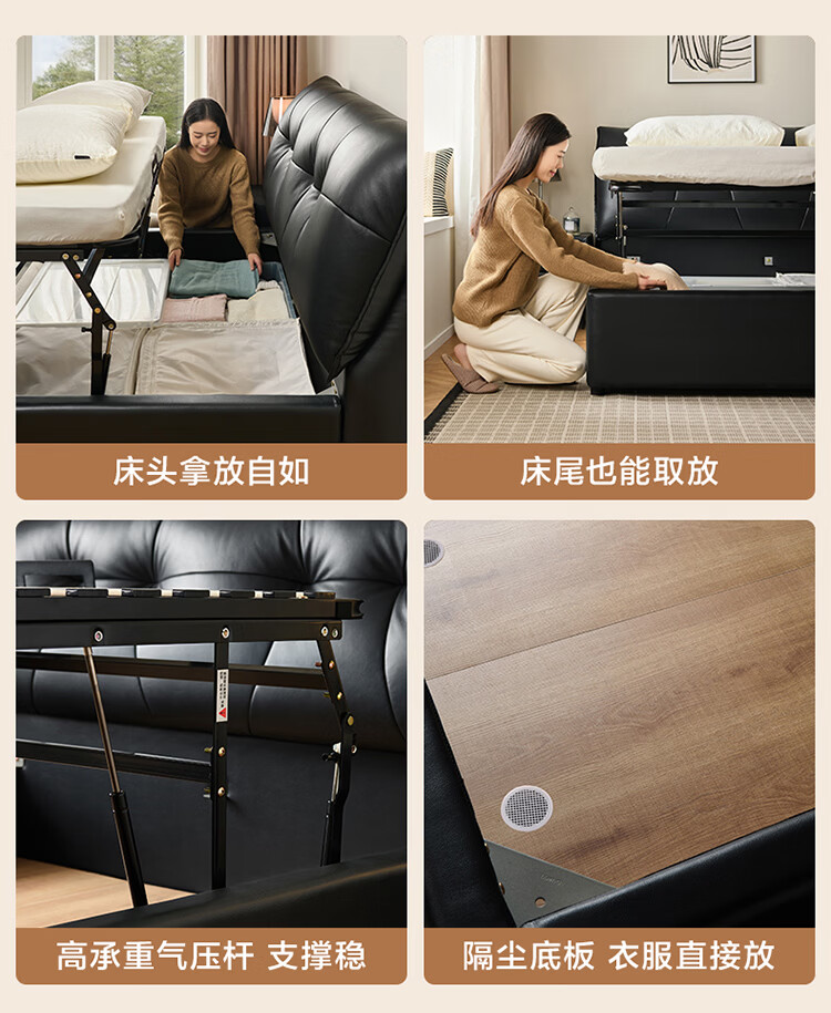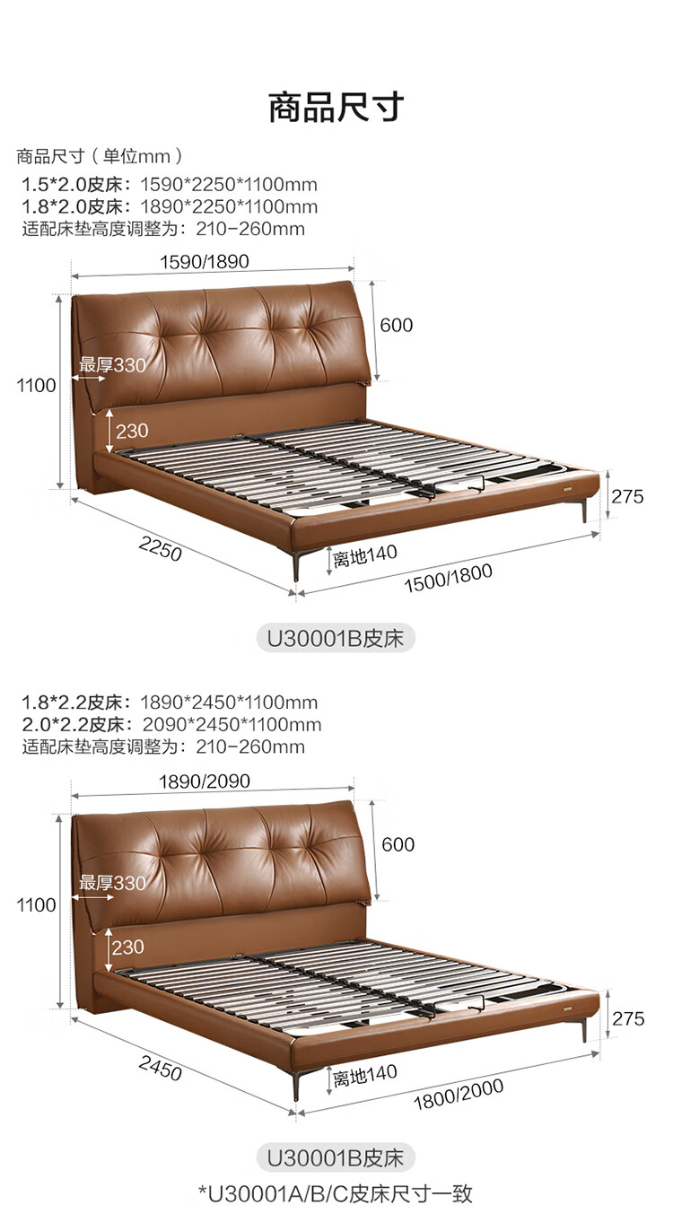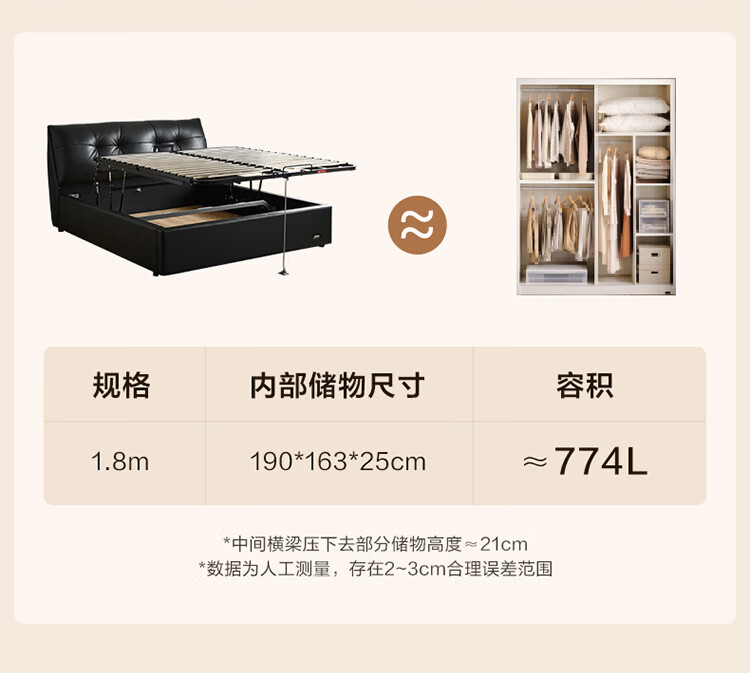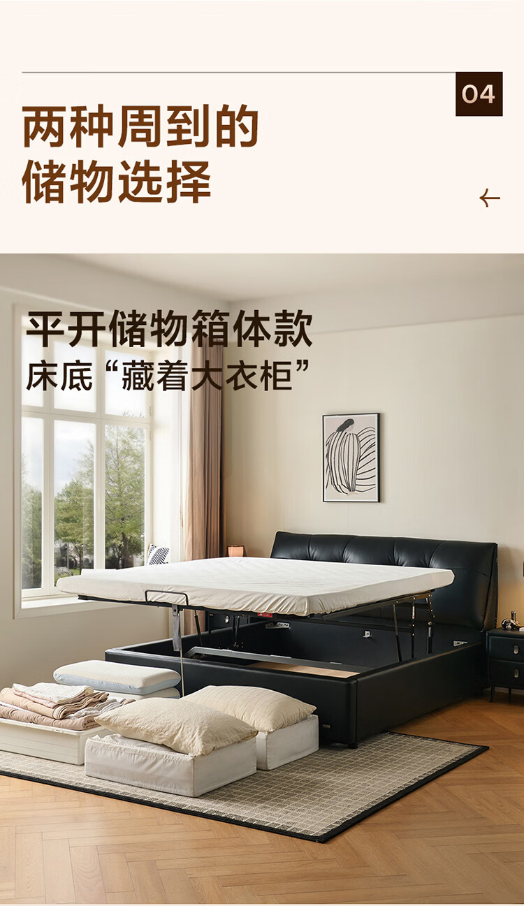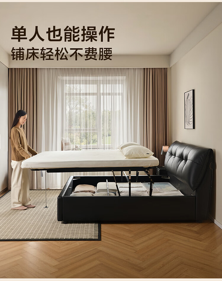 CBD家居现代简约真皮软包床双人主卧大床奶油风婚床头层牛皮甜心悬浮 甜心悬浮-水墨黑单床 卷帘排骨架 1800*2000
