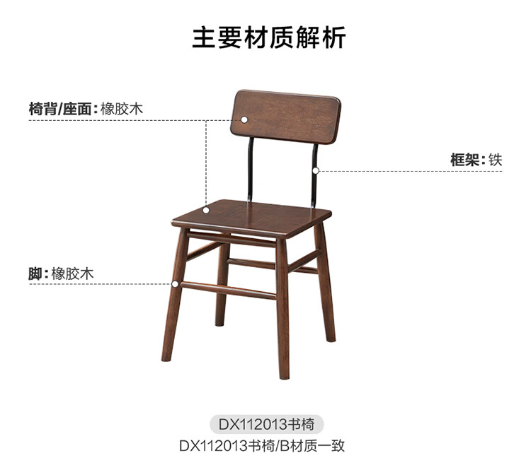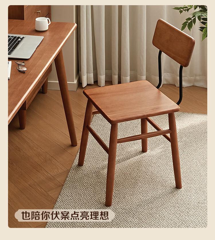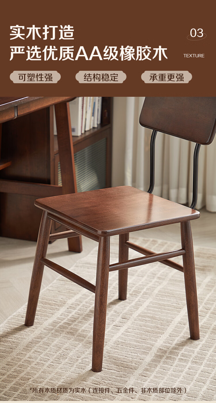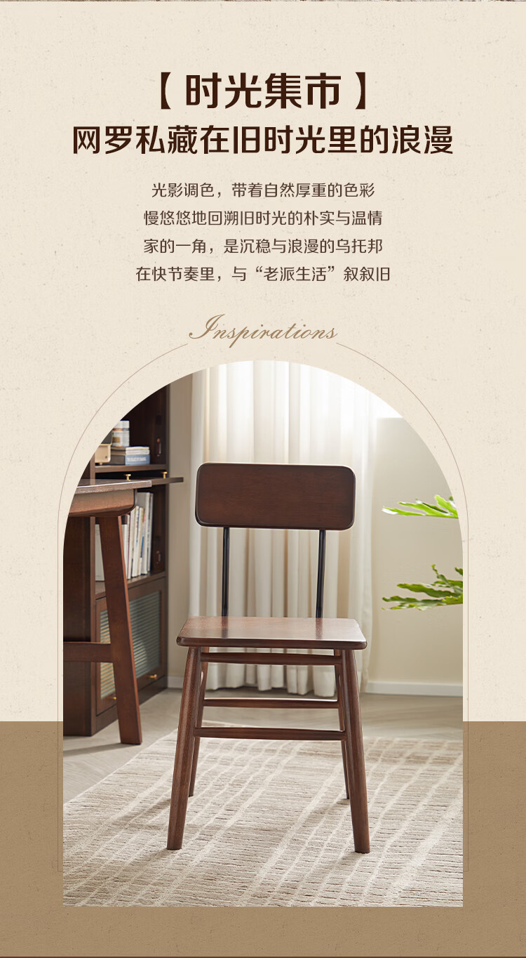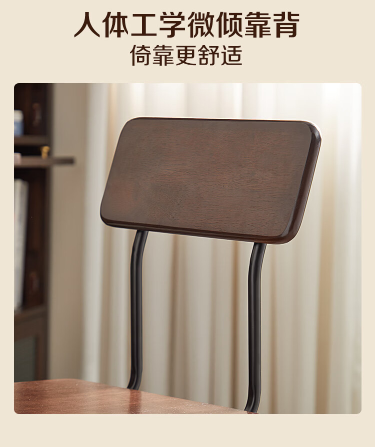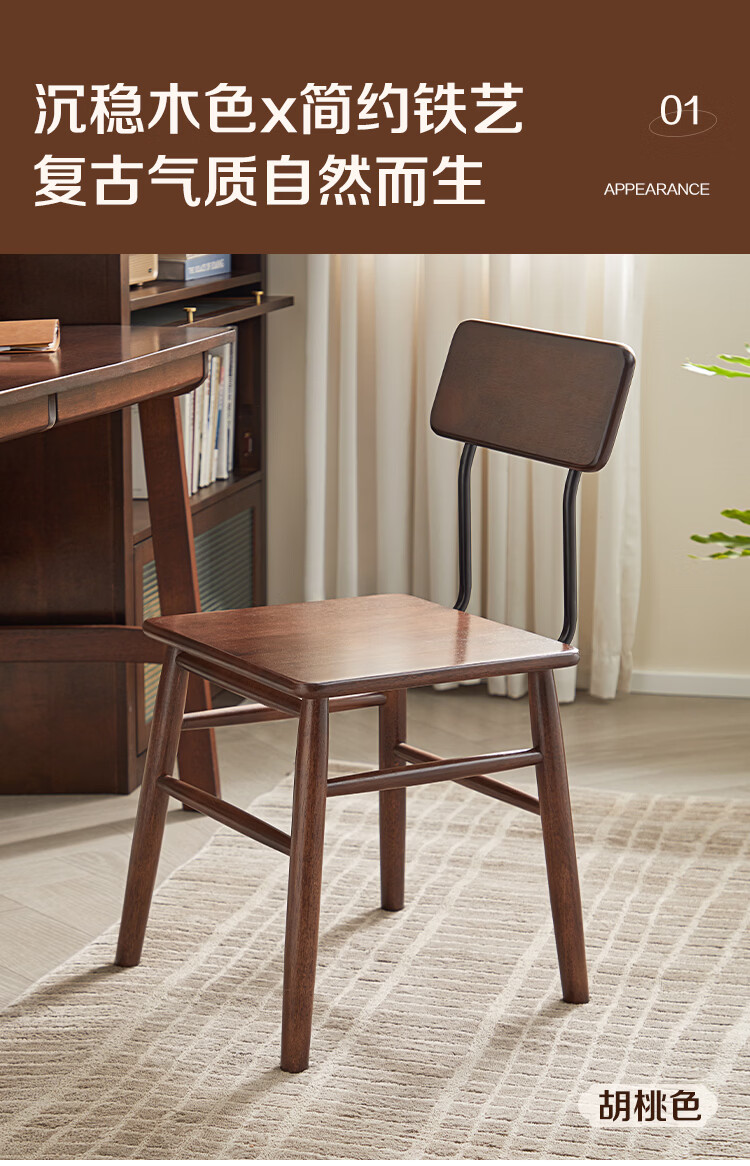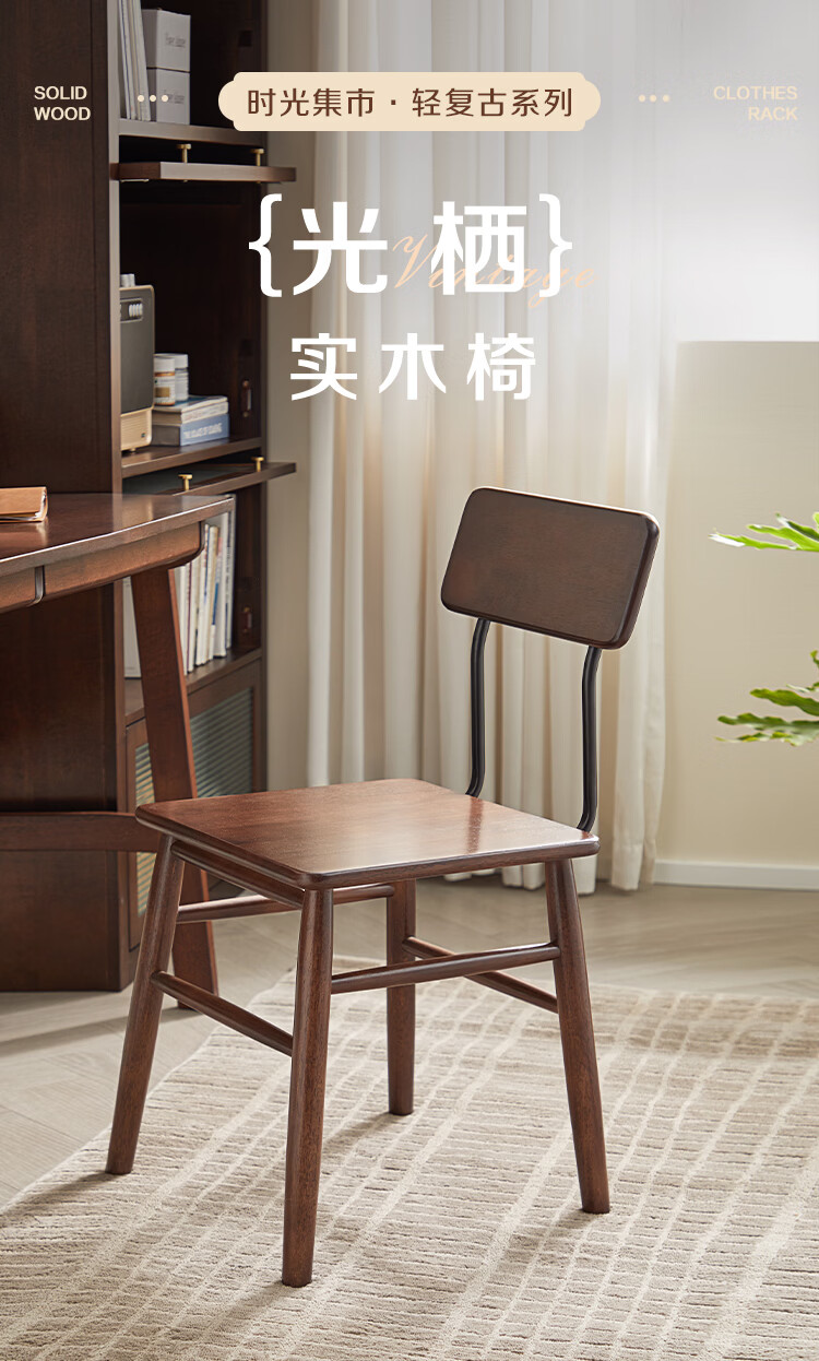 全友家居复古实木椅子中古风2026新款凳子带靠背办公书桌椅餐椅家用KD 【胡桃色】书椅