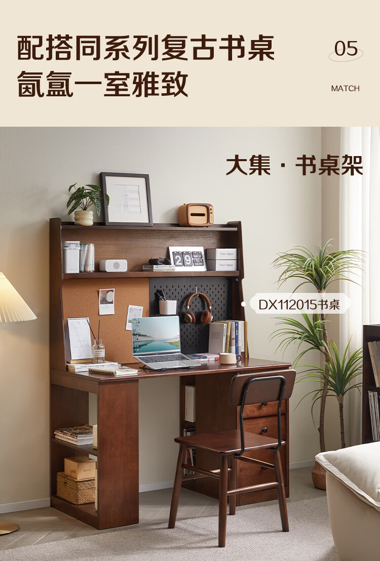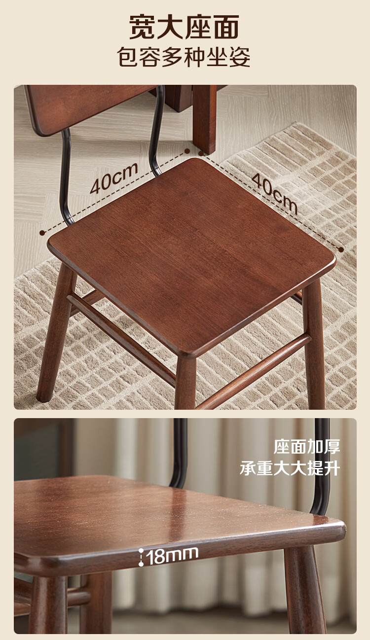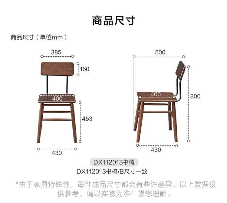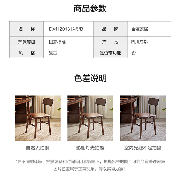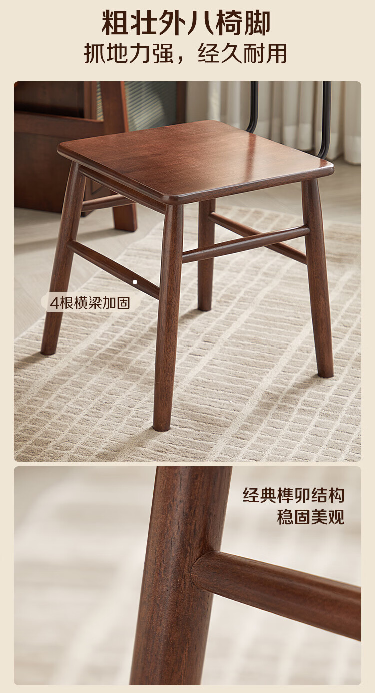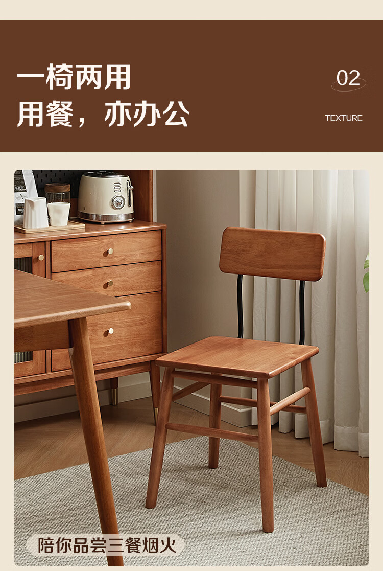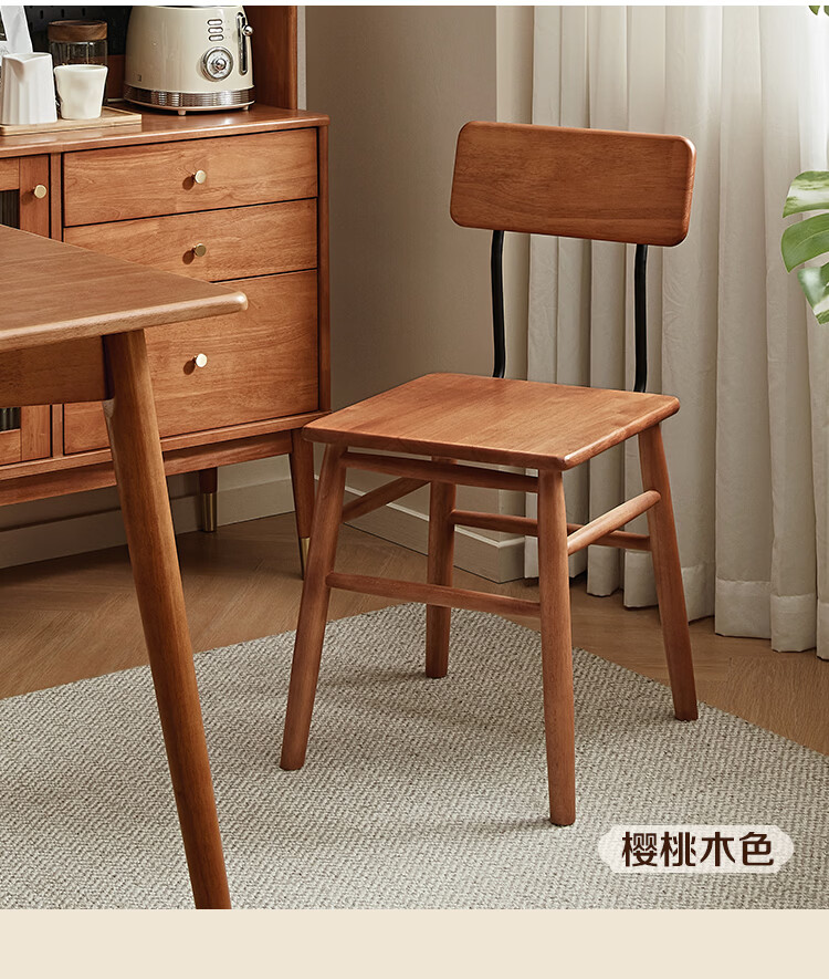 全友家居复古实木椅子中古风2026新款凳子带靠背办公书桌椅餐椅家用KD 【胡桃色】书椅