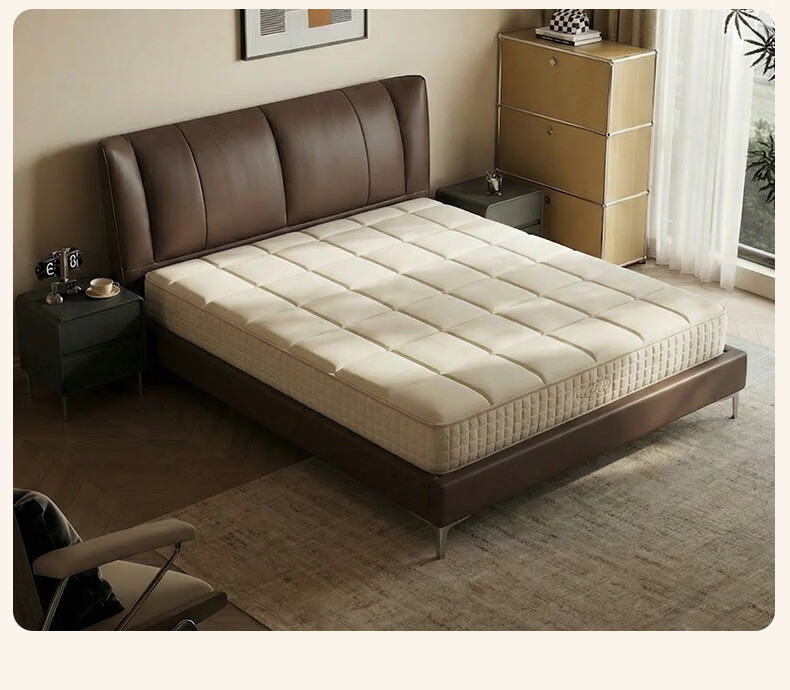 CBD家居现代简约真皮软包床双人主卧大床奶油风婚床头层牛皮甜心悬浮 甜心悬浮-奶油白单床 卷帘排骨架 1500*2000