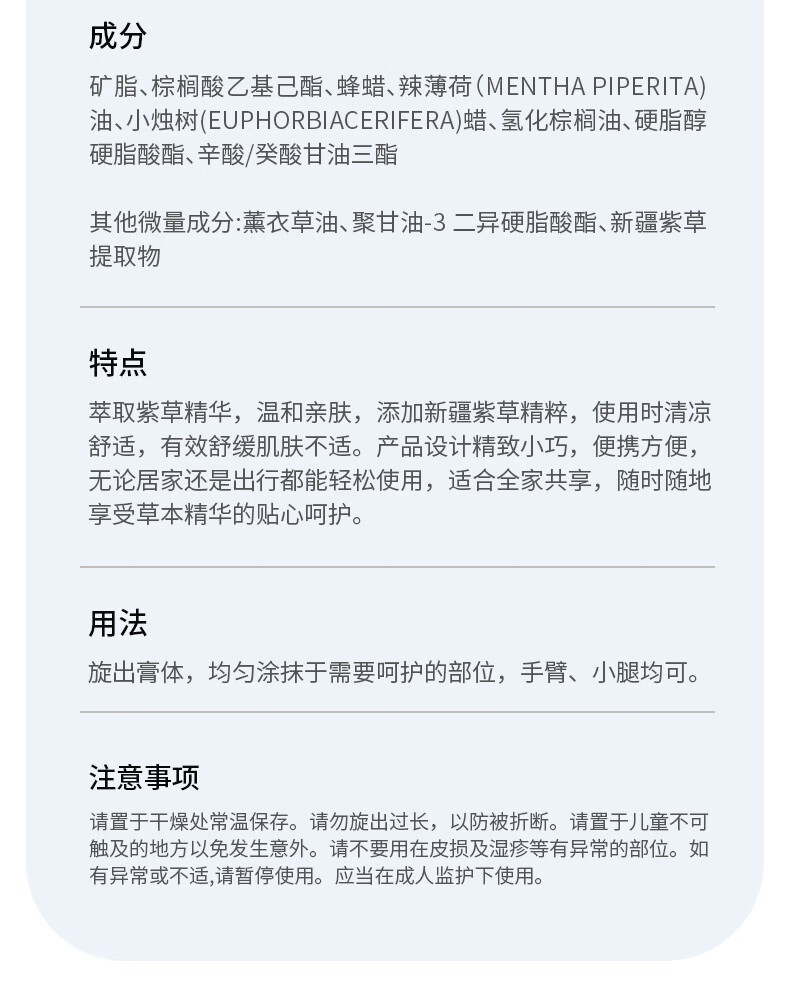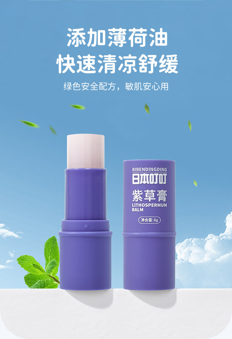 日本叮叮婴儿童舒缓紫草膏6g*3草本植物舒缓膏不黏腻宝宝清凉神器便携棒