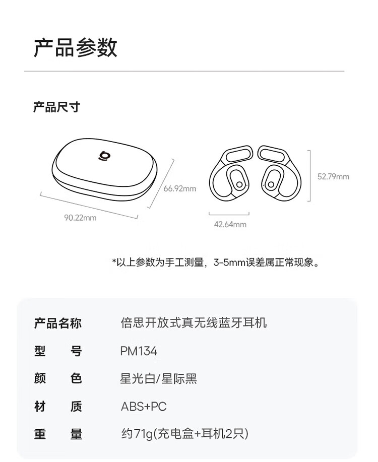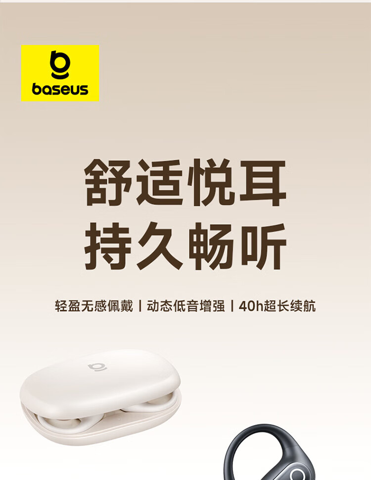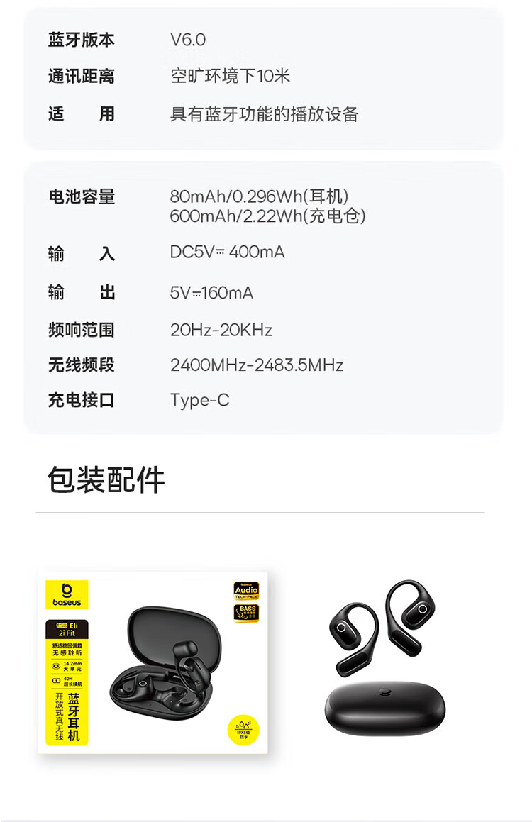 倍思(BASEUS)Eli 2i Fit 开放式骨传导概念蓝牙耳机无线不入耳挂耳式运动跑步长续航通话降噪适用苹果跨年礼物 【舒适贴耳+金标重低音】星耀黑