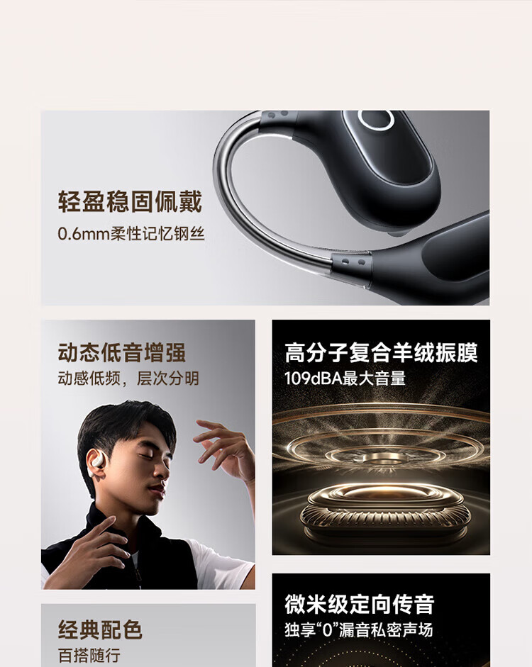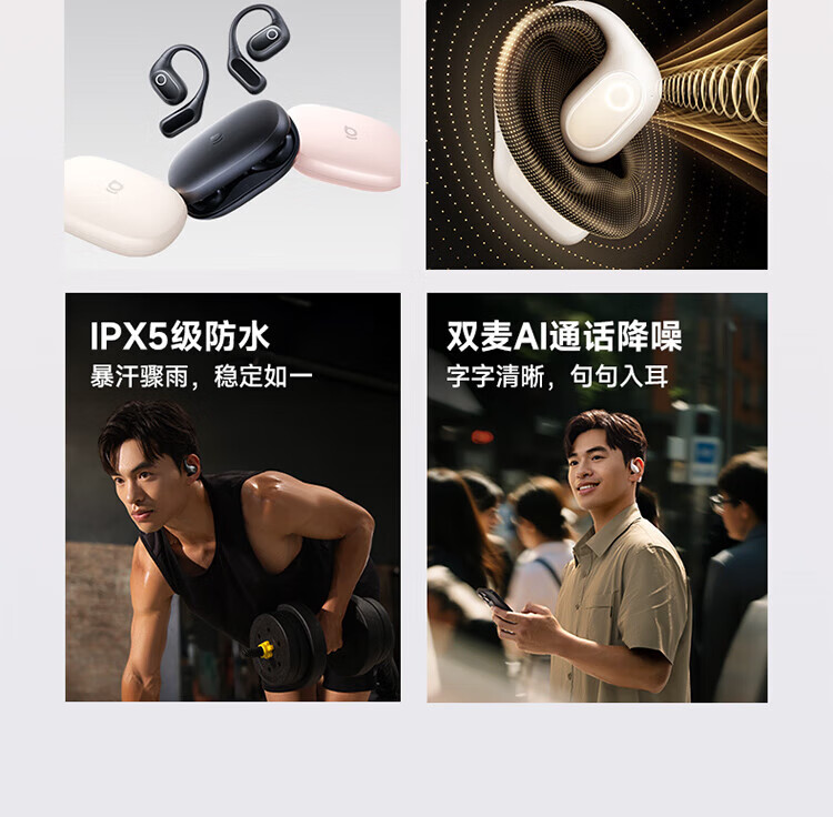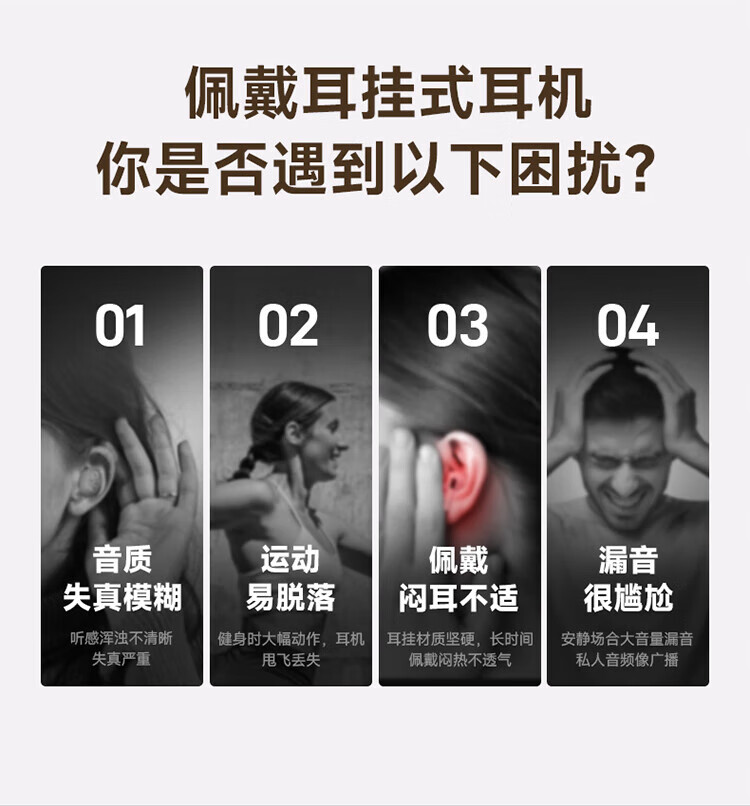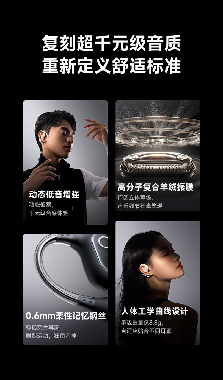 鑫羽音【甄选直发】蓝牙耳机夹耳式骨传导2025新款无线运动不入耳跑步挂 黑色【HiFi环绕音+持久续航】 【手机通用】蓝牙5.4-单耳
