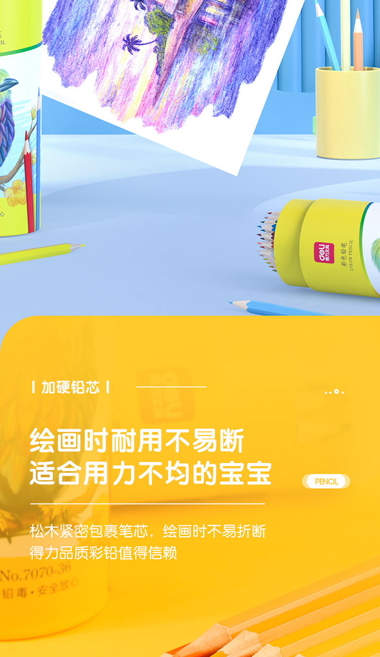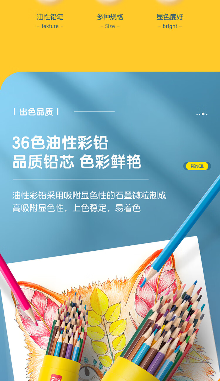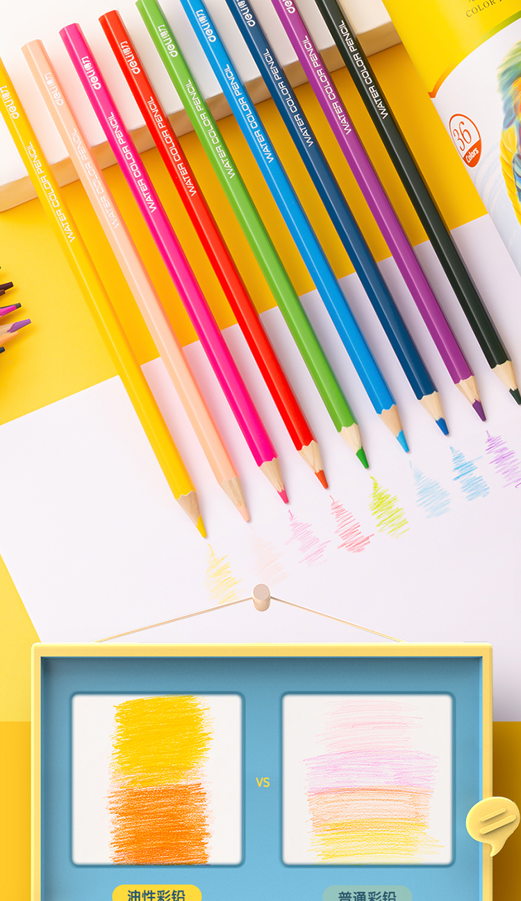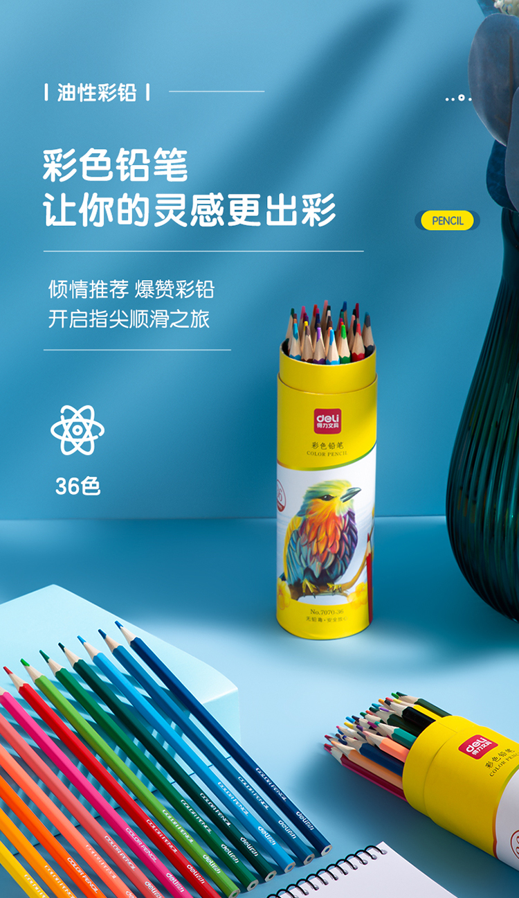得力(deli)36色油性彩色铅笔原木六角杆彩色铅笔学生涂色专业美术画笔套装文具女孩儿童礼物涂鸦HM455-36彩笔