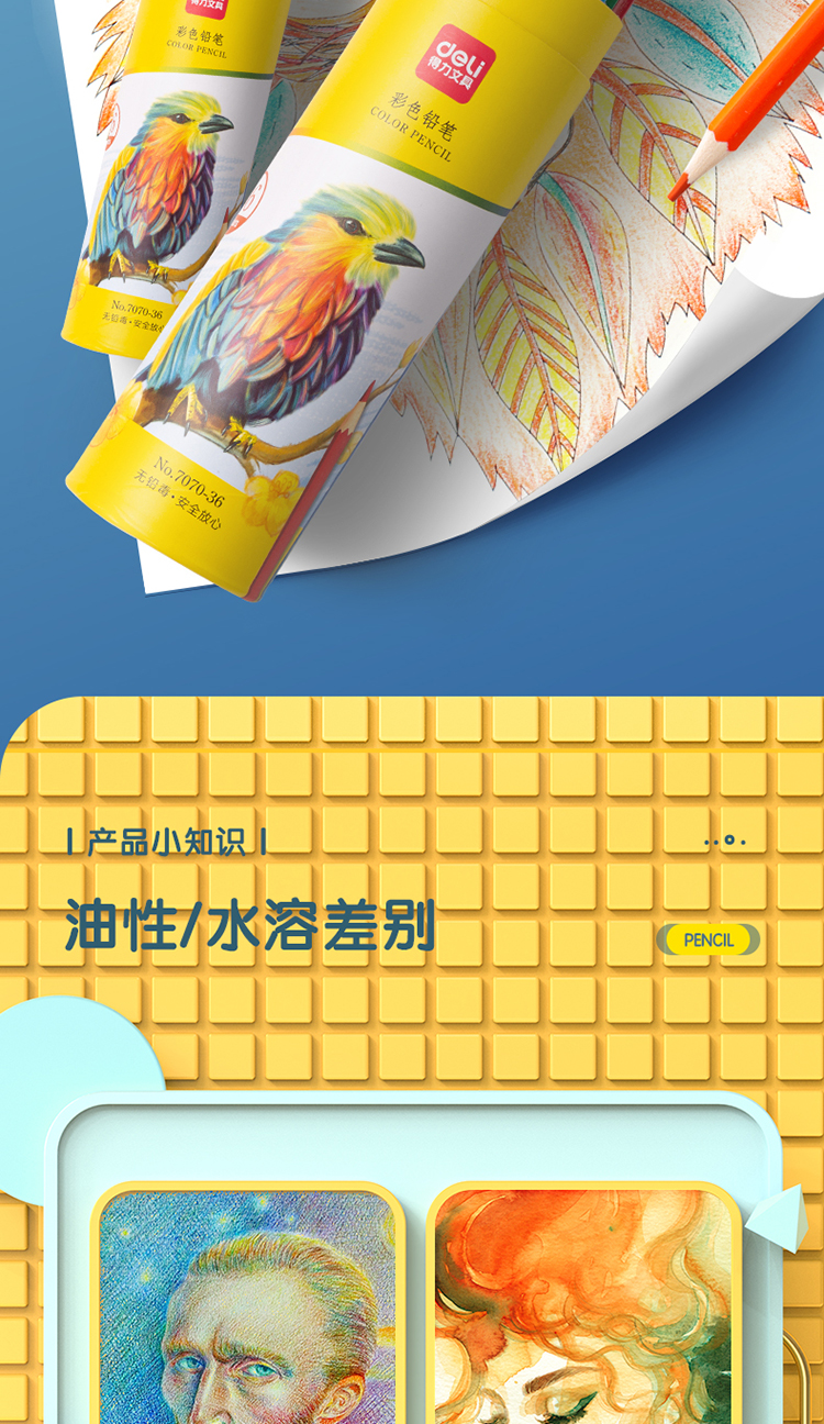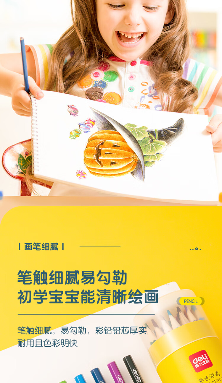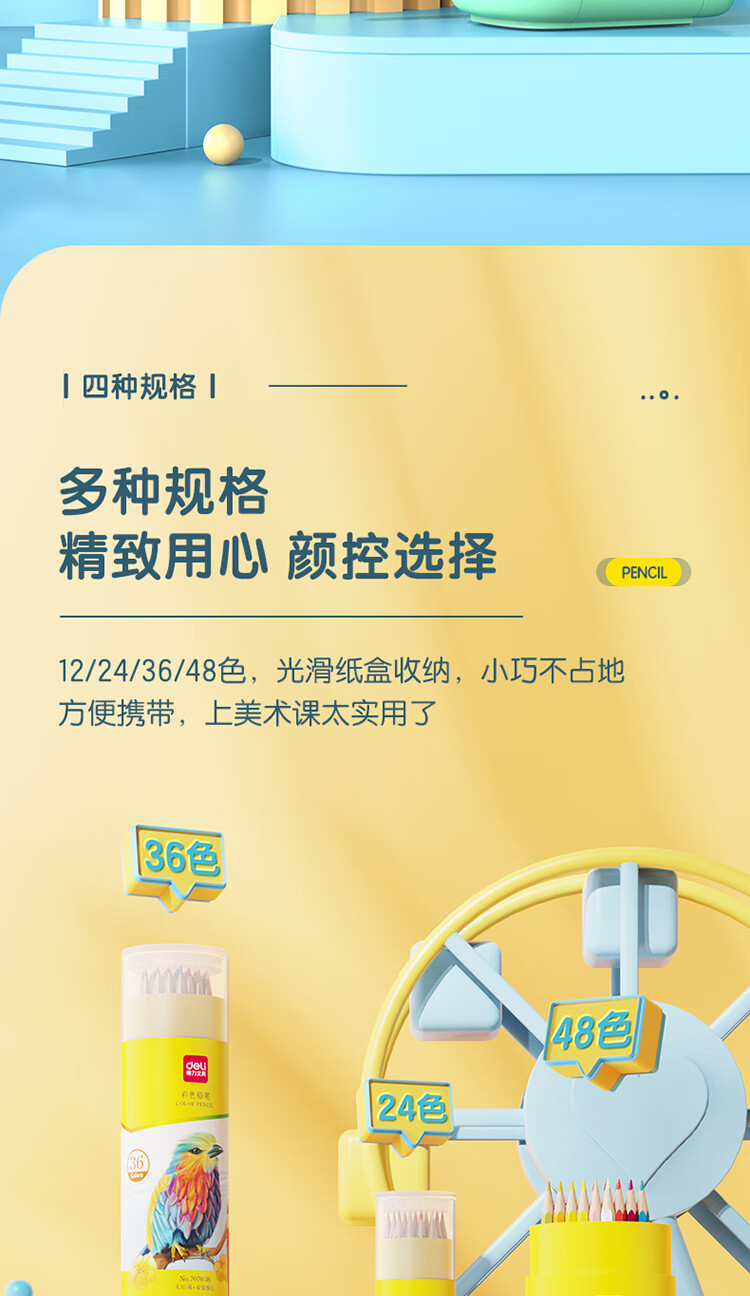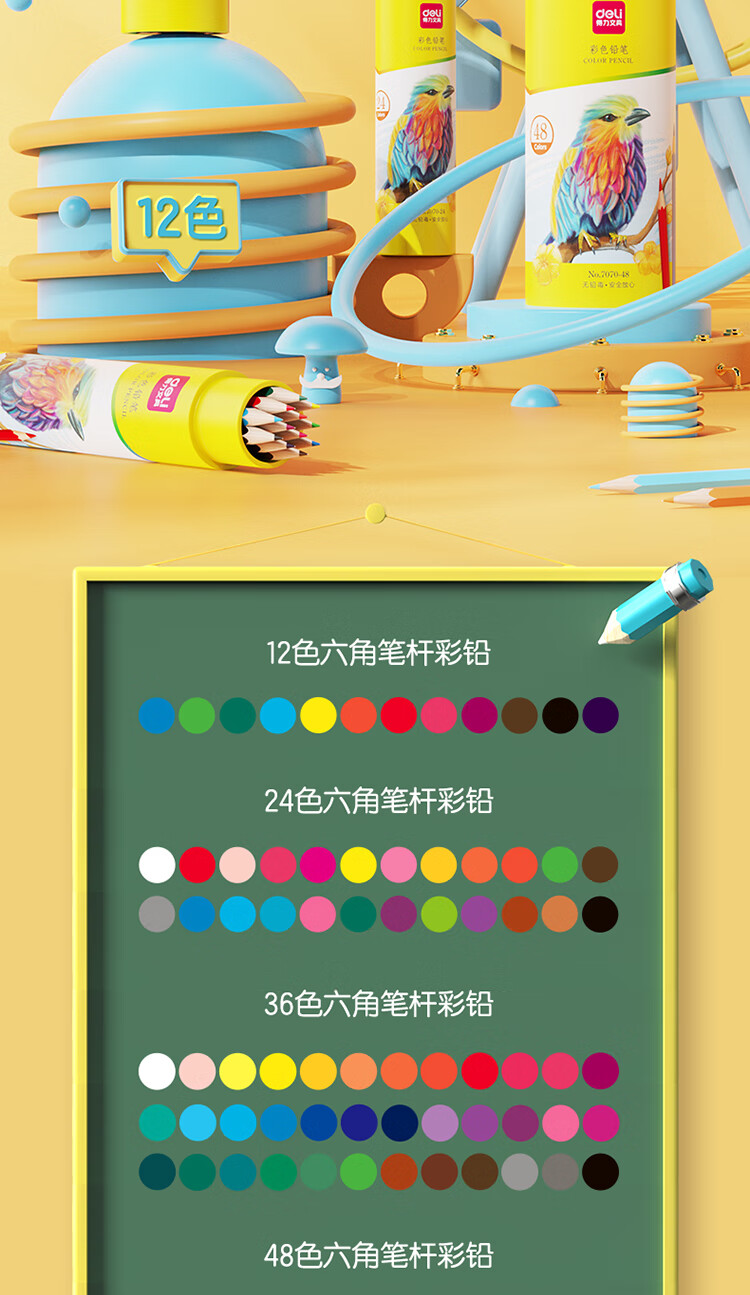 得力(deli)36色油性彩色铅笔原木六角杆彩色铅笔学生涂色专业美术画笔套装文具女孩儿童礼物涂鸦HM455-36彩笔