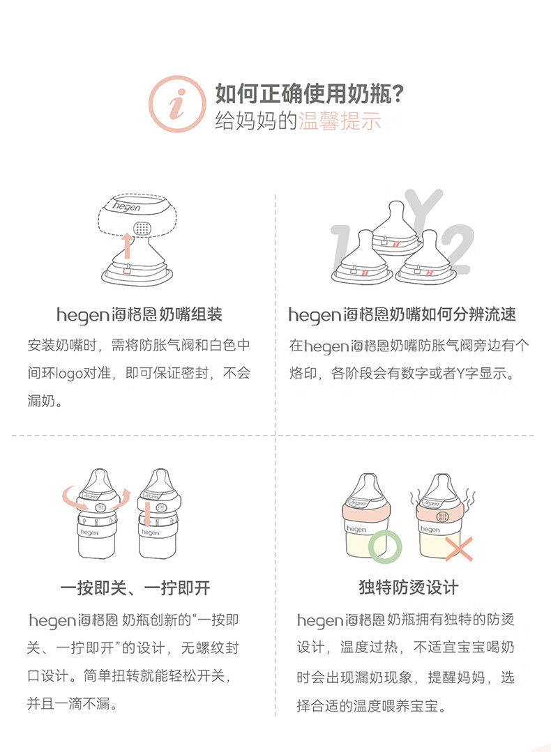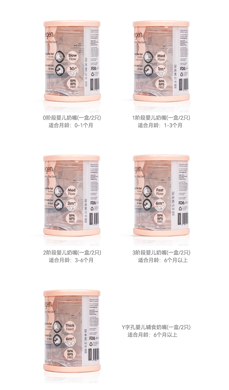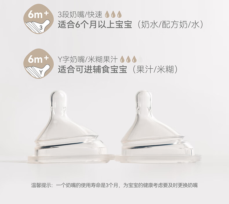 HEGEN海格恩新生儿奶嘴0-6个月以上超软硅胶仿母乳偏心防胀气婴儿奶嘴 【6-9个月】3阶圆孔奶嘴- 2只装