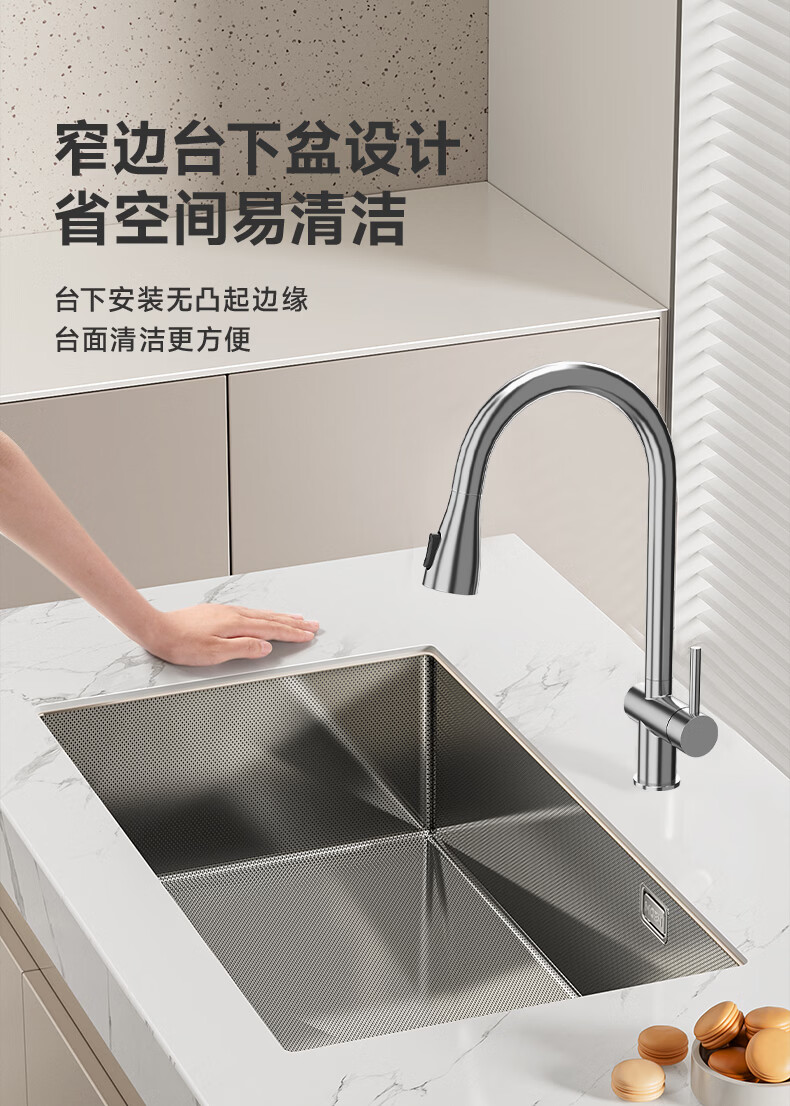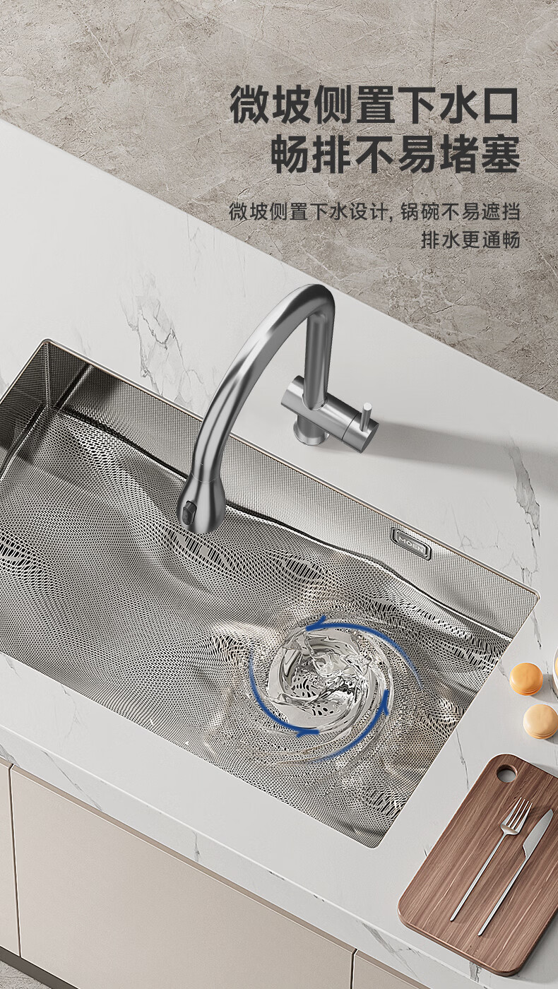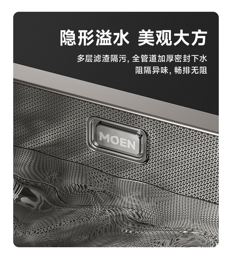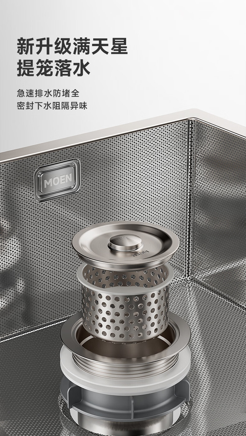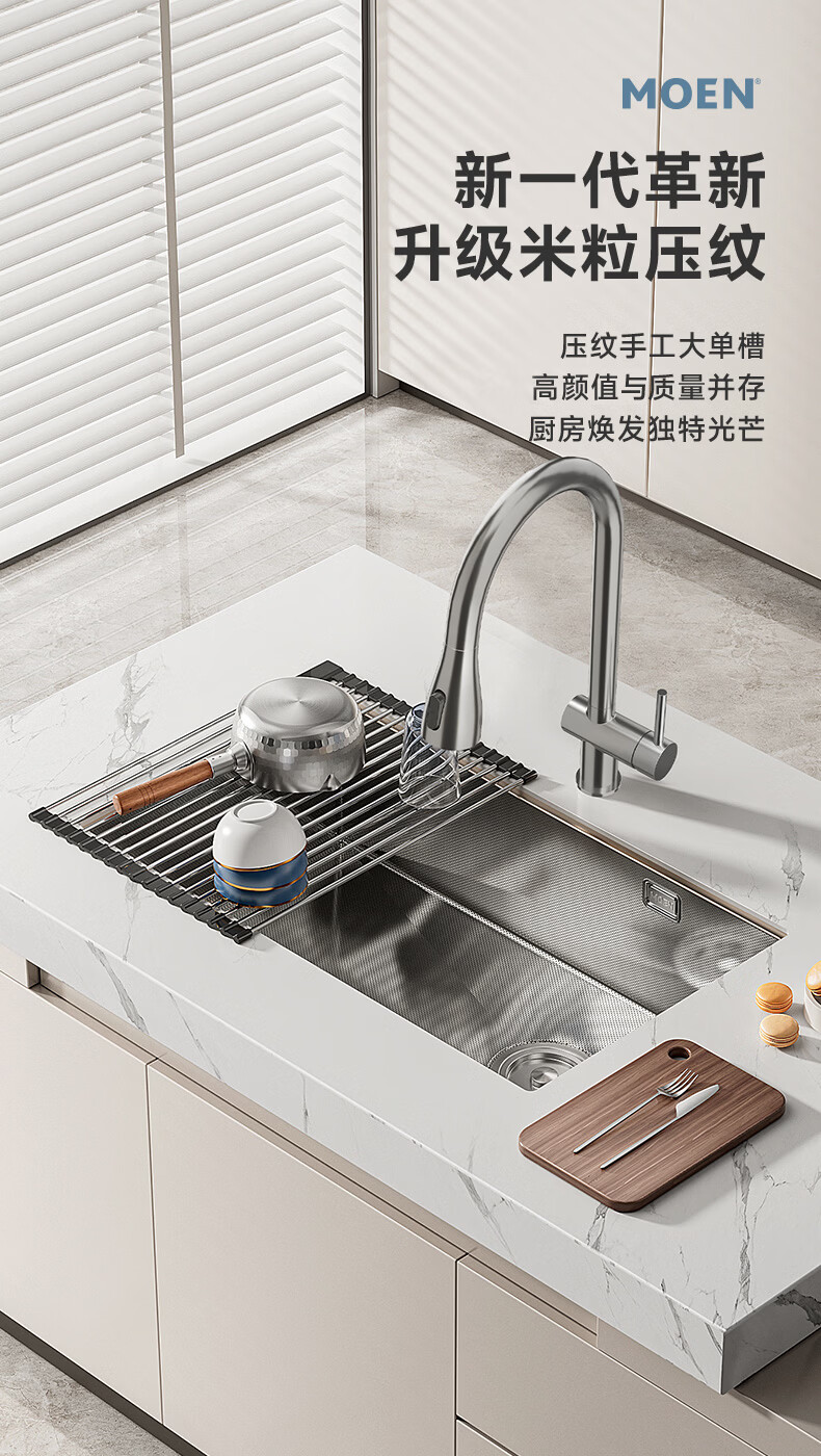 摩恩(MOEN)大米粒水槽套装304不锈钢大单槽洗菜盆大单槽米粒压纹手工槽 大米粒700毫米水槽套装(防指纹|双出水|抽拉龙头)