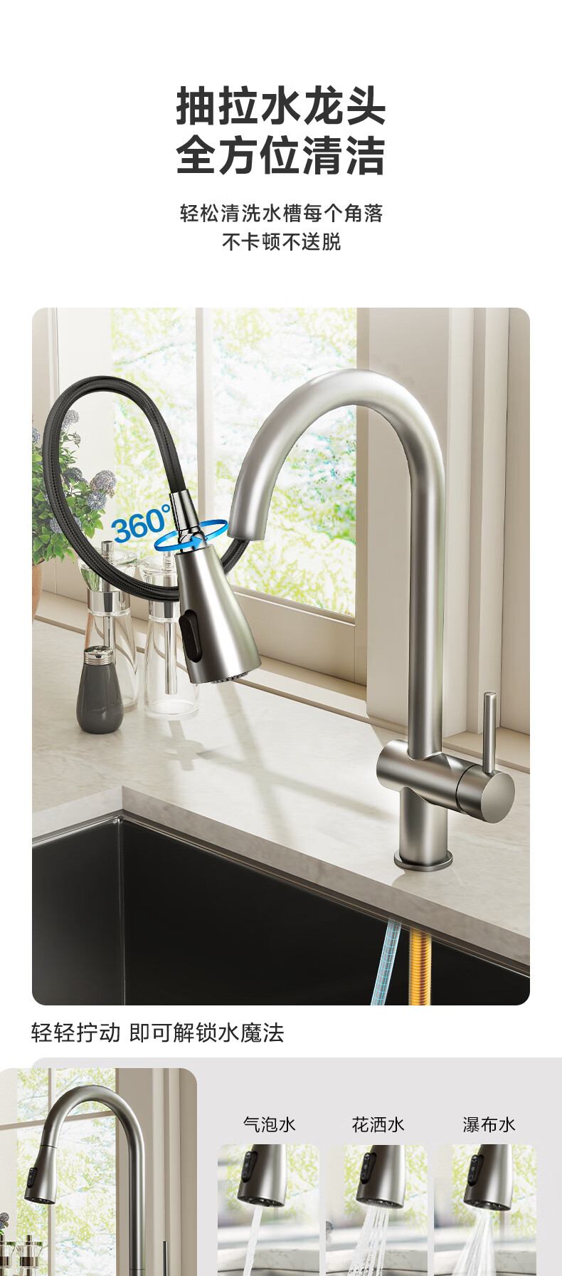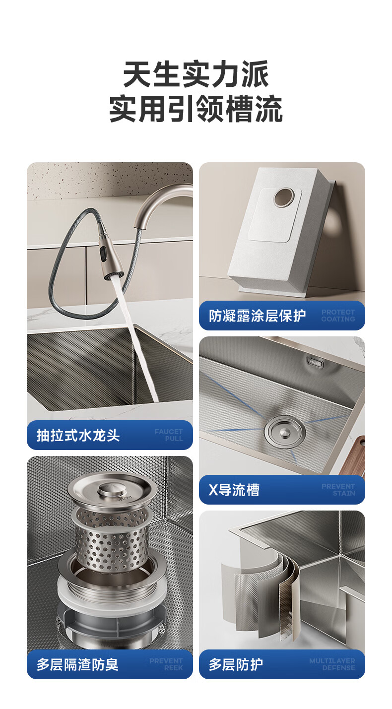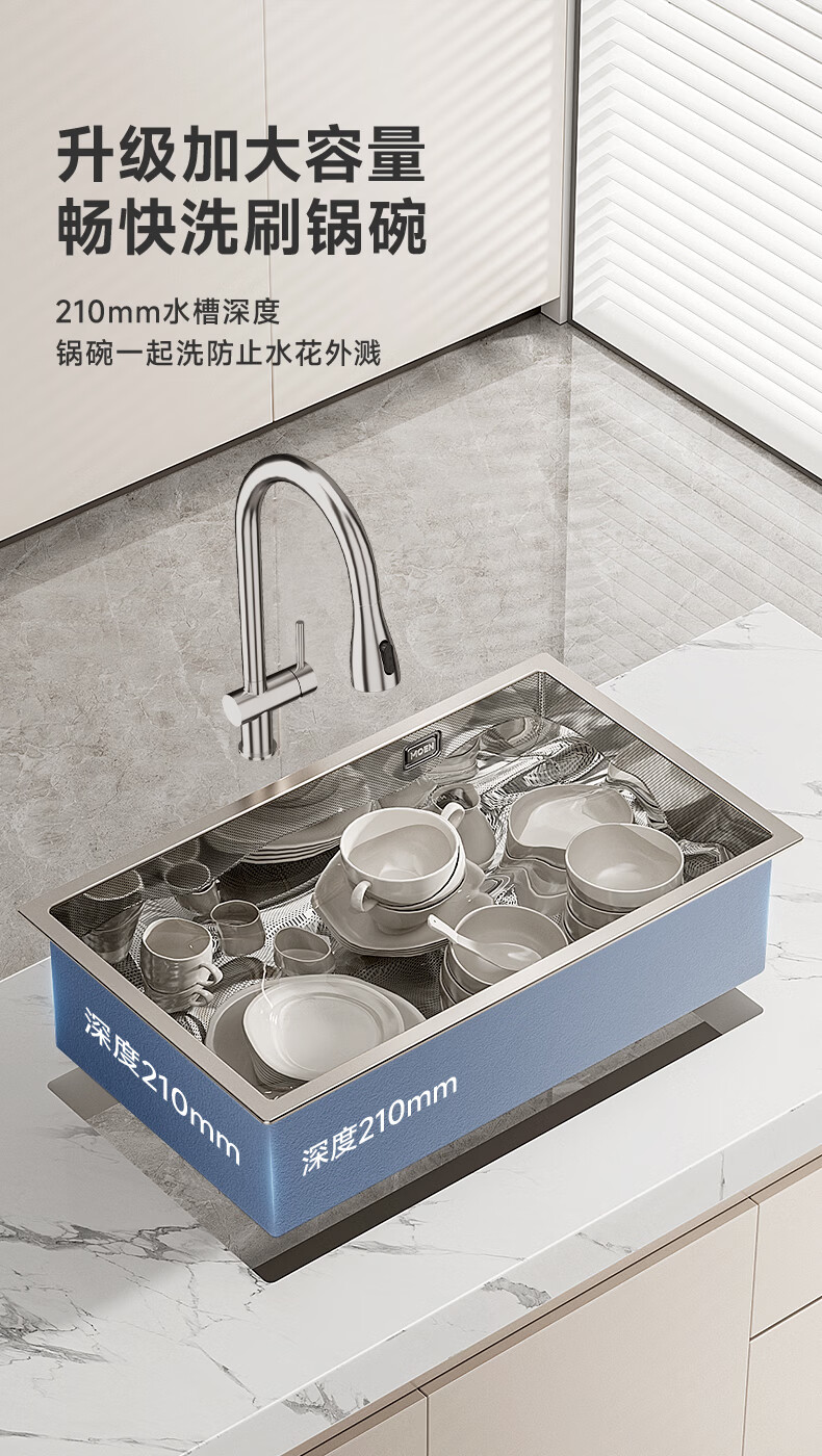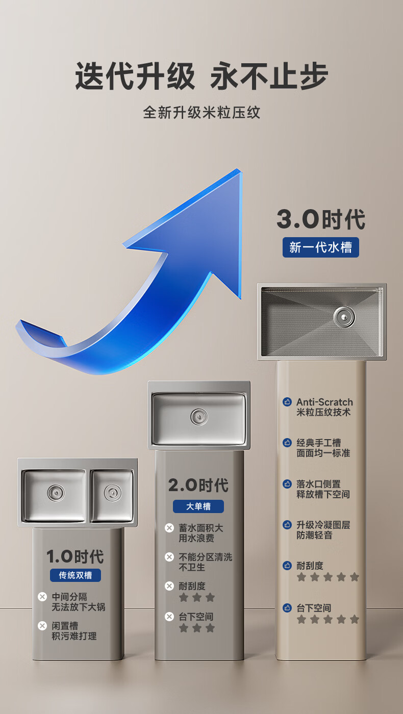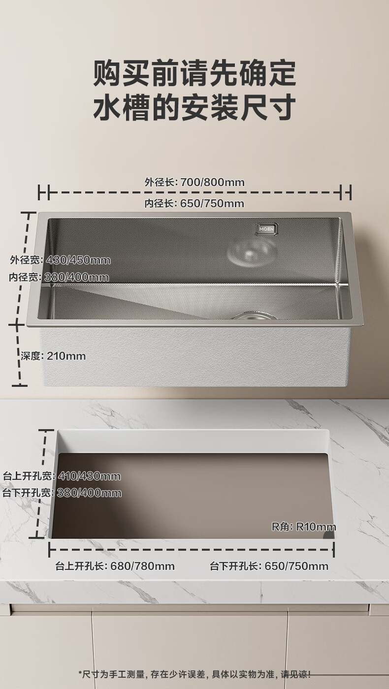 摩恩(MOEN)大米粒水槽套装304不锈钢大单槽洗菜盆大单槽米粒压纹手工槽 大米粒700毫米水槽套装(防指纹|双出水|抽拉龙头)