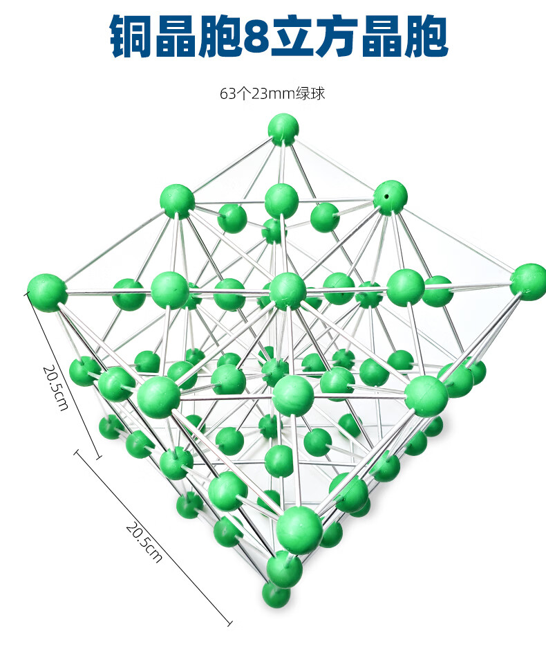 可普(kepu)分子有机结构模型大号铜晶胞8个立方体演示教具金属链接杆一体式立体晶胞模型23mm原子球高中大学