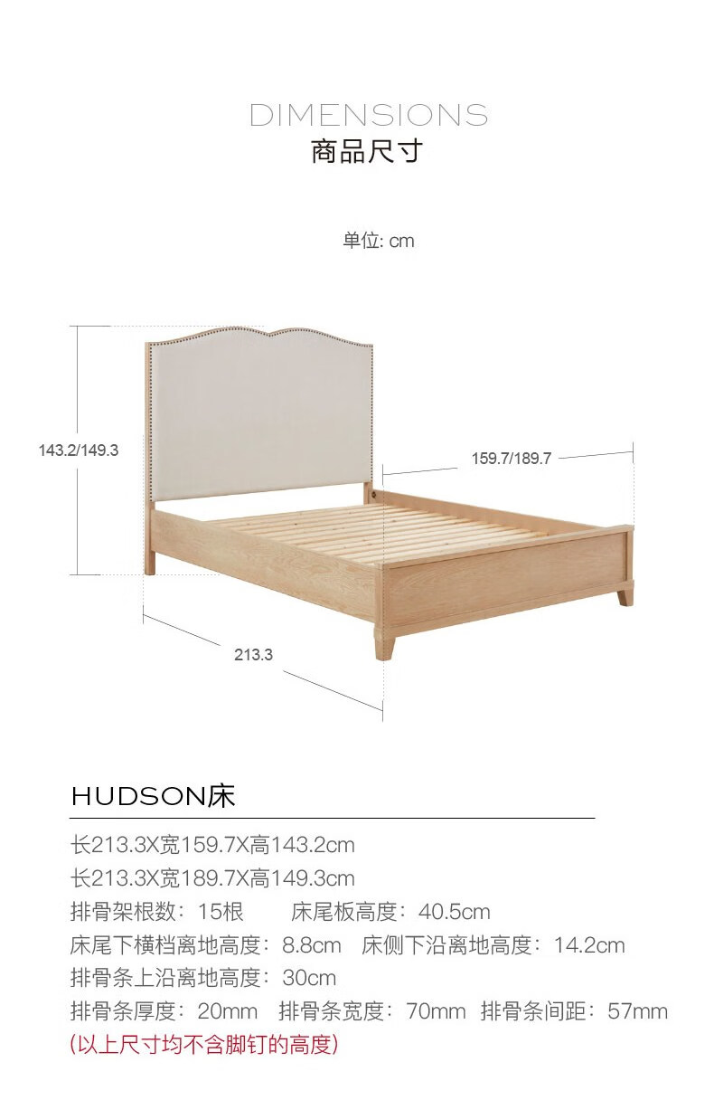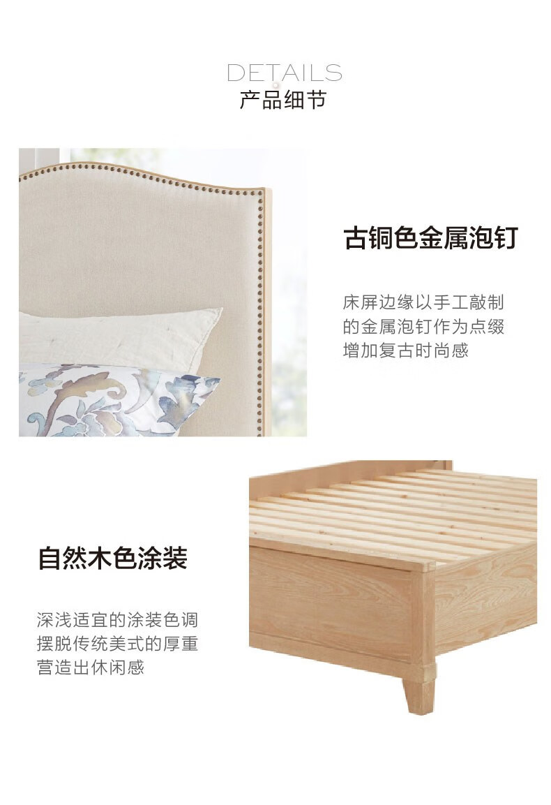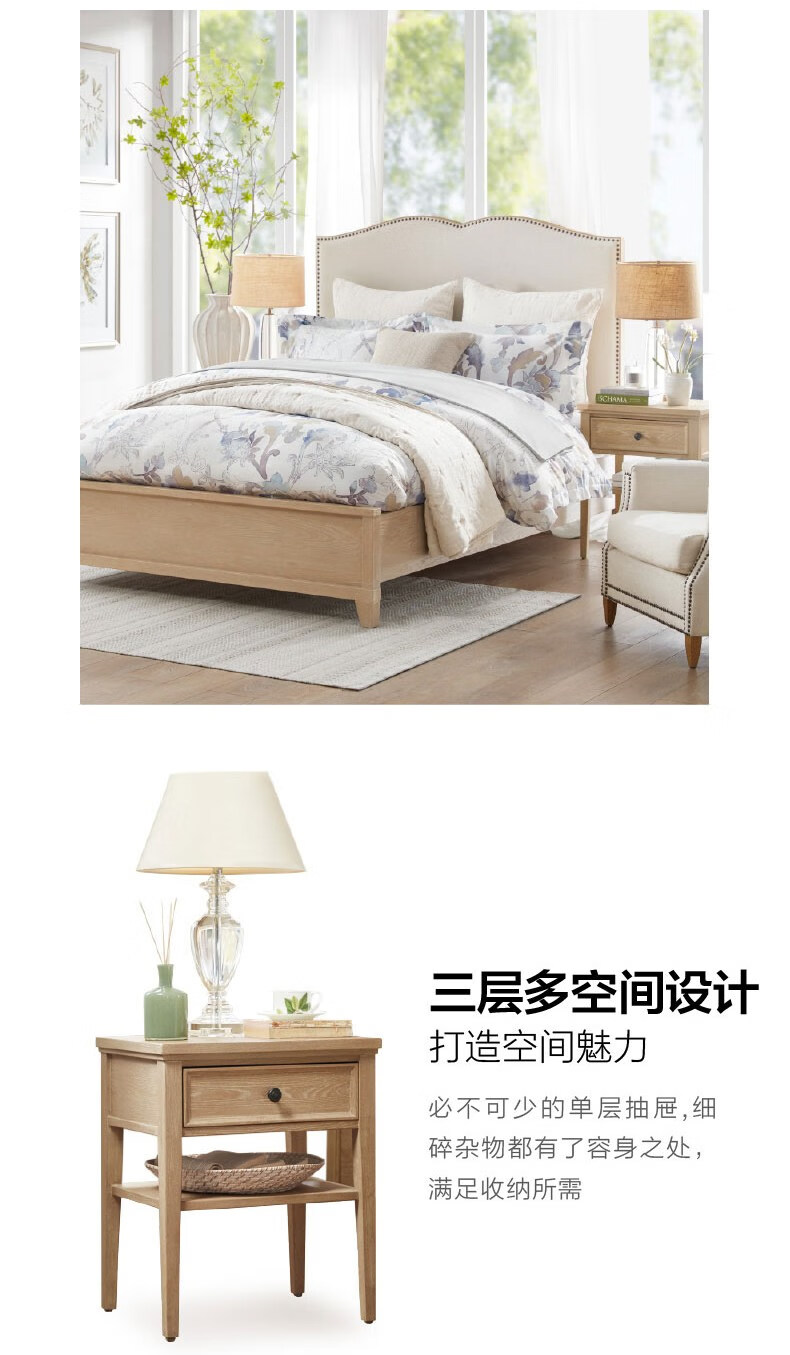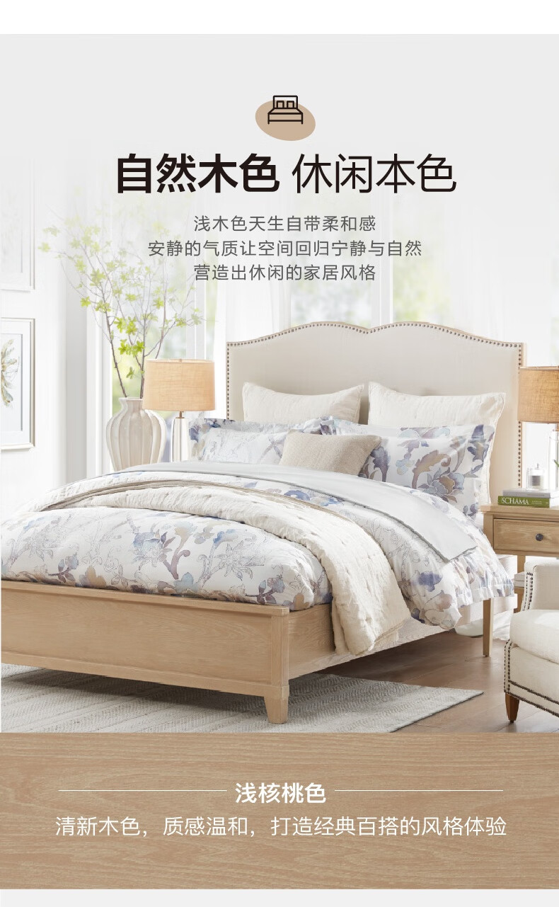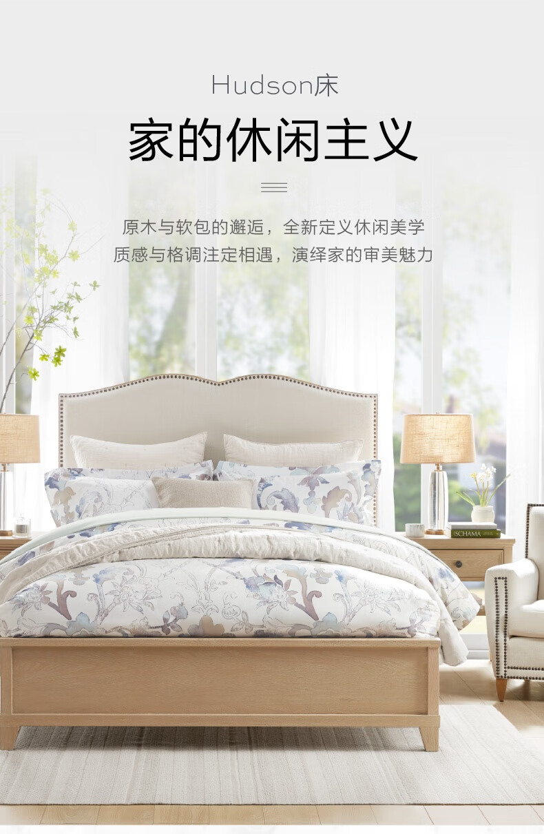 Harbor House【政府补贴】经典美式原木风大圆床卧室双人床主卧床实木床Hudson 1.5米【进口榆木框架】双人床