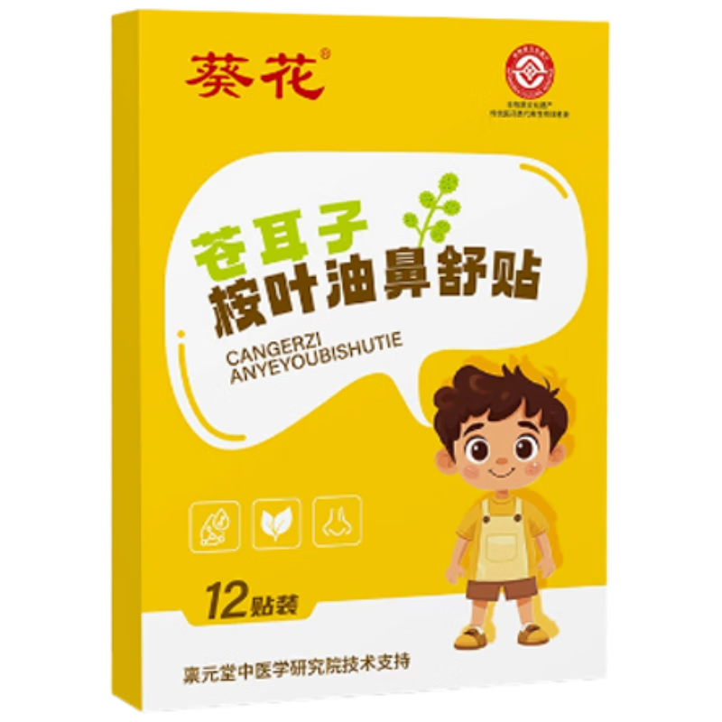 葵花苍耳子鼻炎贴舒桉叶油鼻炎涕塞痒儿童通气鼻贴神器精油流涕药12贴