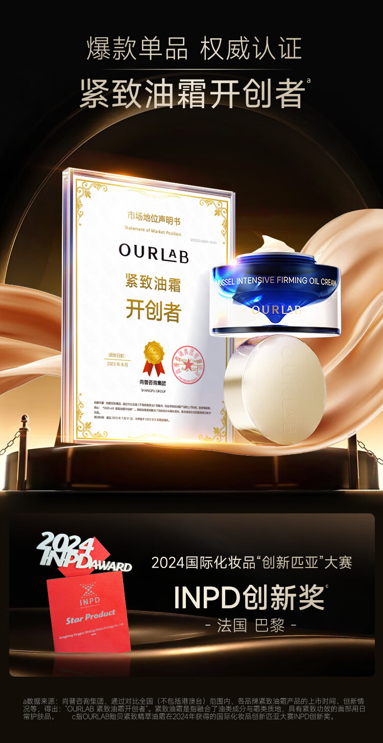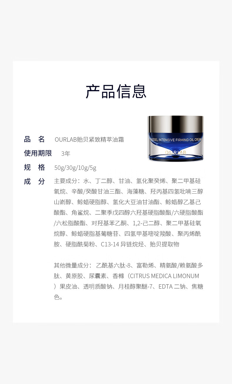 OURLAB【张馨予同款】贻贝紧致油霜淡纹修护抗皱面霜护肤品礼物送女生