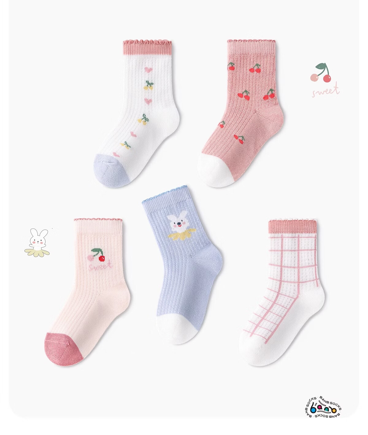 斑比童袜女童袜子春夏季薄款网眼中大童宝宝春秋款无骨棉袜 BB2408 春夏款儿童袜子 5双 3-5岁 建议脚码21-26码【16-18】
