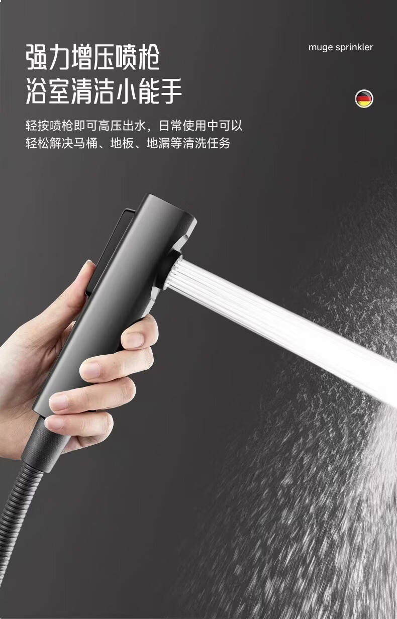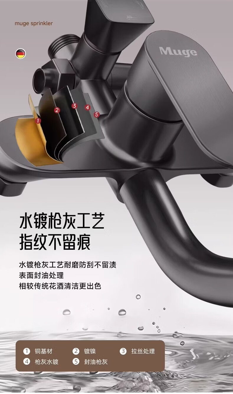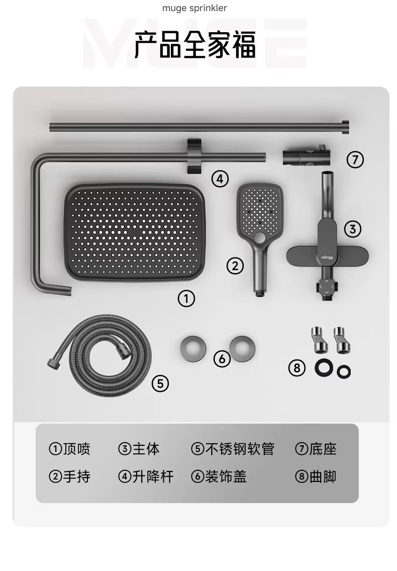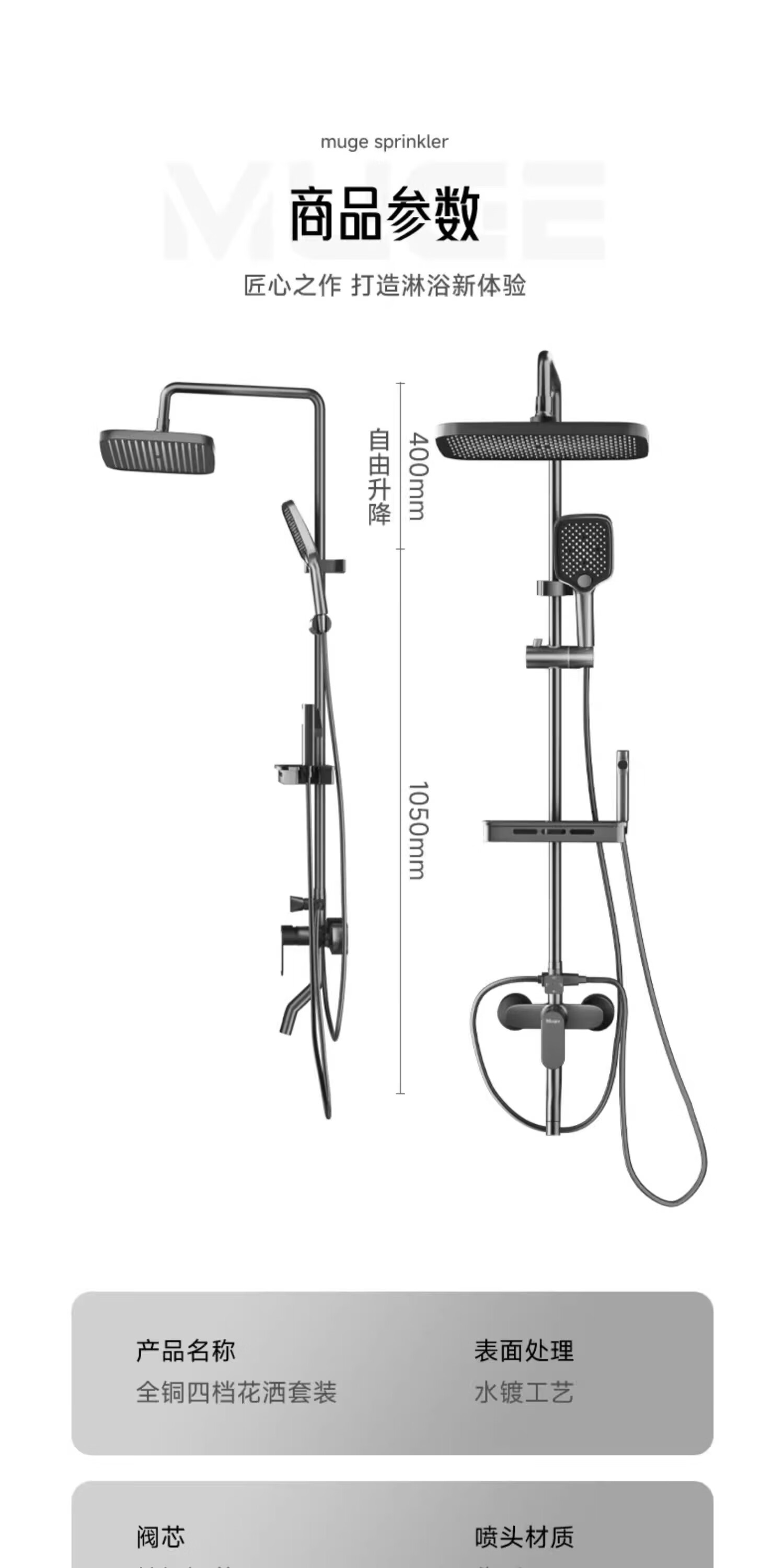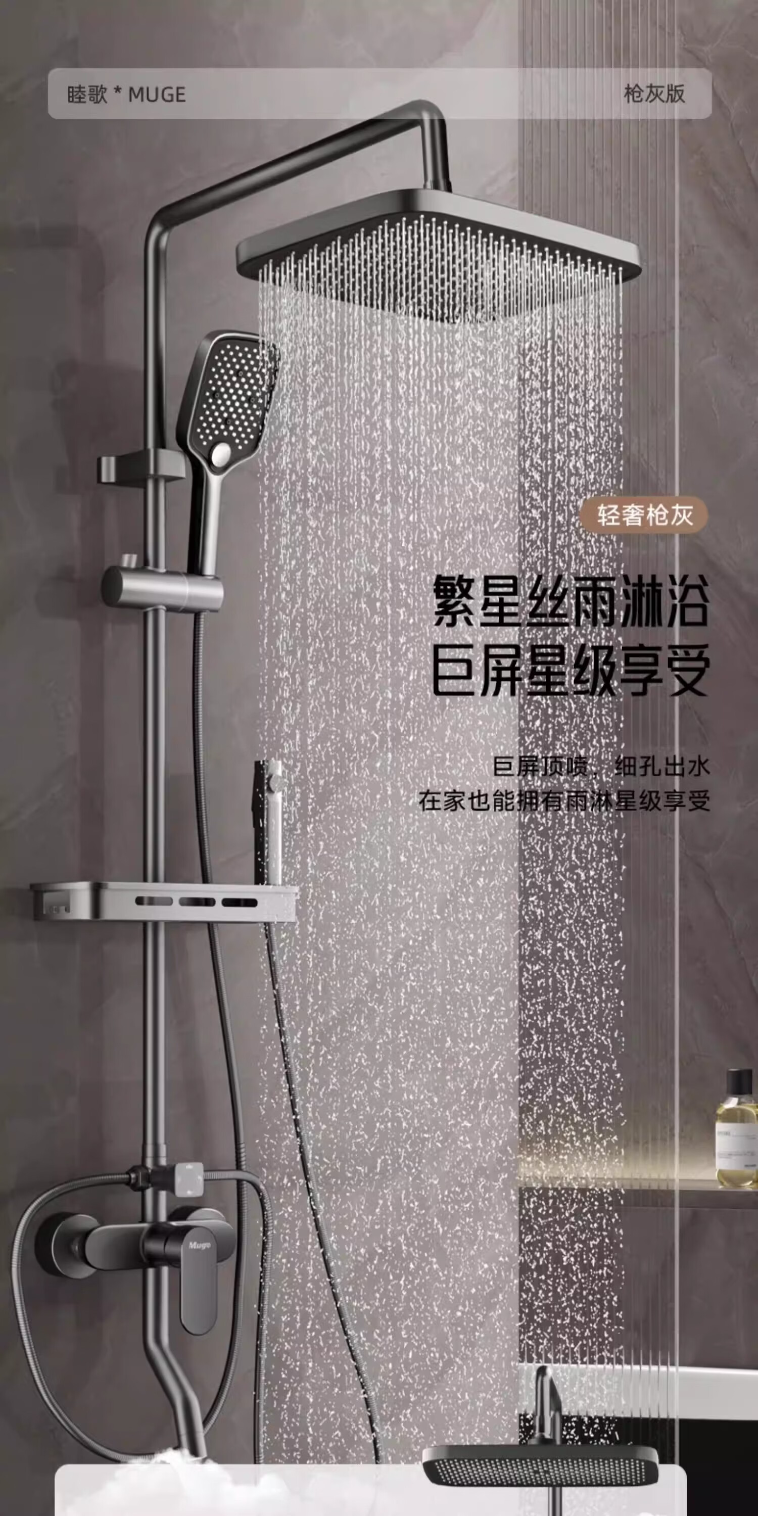 睦歌(MUGE)花洒淋浴套装全铜卫浴花洒全套一体式增压花洒喷头浴室淋浴器 【枪灰色】四档调节圆形花洒套装