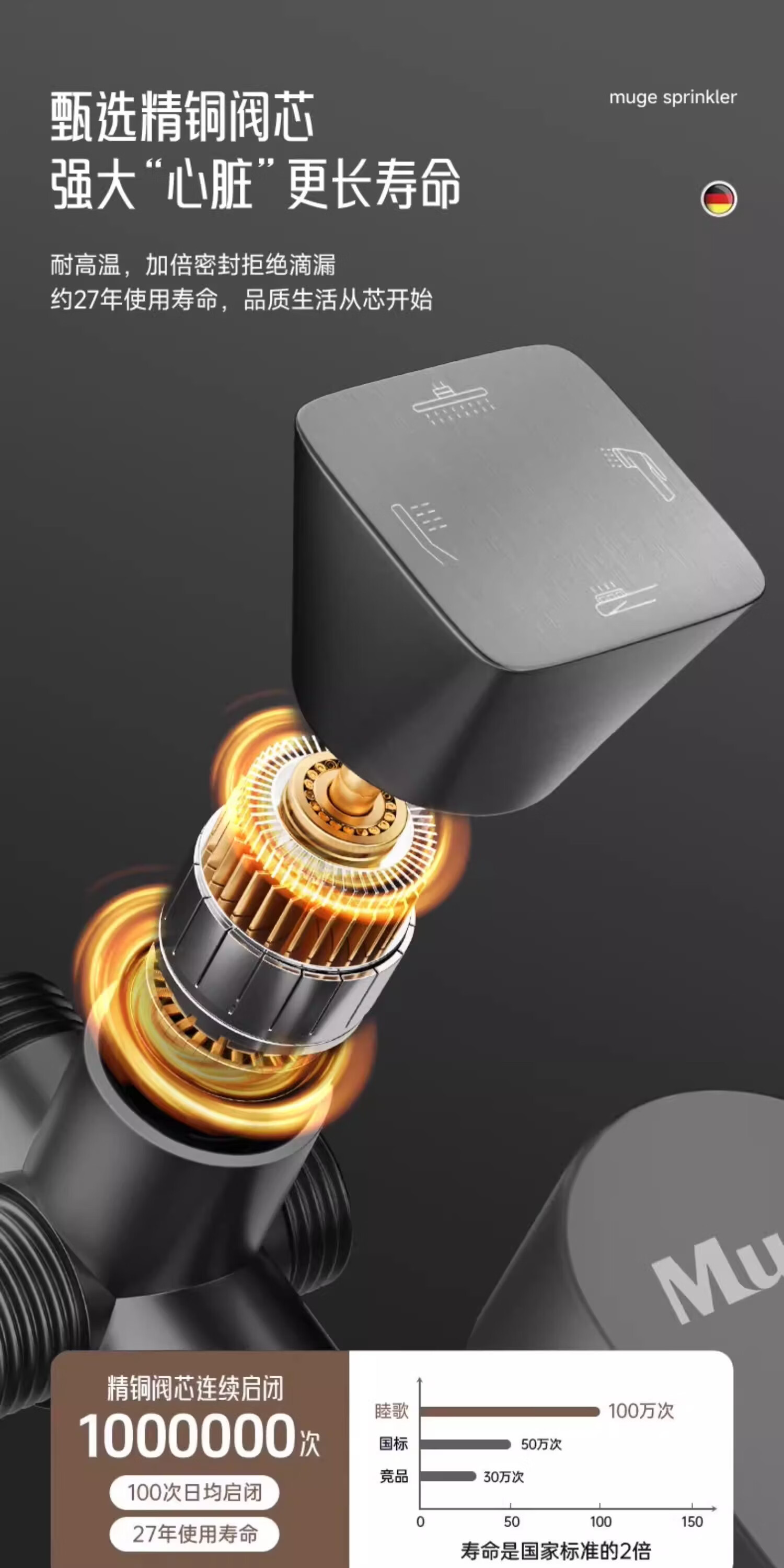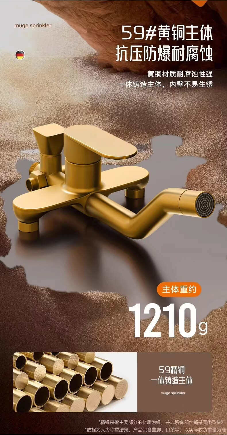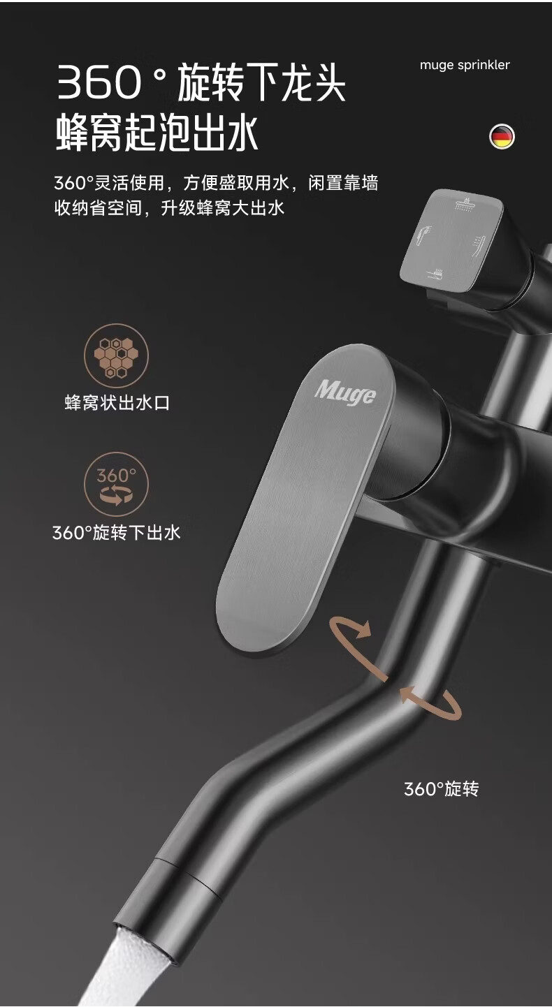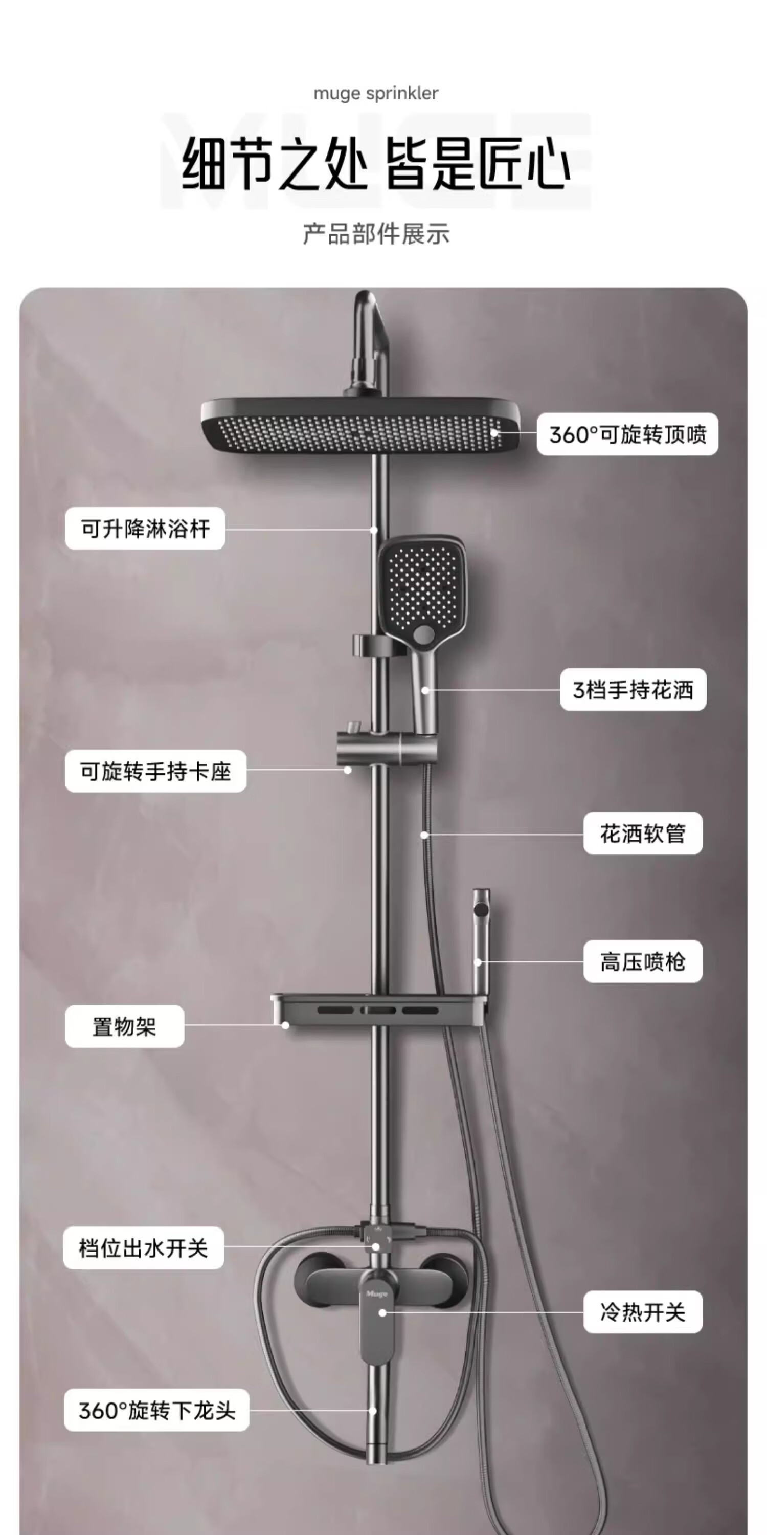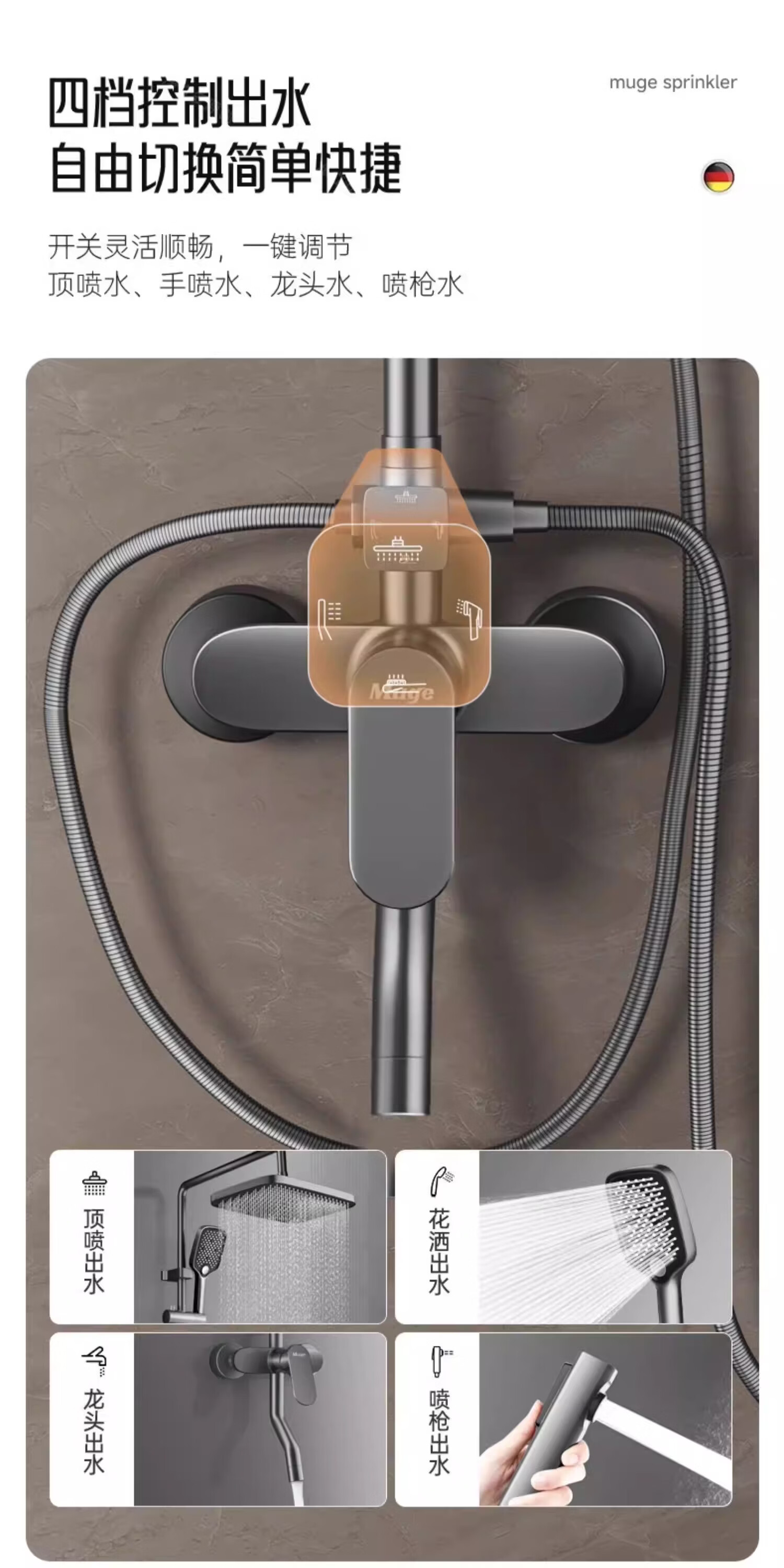 睦歌(MUGE)花洒淋浴套装全铜卫浴花洒全套一体式增压花洒喷头浴室淋浴器 【枪灰色】四档调节圆形花洒套装
