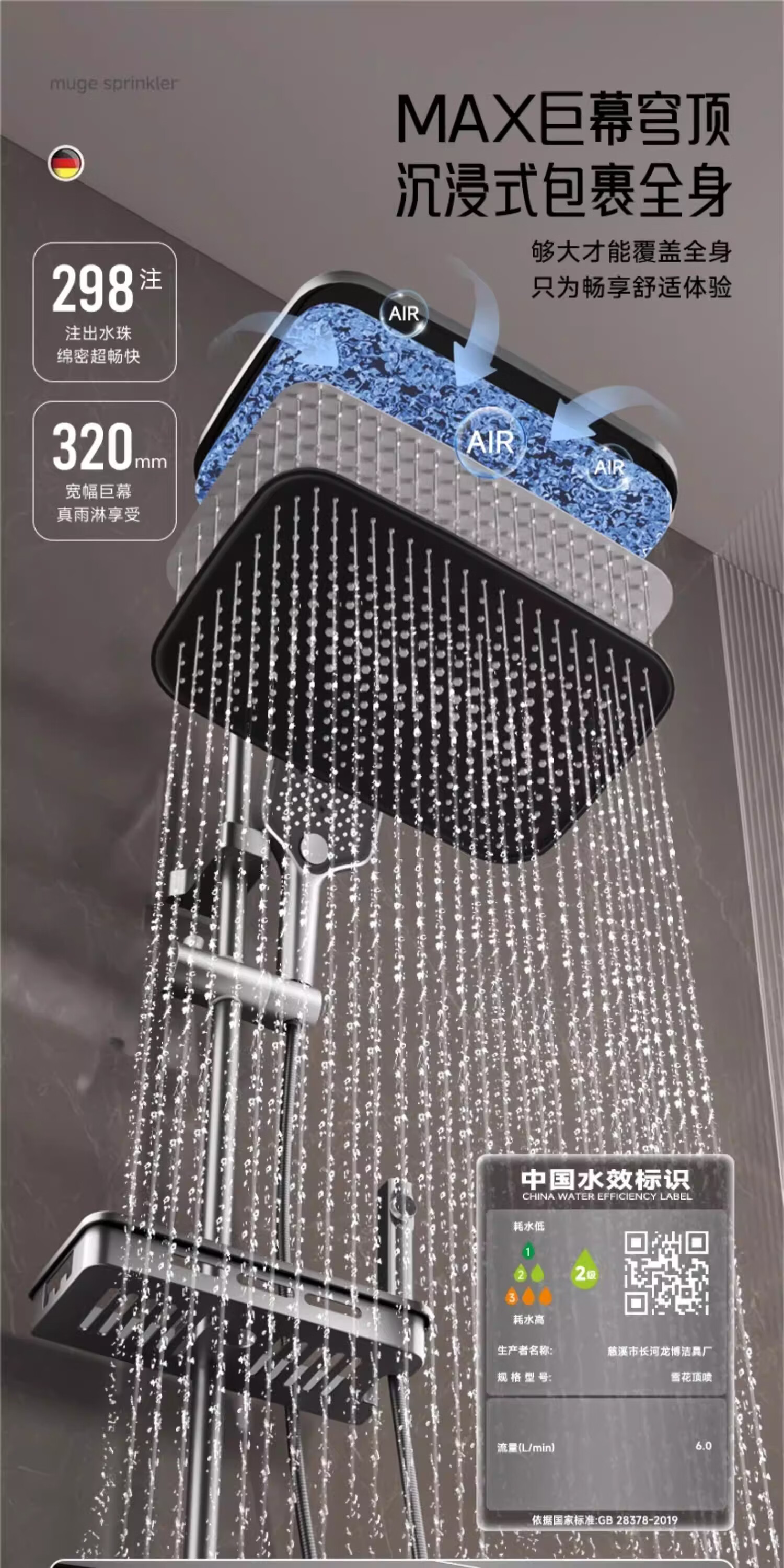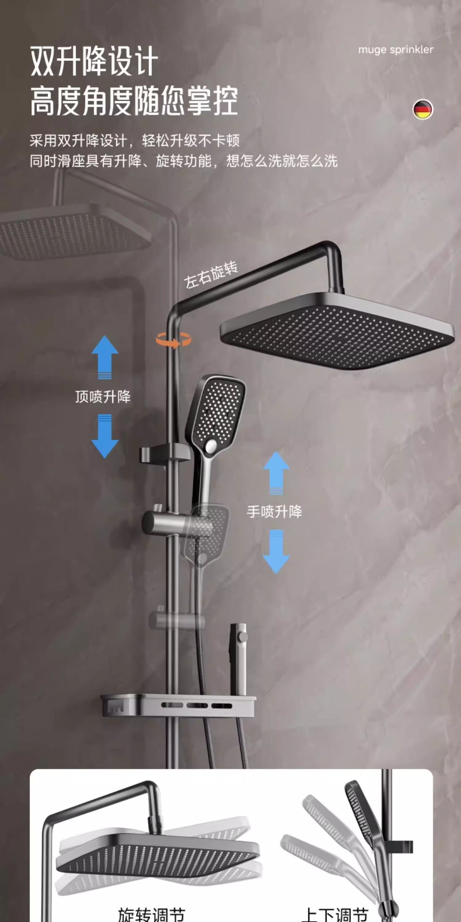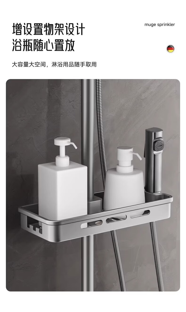 摩恩(MOEN)诺亚岩板置物雨淋组合 (ss.固定方杆,9寸圆顶喷) 诺亚岩板置物雨淋组合 (ss.固定方杆,9寸圆顶喷)