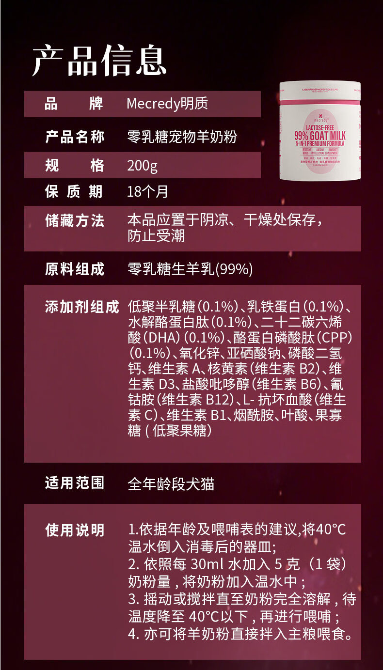 MECREDY明质宠物猫咪羊奶粉狗狗 幼猫犬0乳糖添加乳铁蛋白猫咪 新羊奶粉【200g】 同规格赠品不叠加