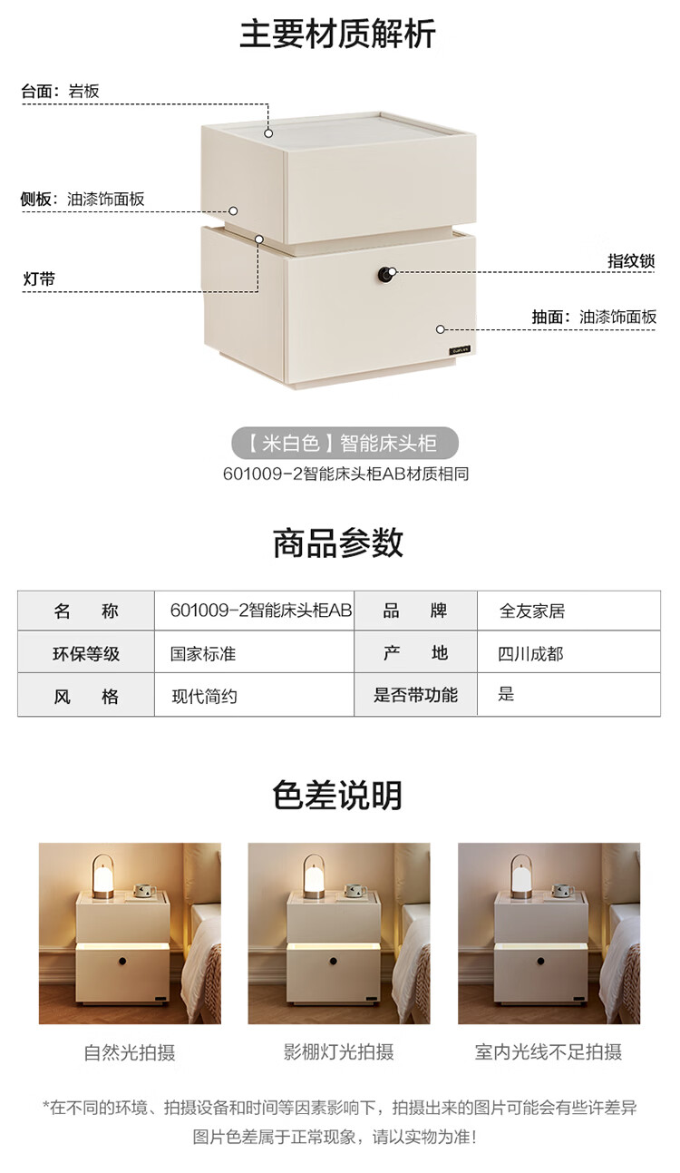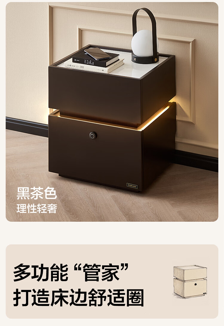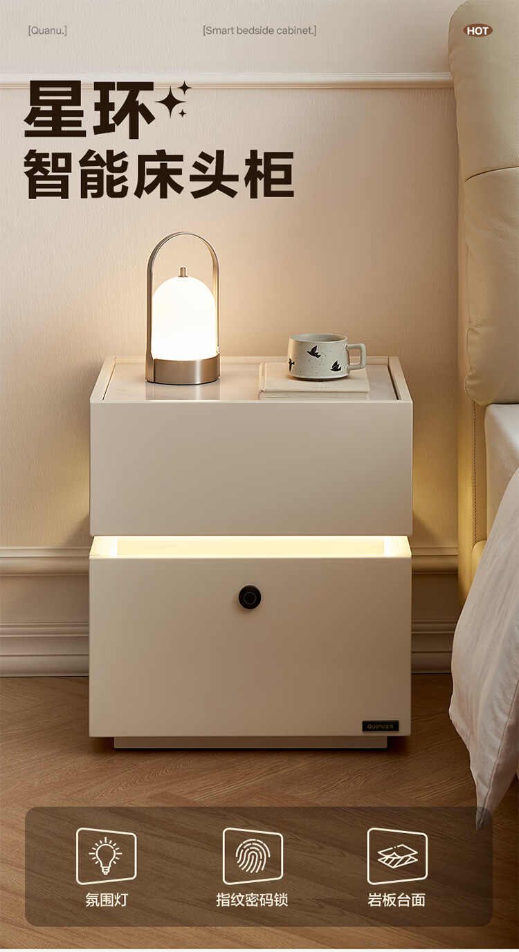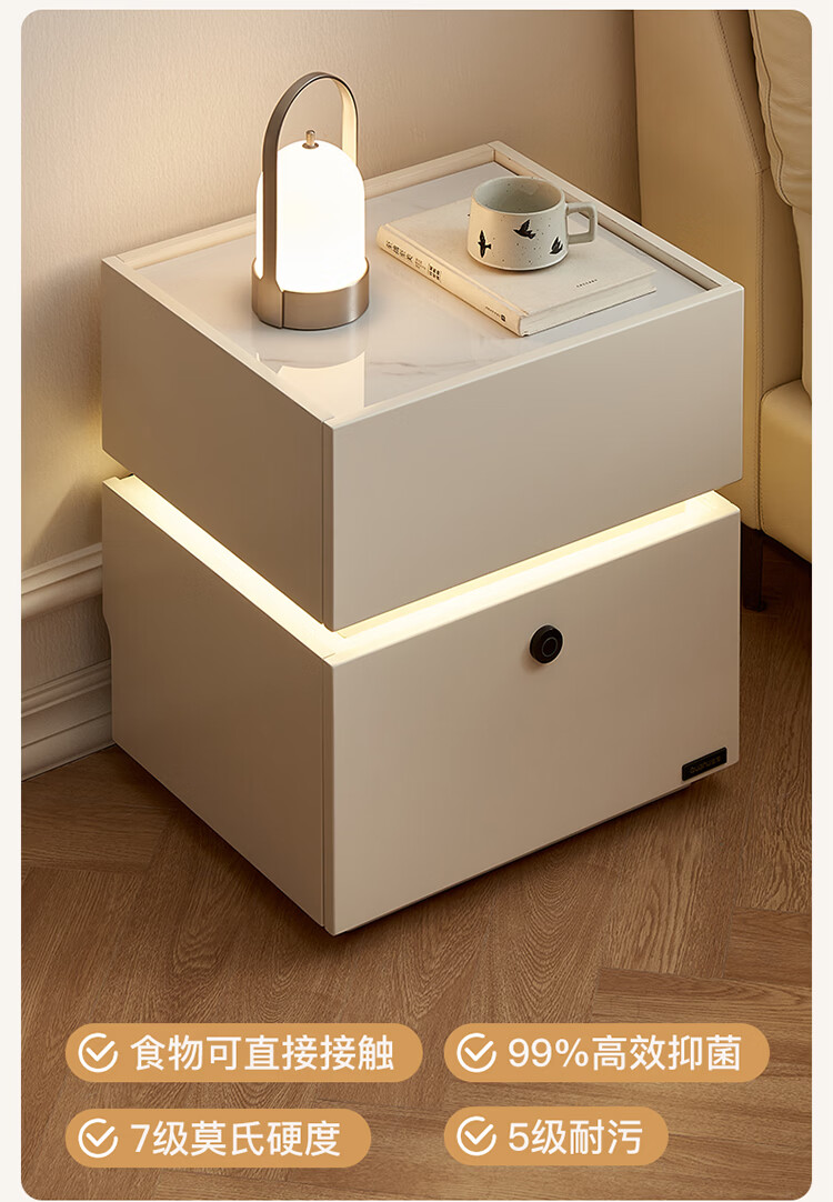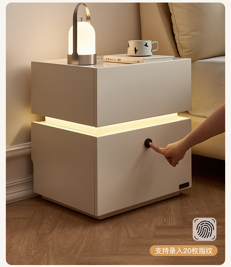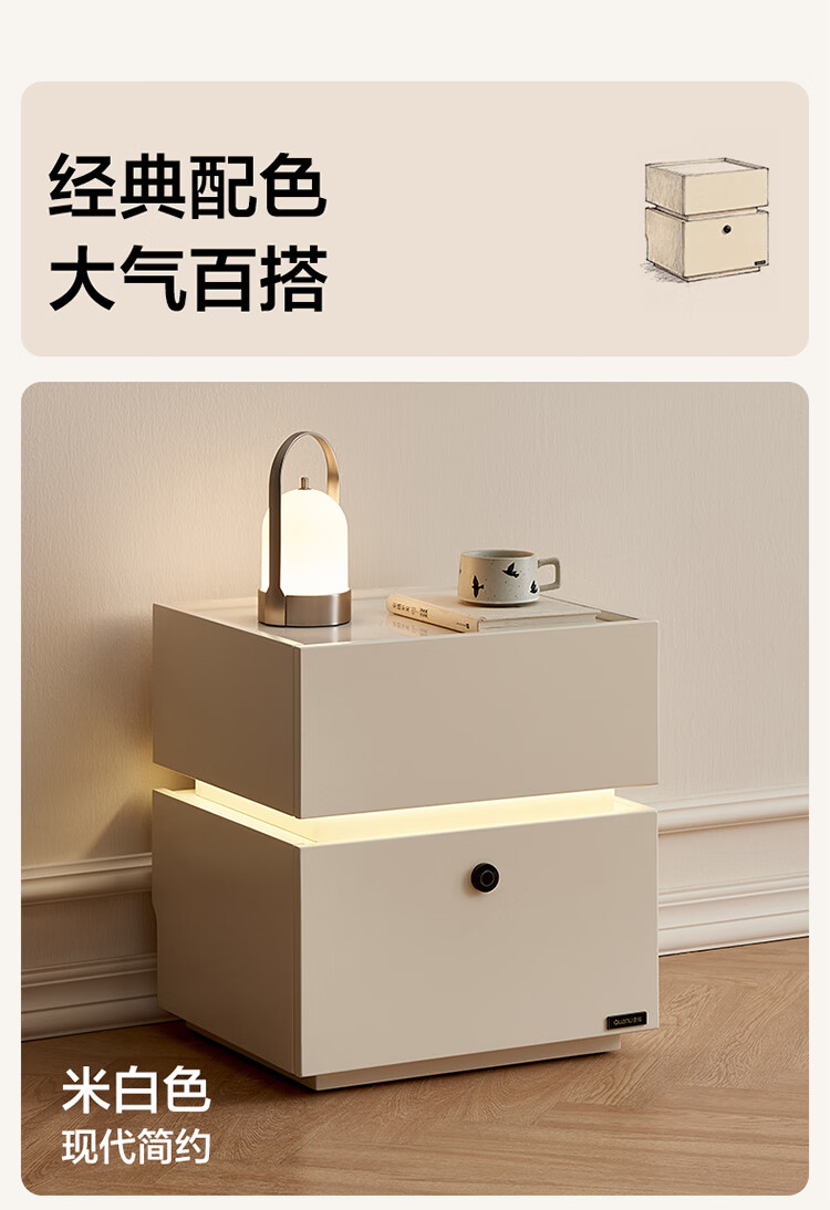 全友家居现代简约床头柜智能卧室床头置物架小型收纳柜子带指纹锁家用 【米白色】智能床头柜