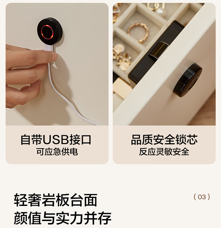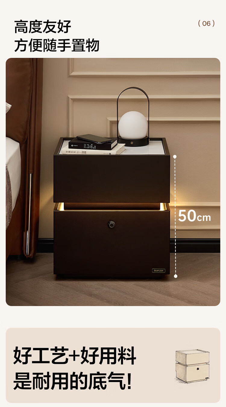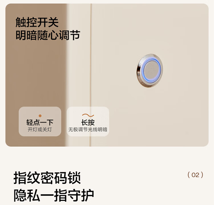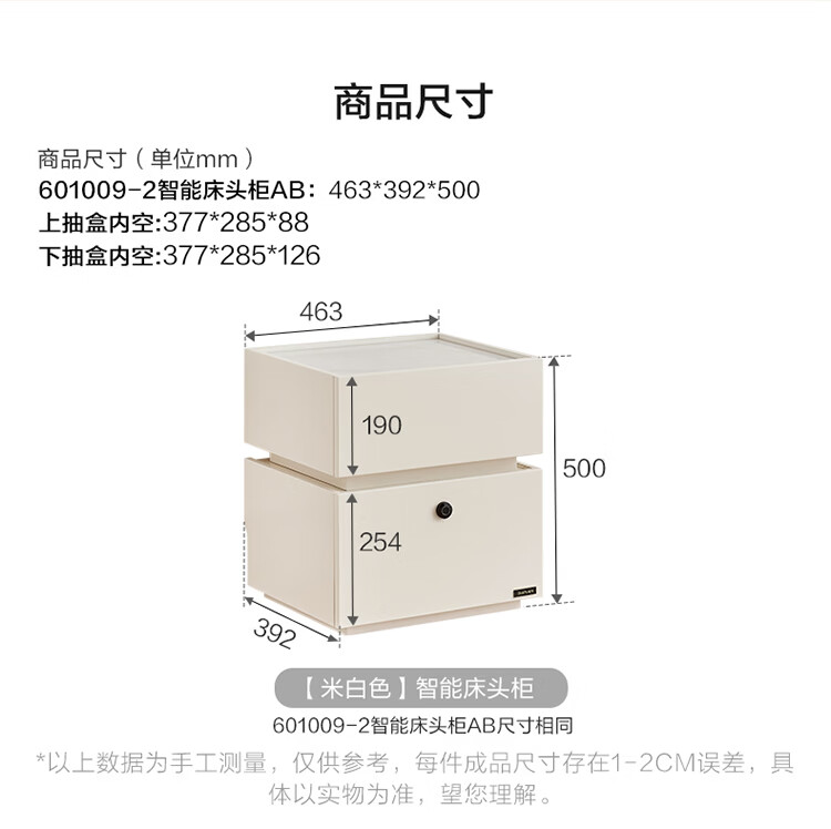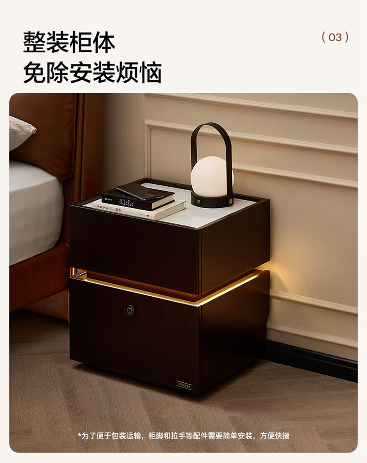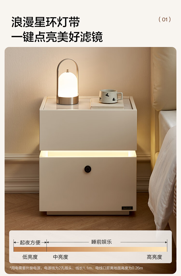全友家居现代简约床头柜智能卧室床头置物架小型收纳柜子带指纹锁家用 【米白色】智能床头柜