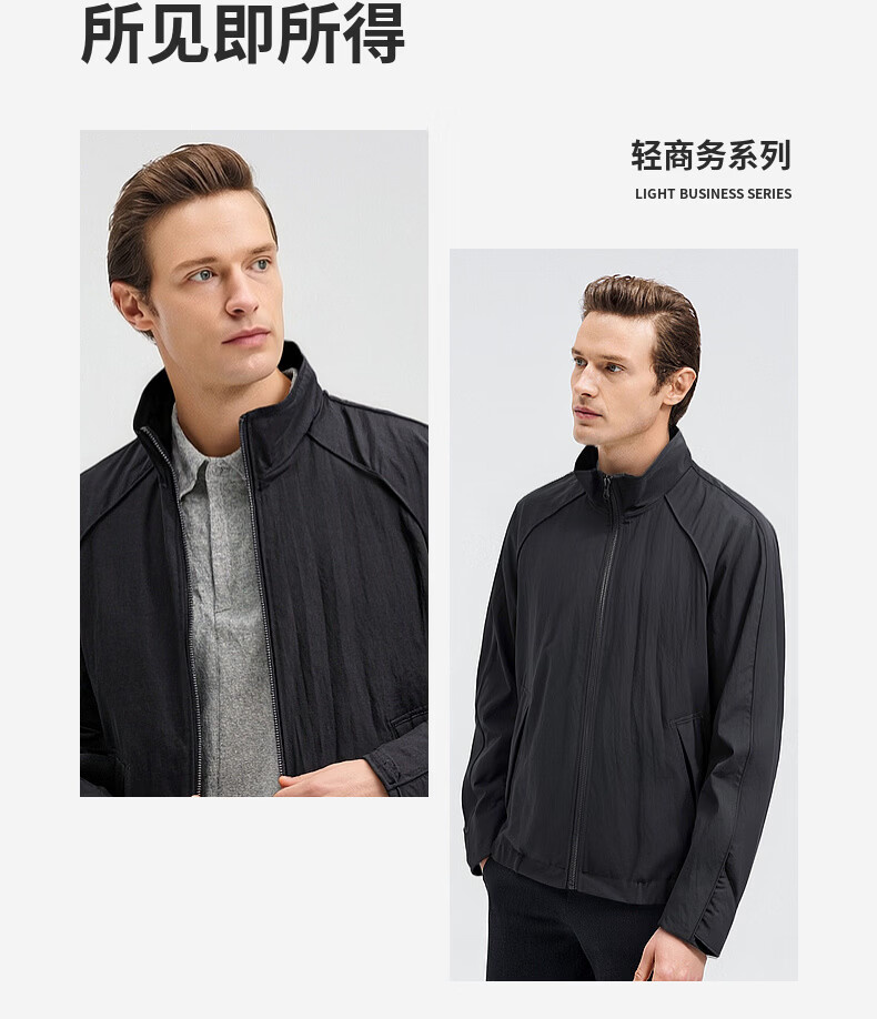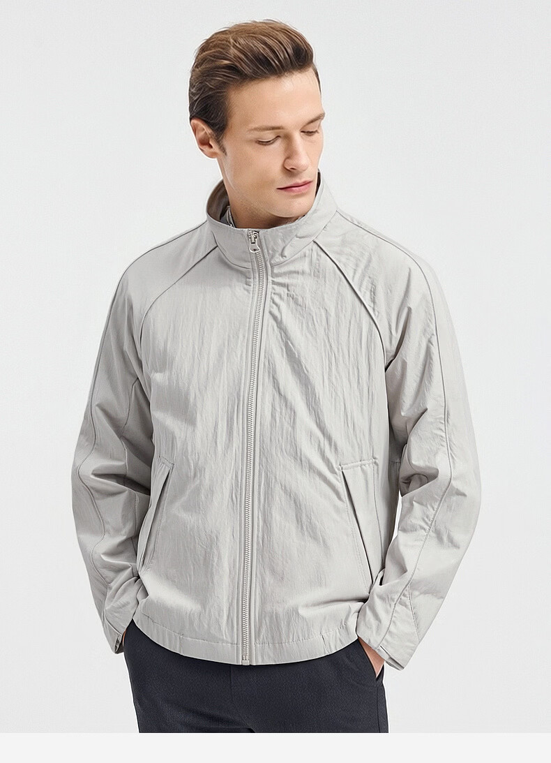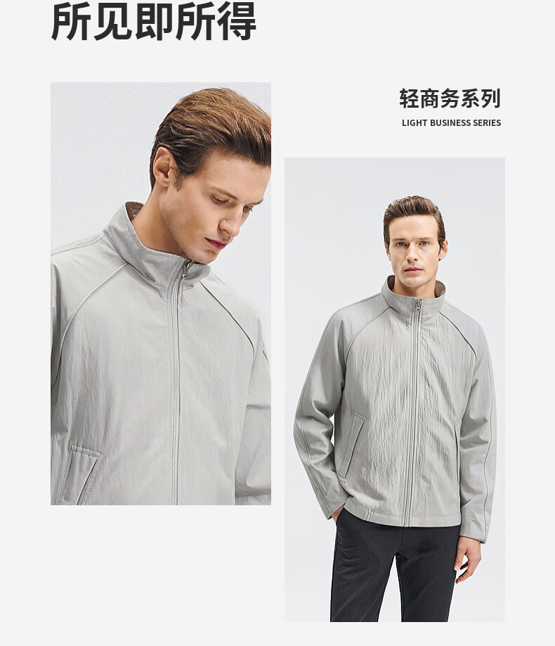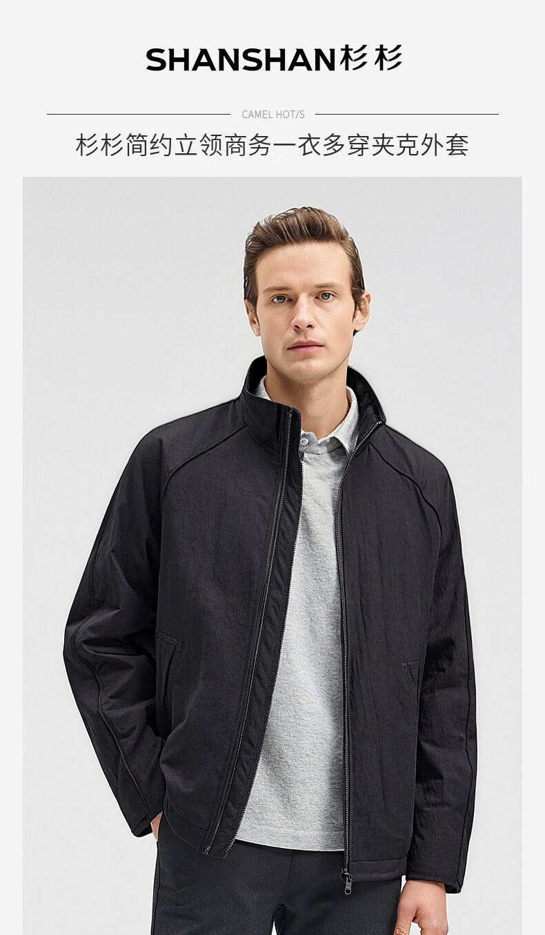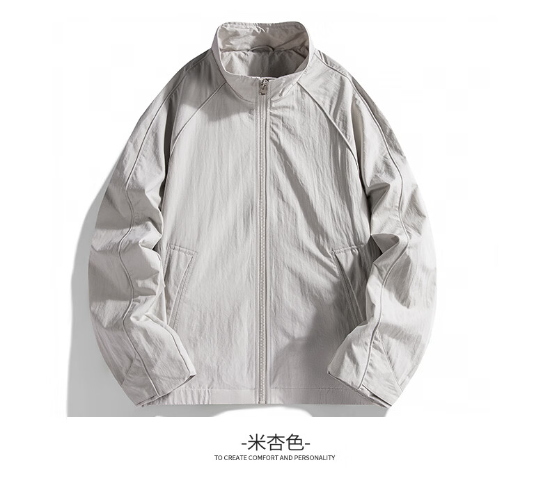 SHANSHAN杉杉【立领防风】春秋薄款夹克男宽松纯色简约通勤衣服外套衣服 米杏色 M /170