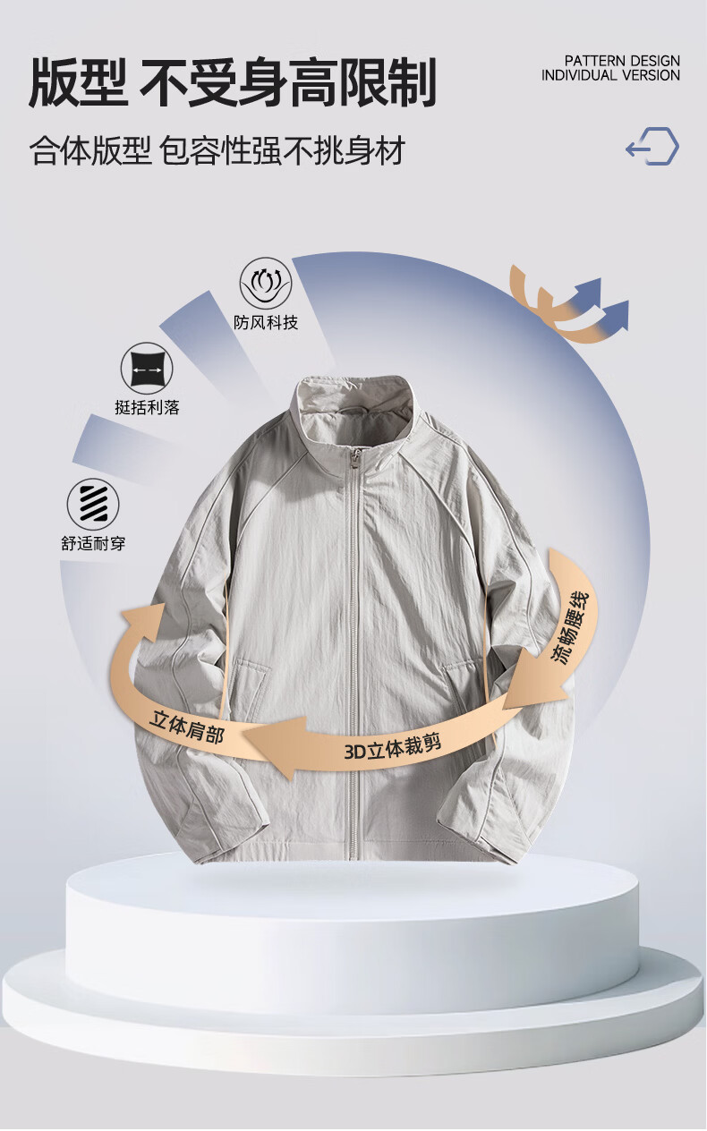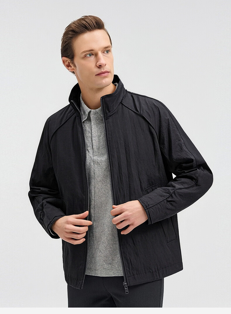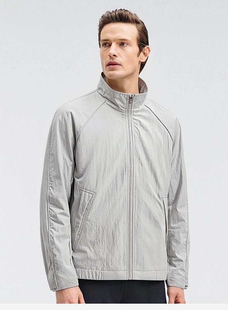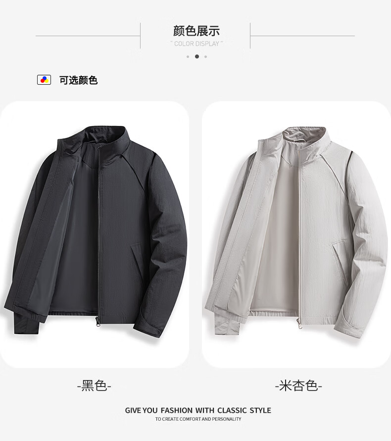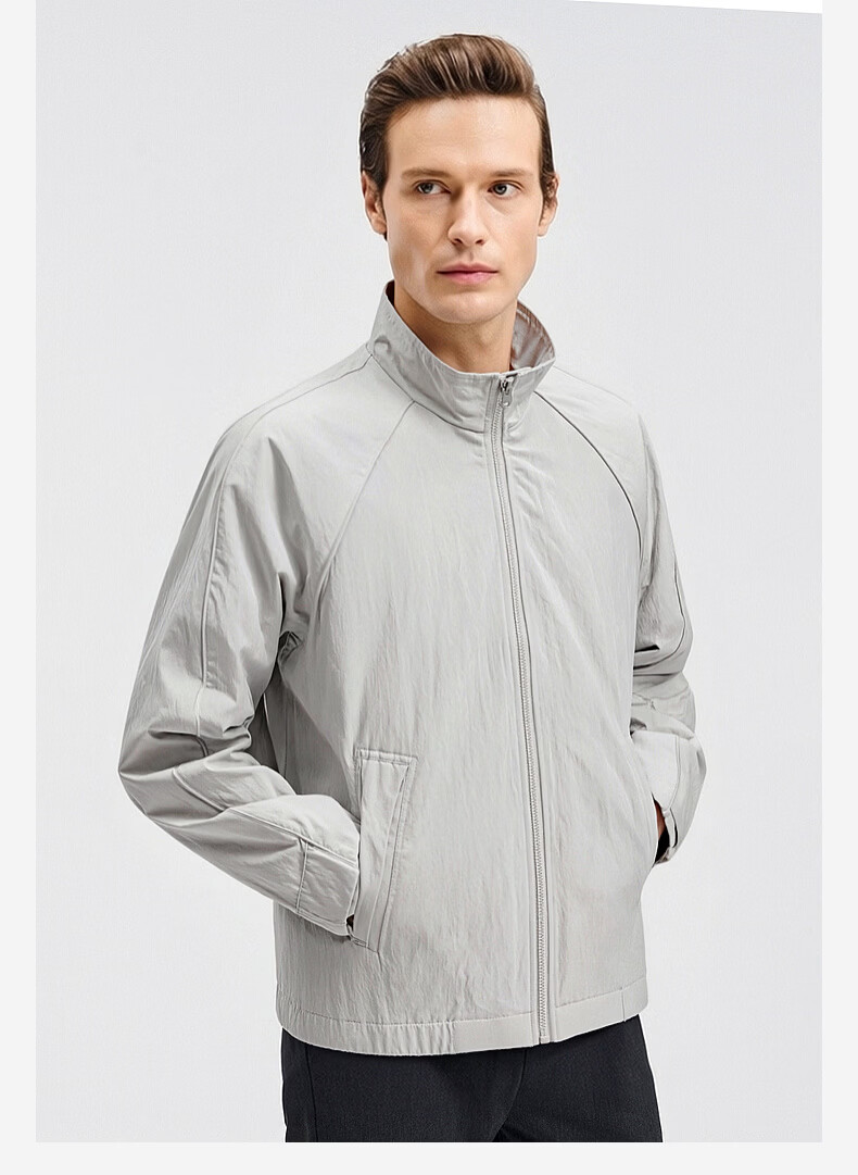 SHANSHAN杉杉【立领防风】春秋薄款夹克男宽松纯色简约通勤衣服外套衣服 米杏色 M /170