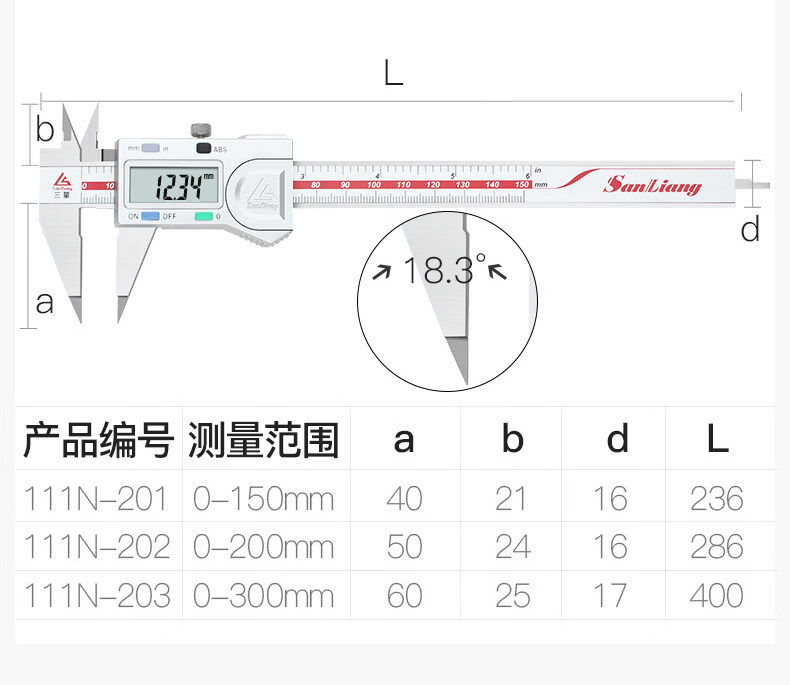 三量(sanliang)正品三量0-150mm细尖爪数显卡尺 电子尖头卡尺小头游标卡尺不锈钢 111N-201 0-150mm数显 无规格