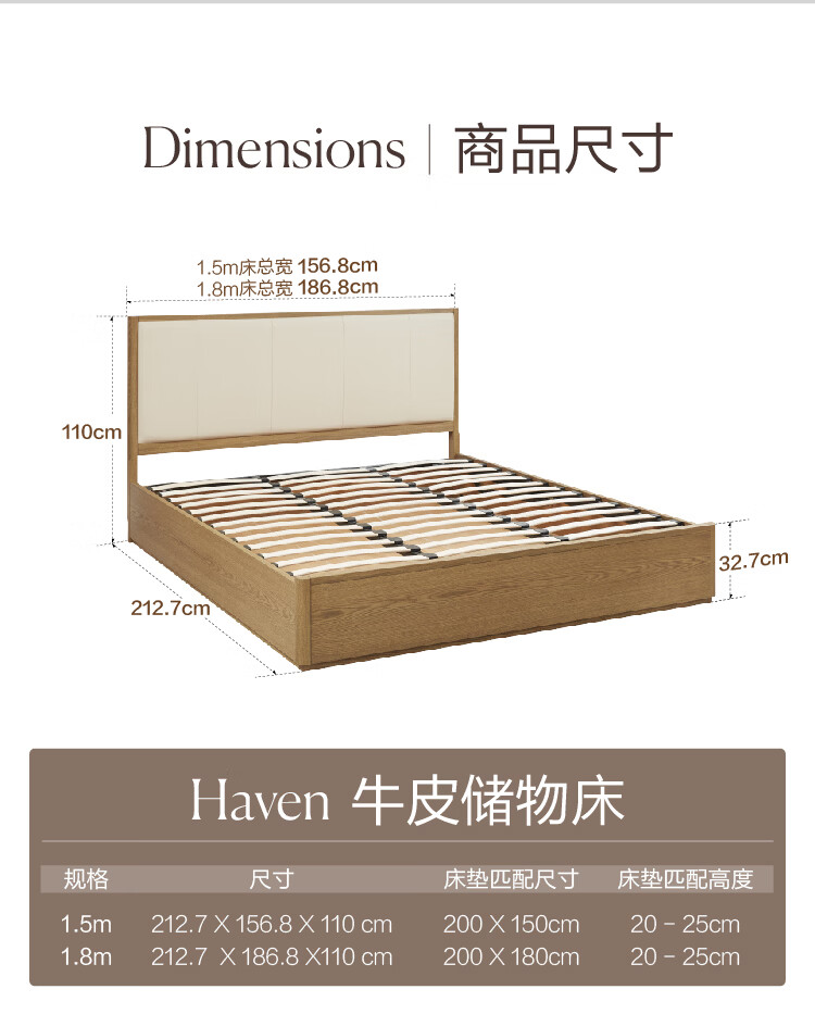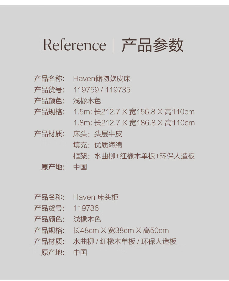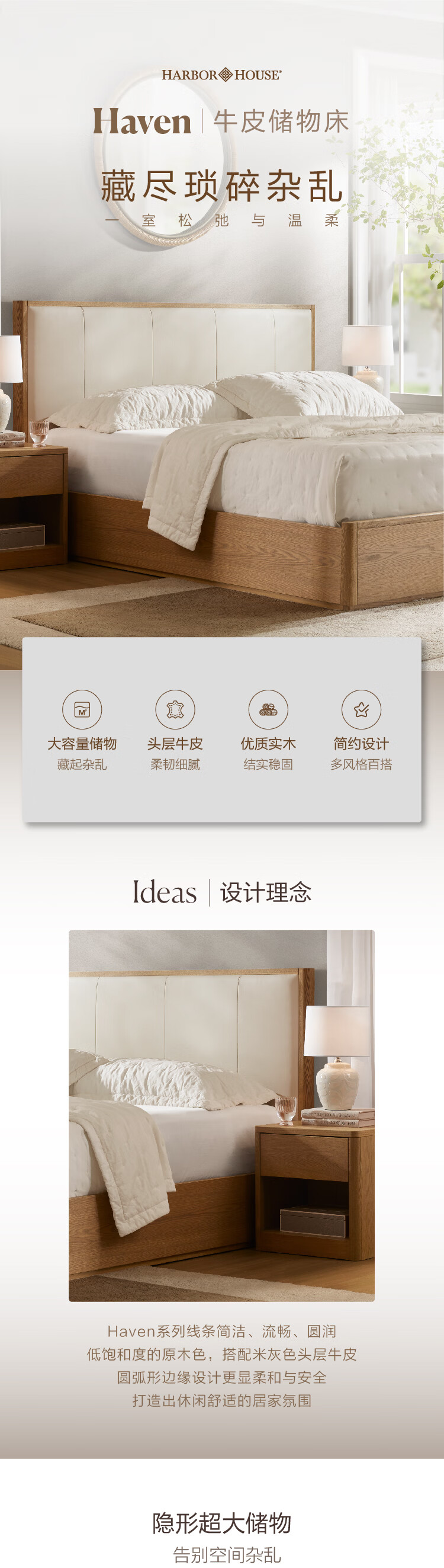 Harbor House现代美式皮艺床大气简约头层牛皮软包主卧双人床实木框架储物床 Haven 床头柜