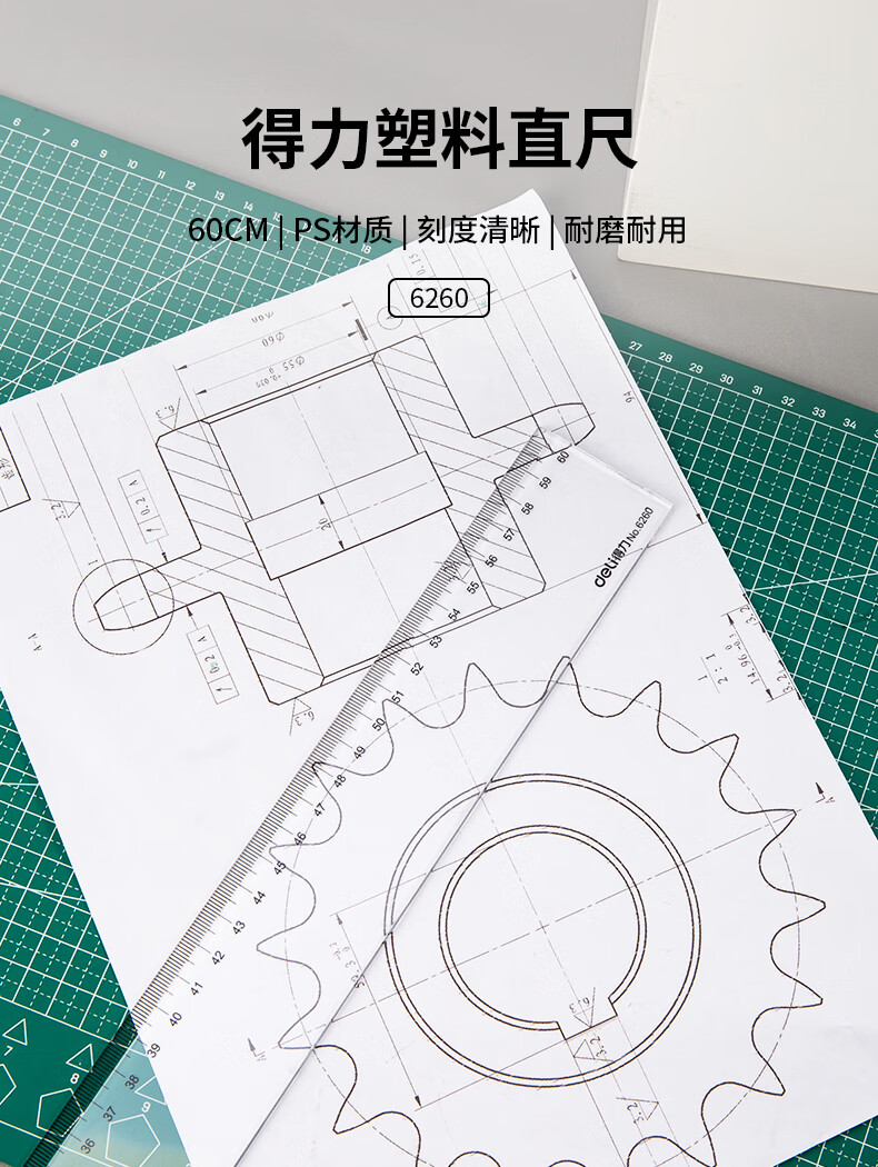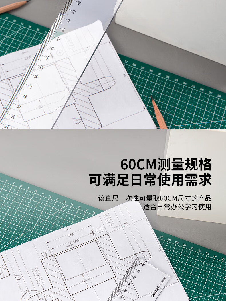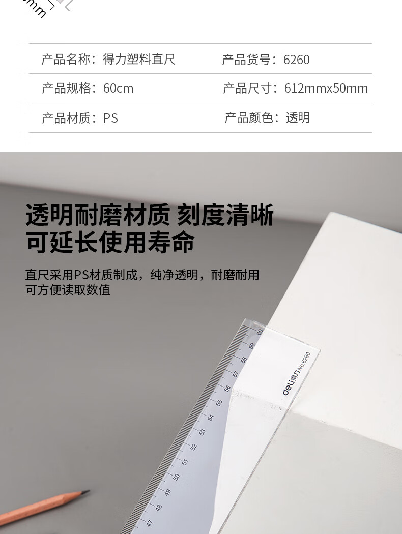 得力(deli)(deli)60cm办公通用直尺 考研高考中考测量绘图尺子 办公用品 尺子礼物