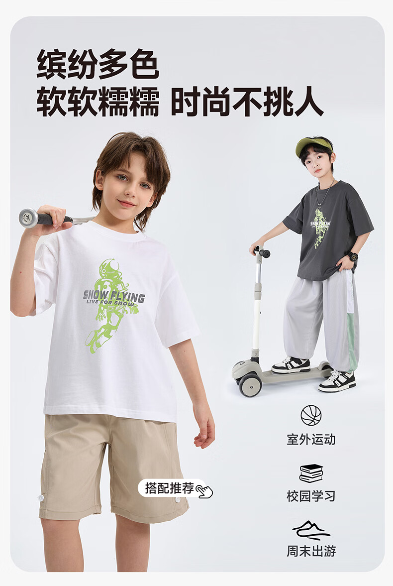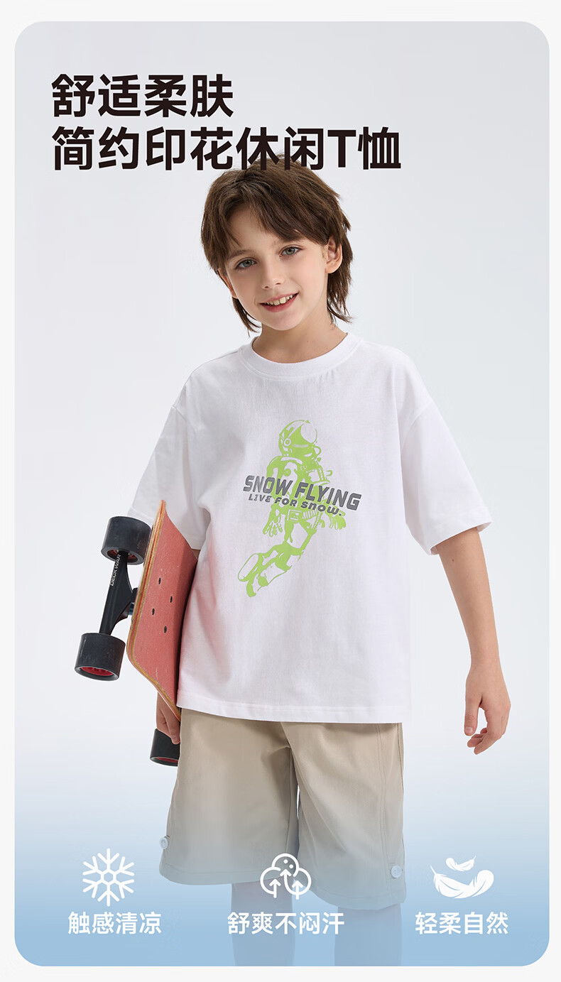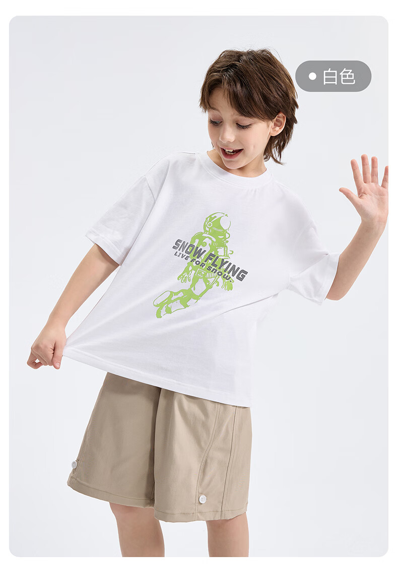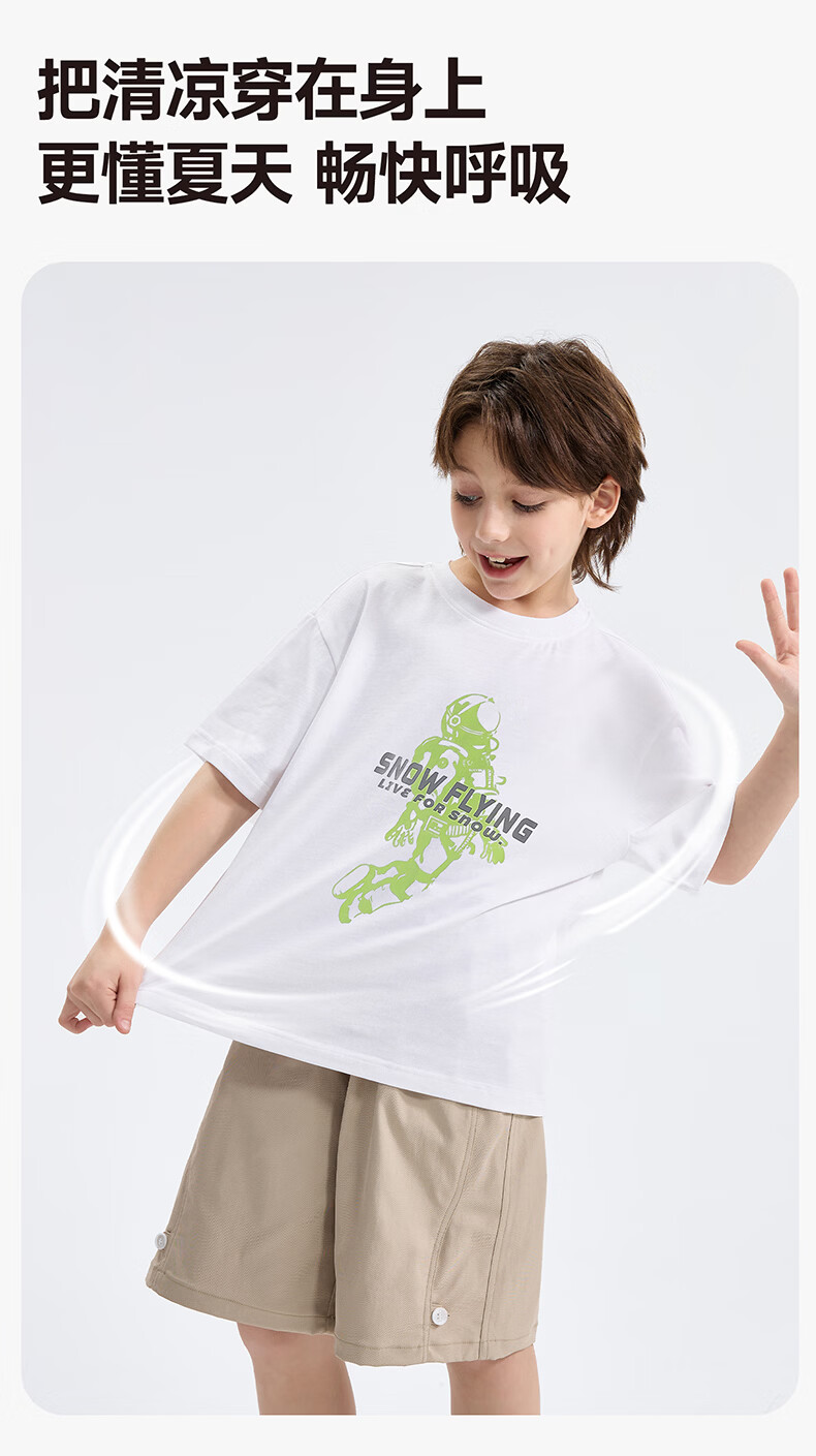 雪中飞童装男童短袖T恤2026新款儿童夏装上衣男大童机甲凉感半袖 深灰色 140