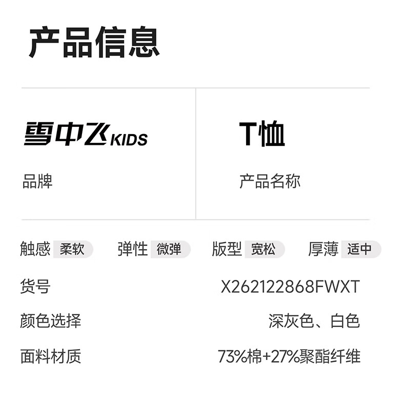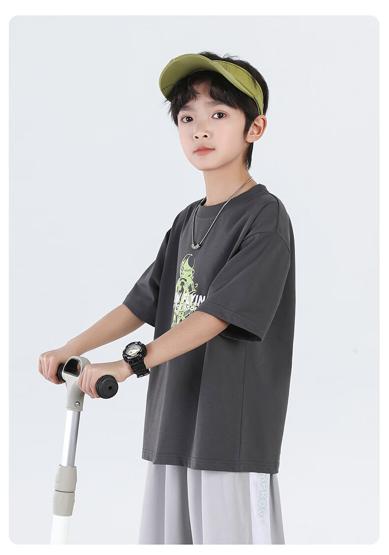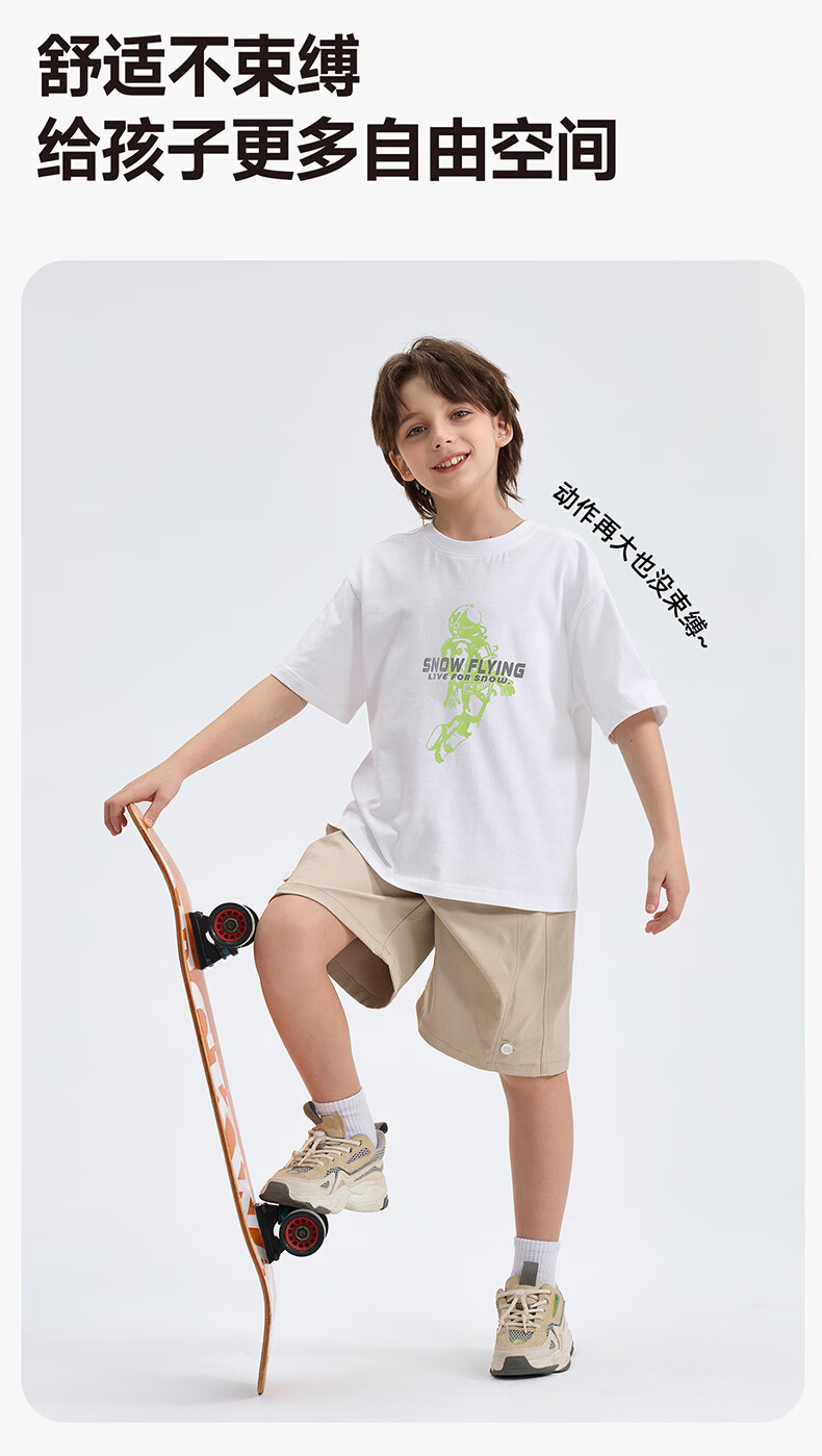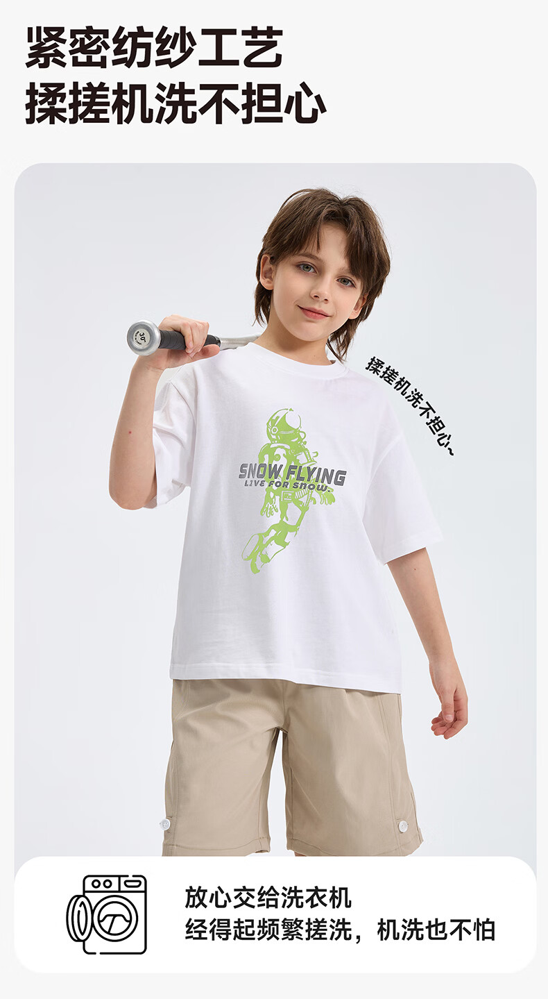 雪中飞童装男童短袖T恤2026新款儿童夏装上衣男大童机甲凉感半袖 深灰色 140