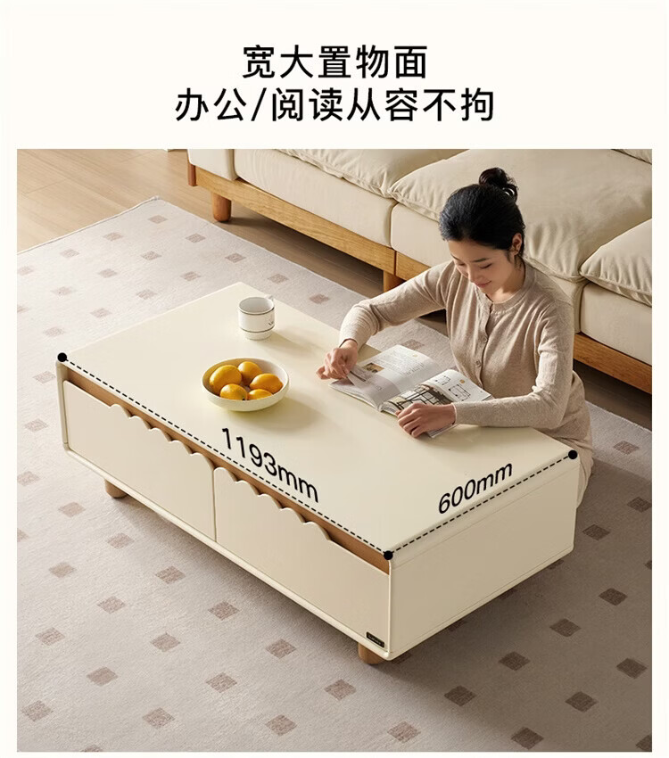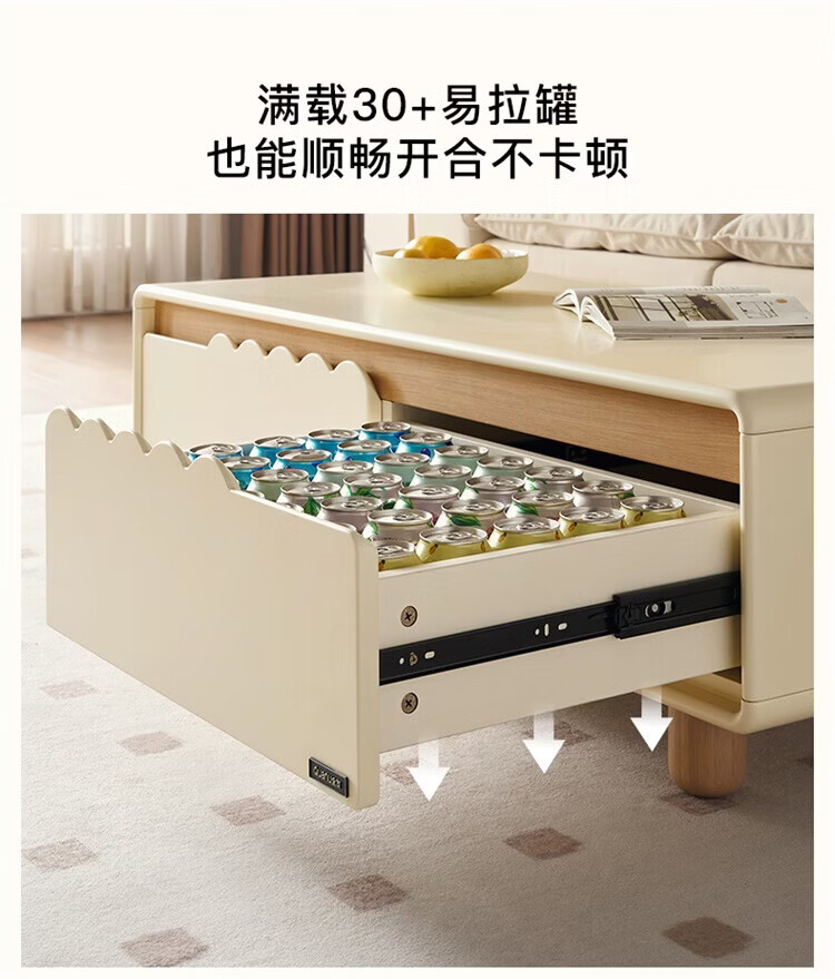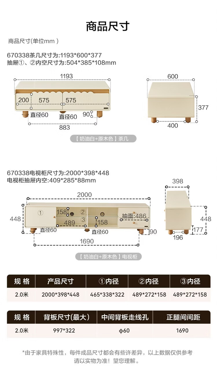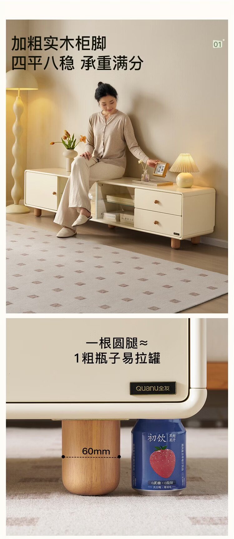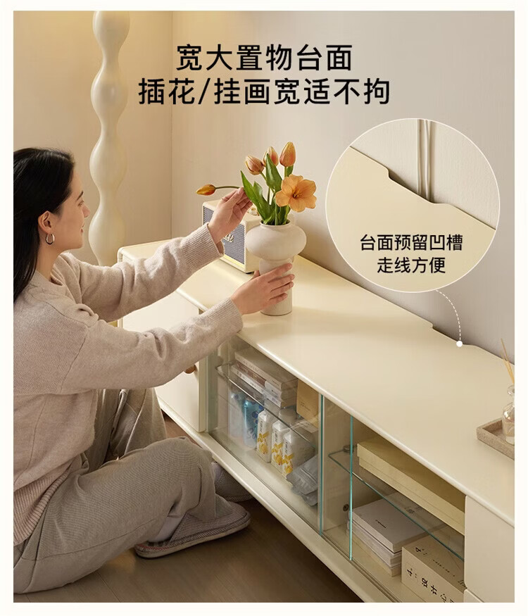 全友家居原木奶油风电视柜茶几组合家用加宽实木脚收纳储物桌置物柜 【奶油白+原木色】电视柜