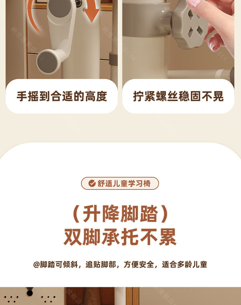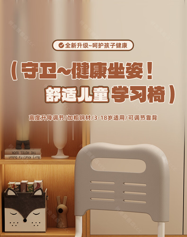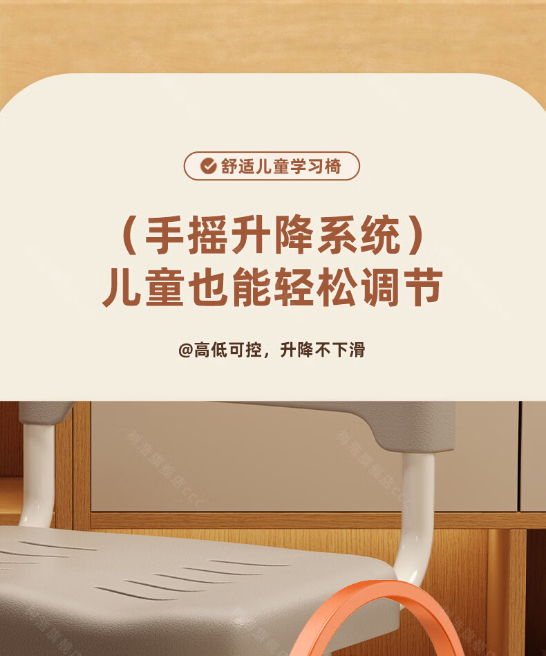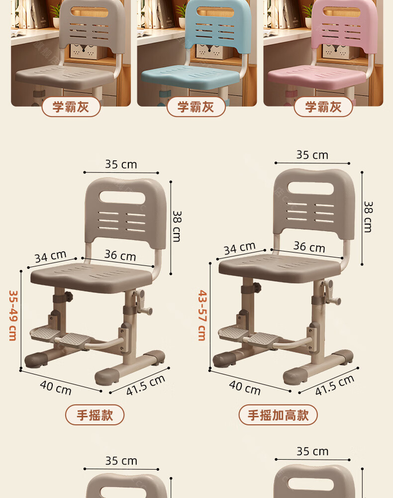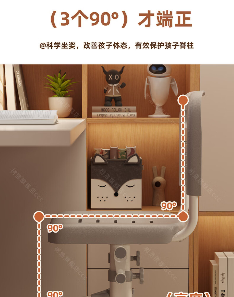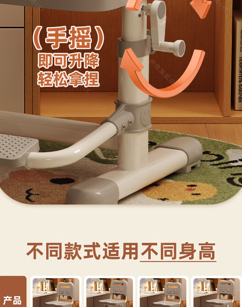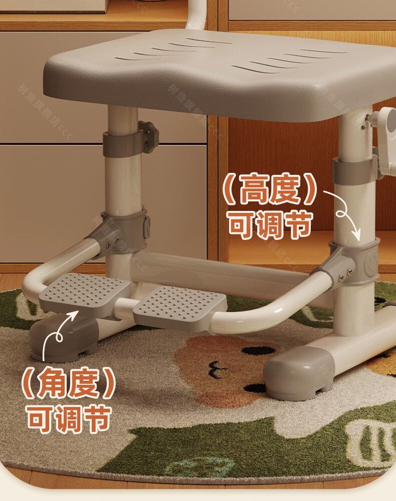 树浩儿童学习椅家用可升降写字椅小学生写作业书桌椅书房坐姿矫正座椅 【加高拔插升降】学霸灰+脚踏
