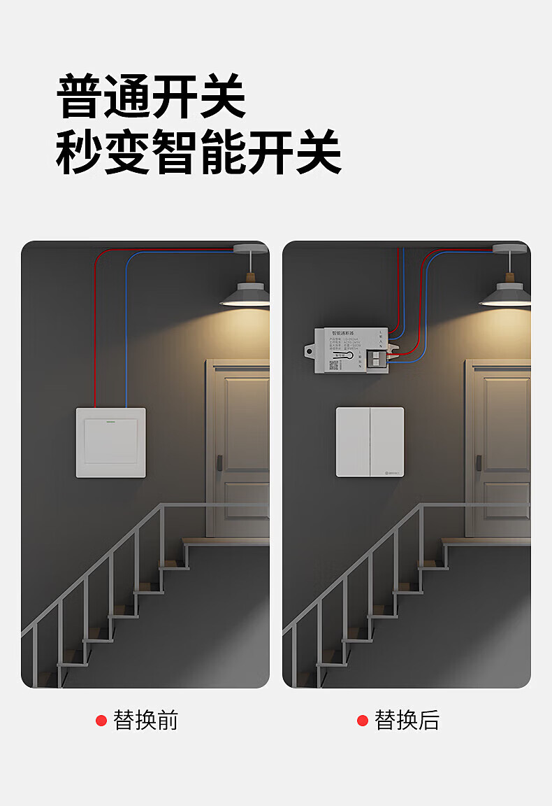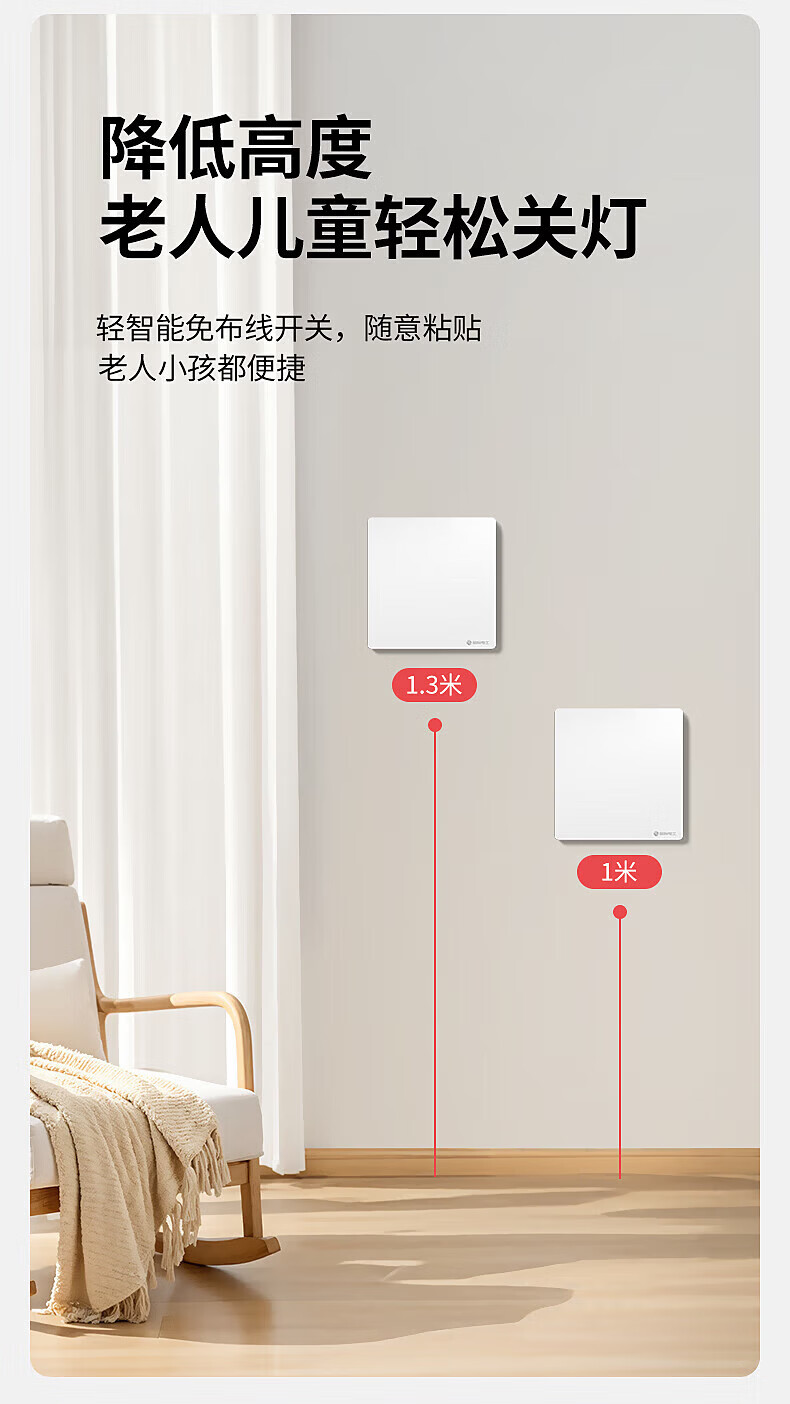 国际电工无线遥控随意贴开关智能接收器已接入米家APP支持小爱同学控制 白色一开(1个10A接收器+1个随意贴)
