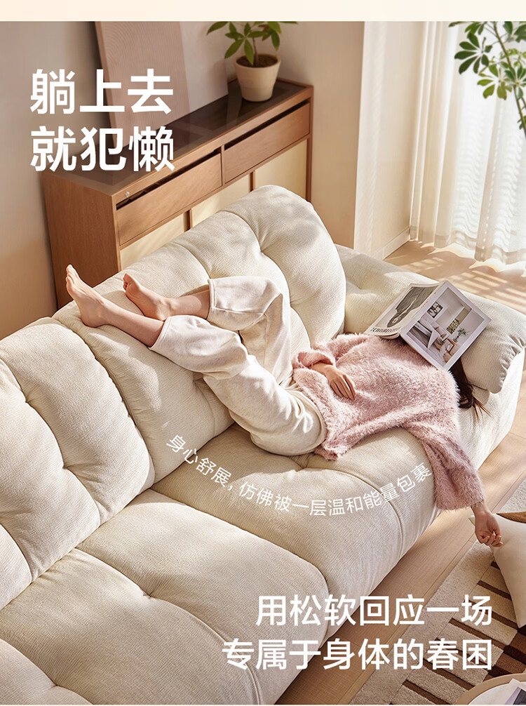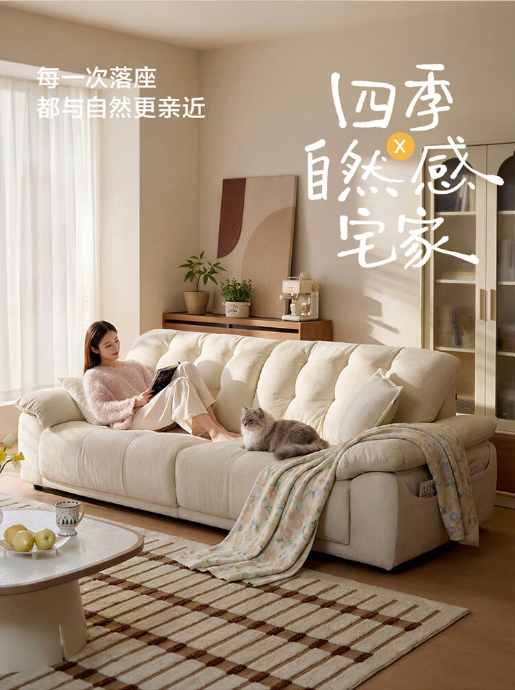 全友家居原木风伸缩实木沙发床一体两用2025新款家具客厅家用直排沙发 【米灰软包+原木色红橡木】2.12m沙发床 软包全拆洗+全实木框架