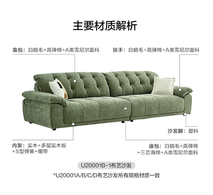 全友家居线下门店同款四季沙发简约风雪尼尔布艺沙发可拆洗沙发U20001 【星空灰 | A类8防雪尼尔】直排沙发 2.7m
