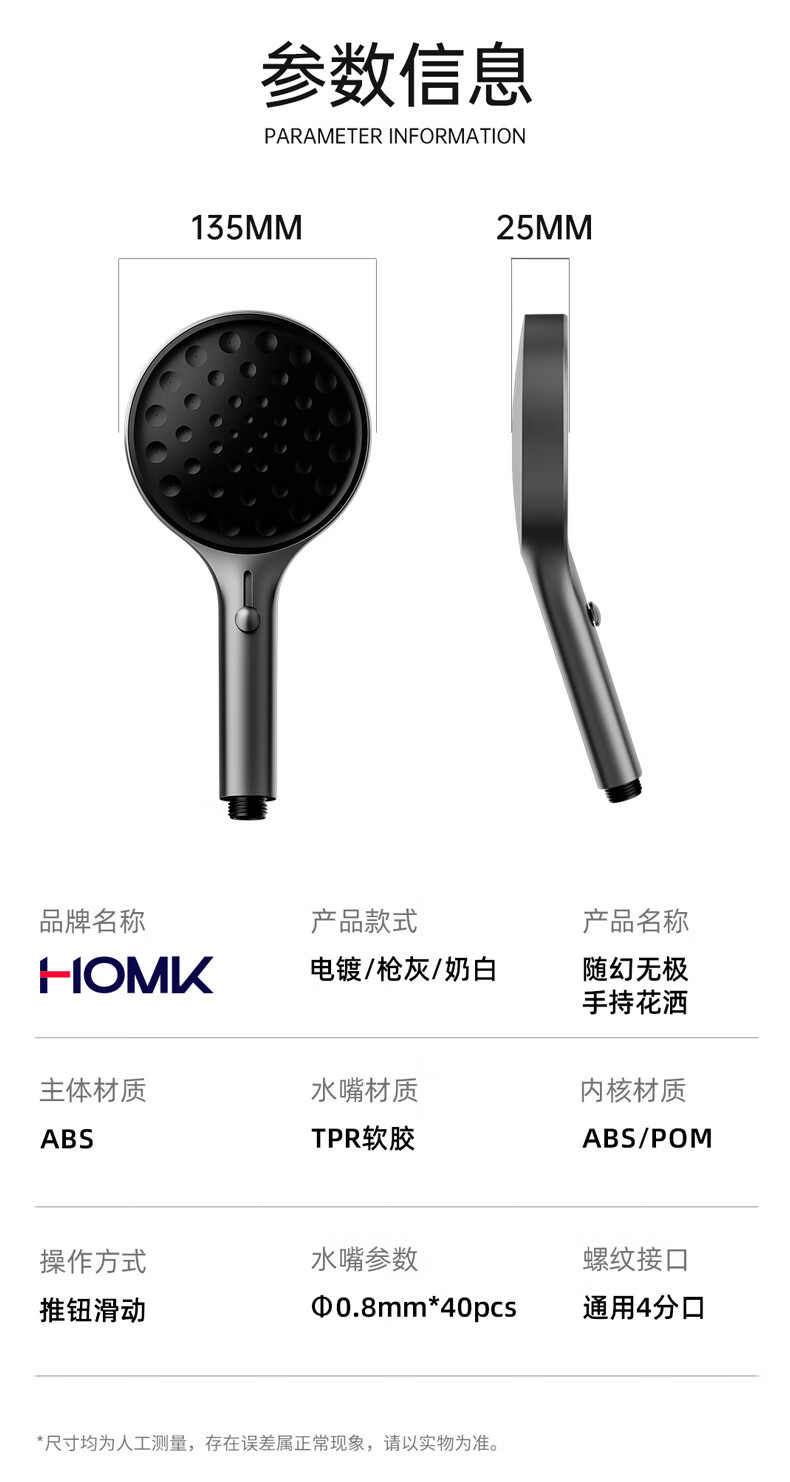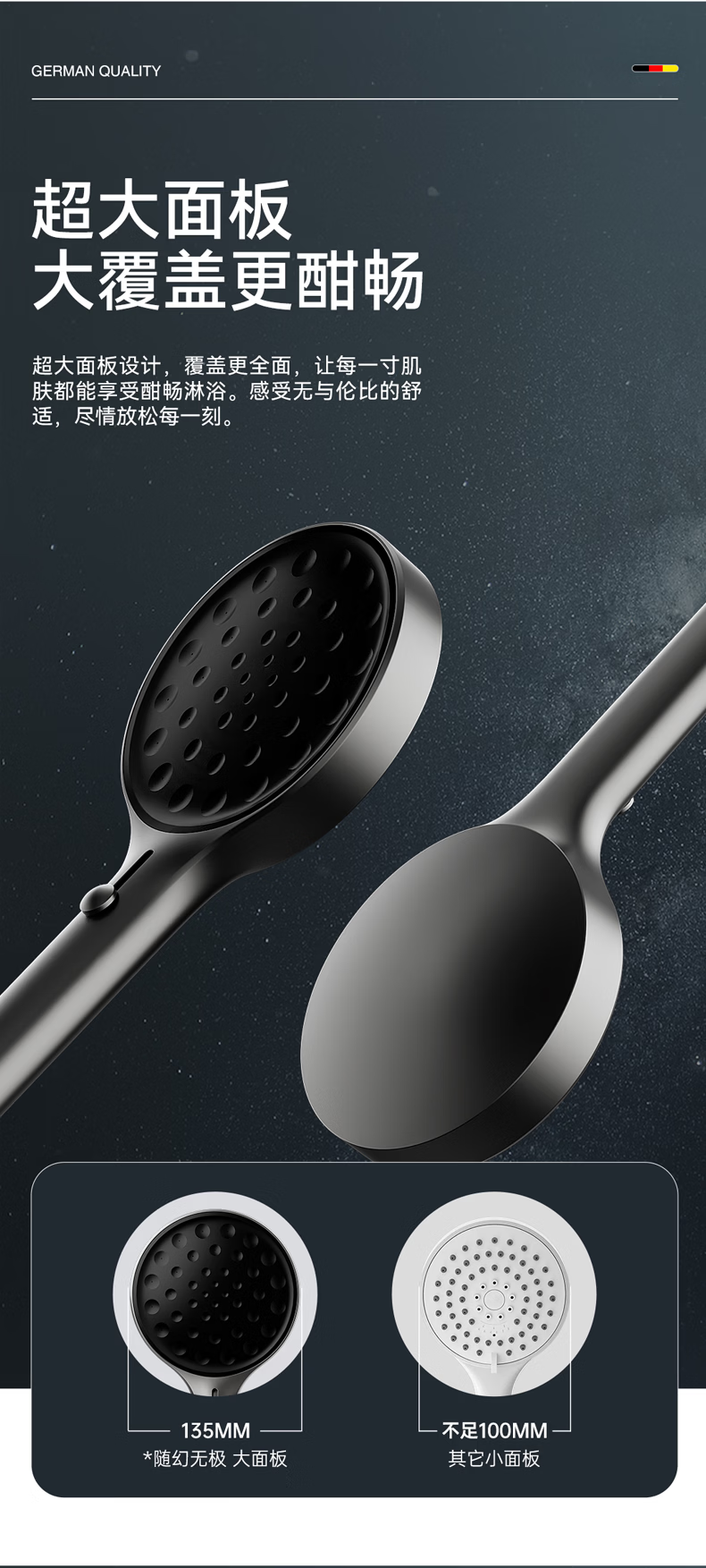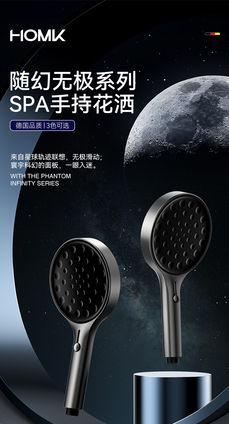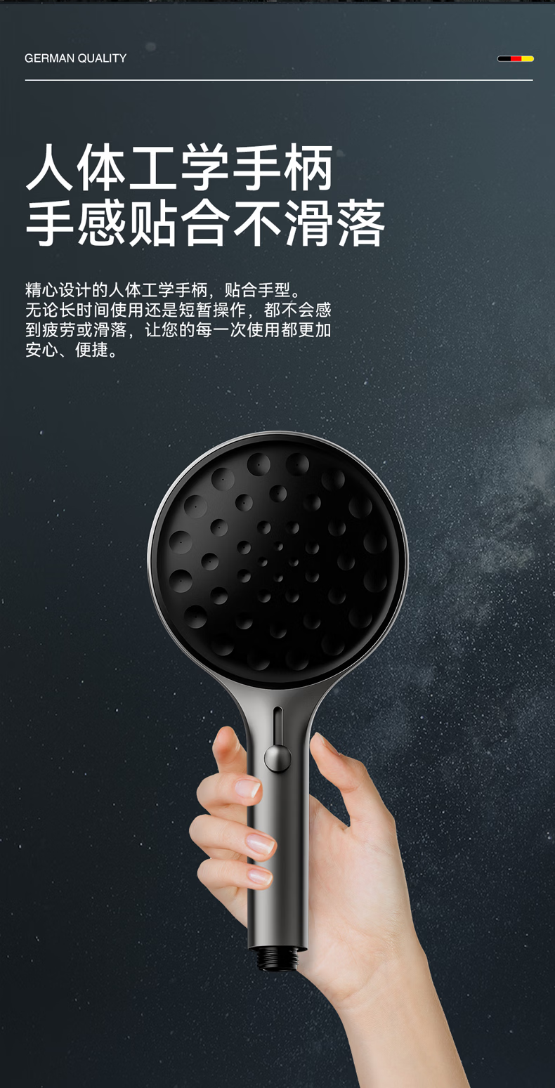 HOMK【德国】增压淋浴花洒喷头手持式通用浴室洗澡淋雨高压喷淋莲蓬头 专利款【无极换挡】柔肤增压-星银色 质保30年|用坏只换不修