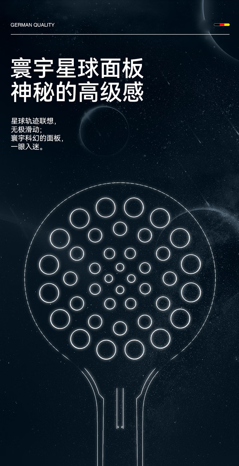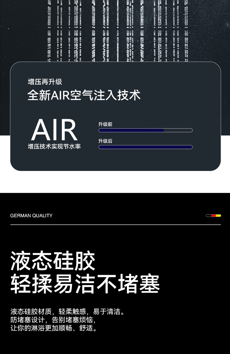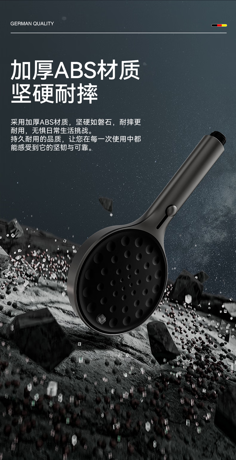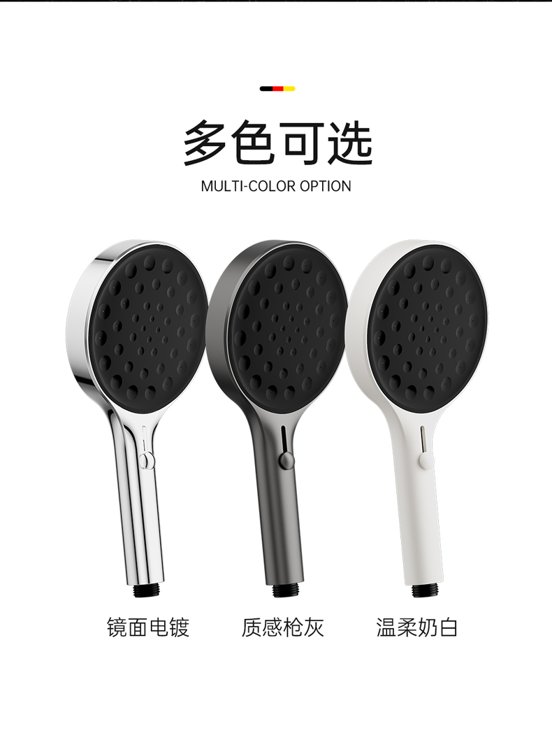 HOMK【德国】增压淋浴花洒喷头手持式通用浴室洗澡淋雨高压喷淋莲蓬头 专利款【无极换挡】柔肤增压-星银色 质保30年|用坏只换不修