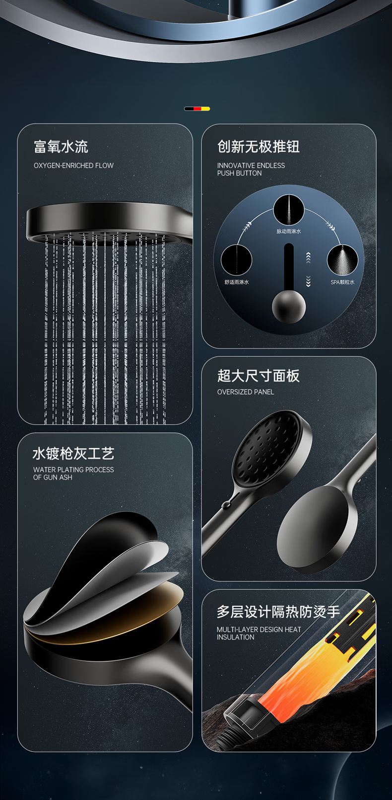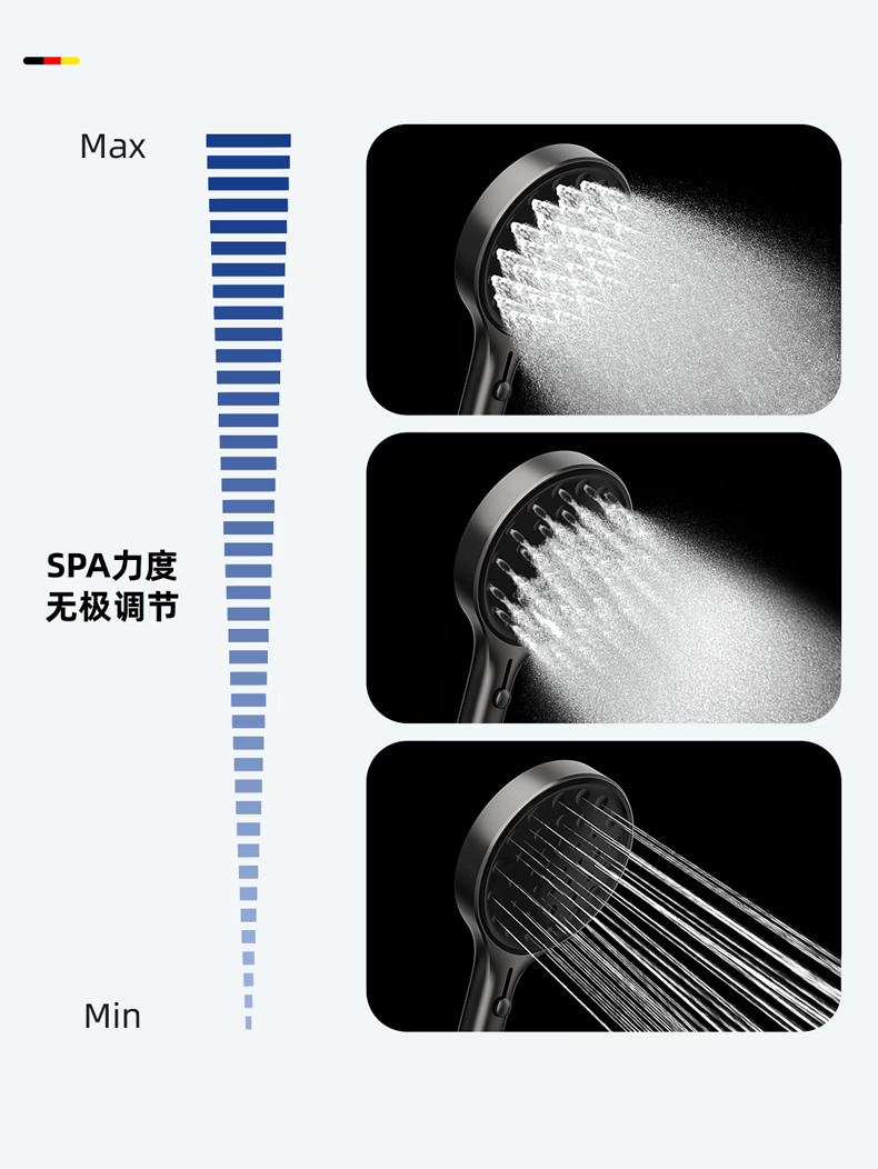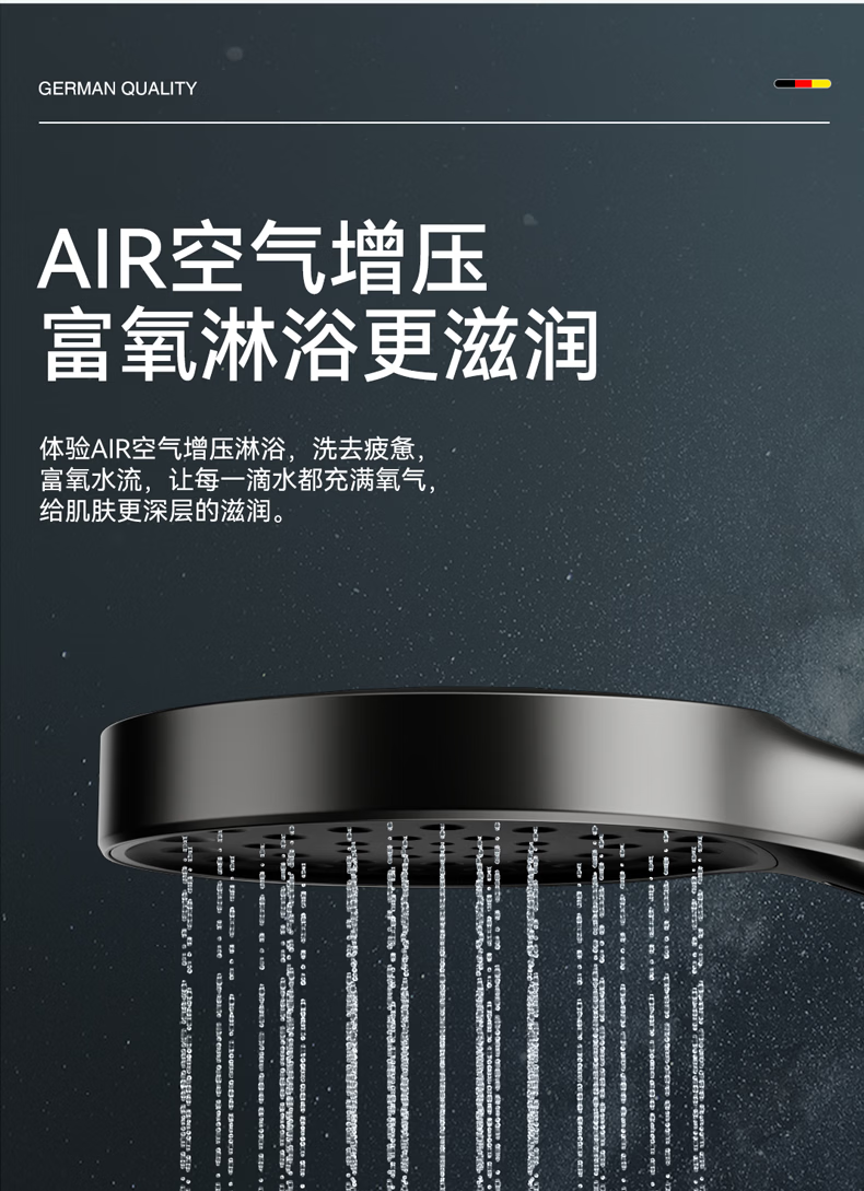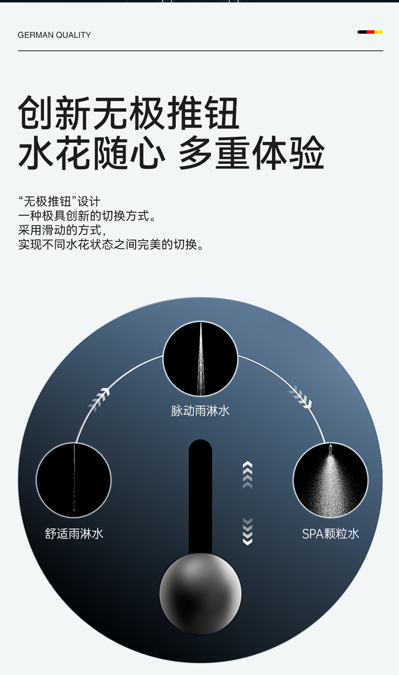 HOMK【德国】增压淋浴花洒喷头手持式通用浴室洗澡淋雨高压喷淋莲蓬头 专利款【无极换挡】柔肤增压-星银色 质保30年|用坏只换不修